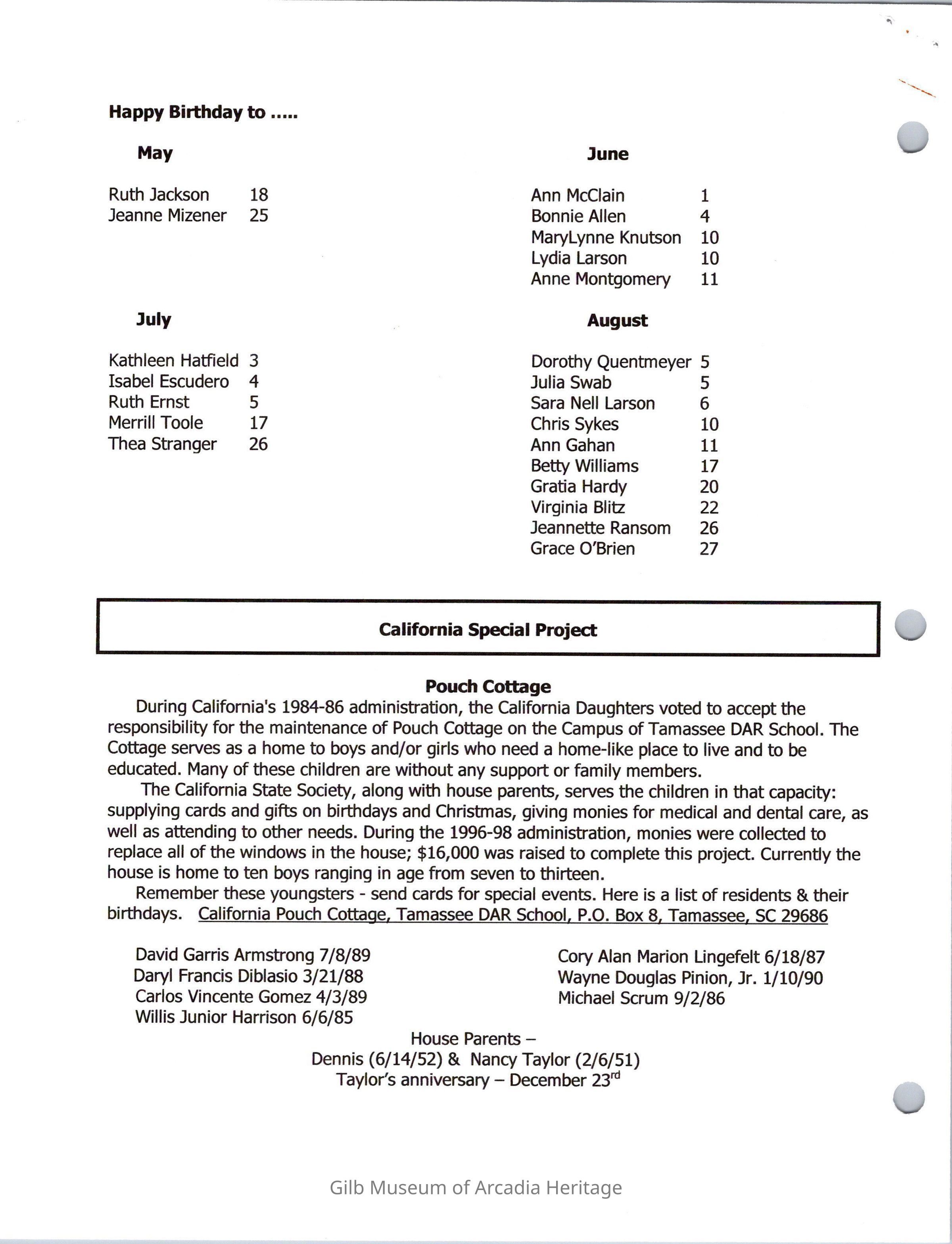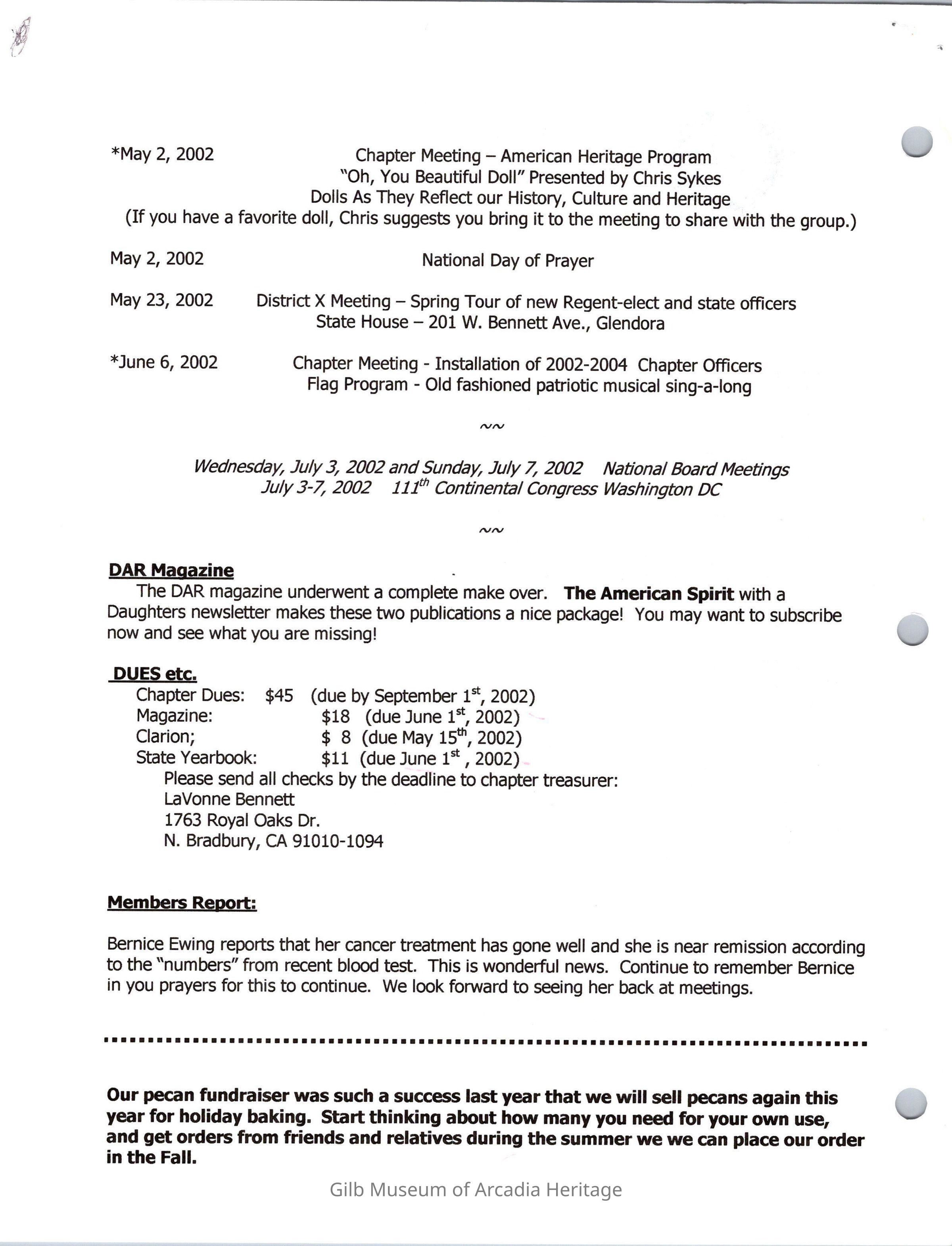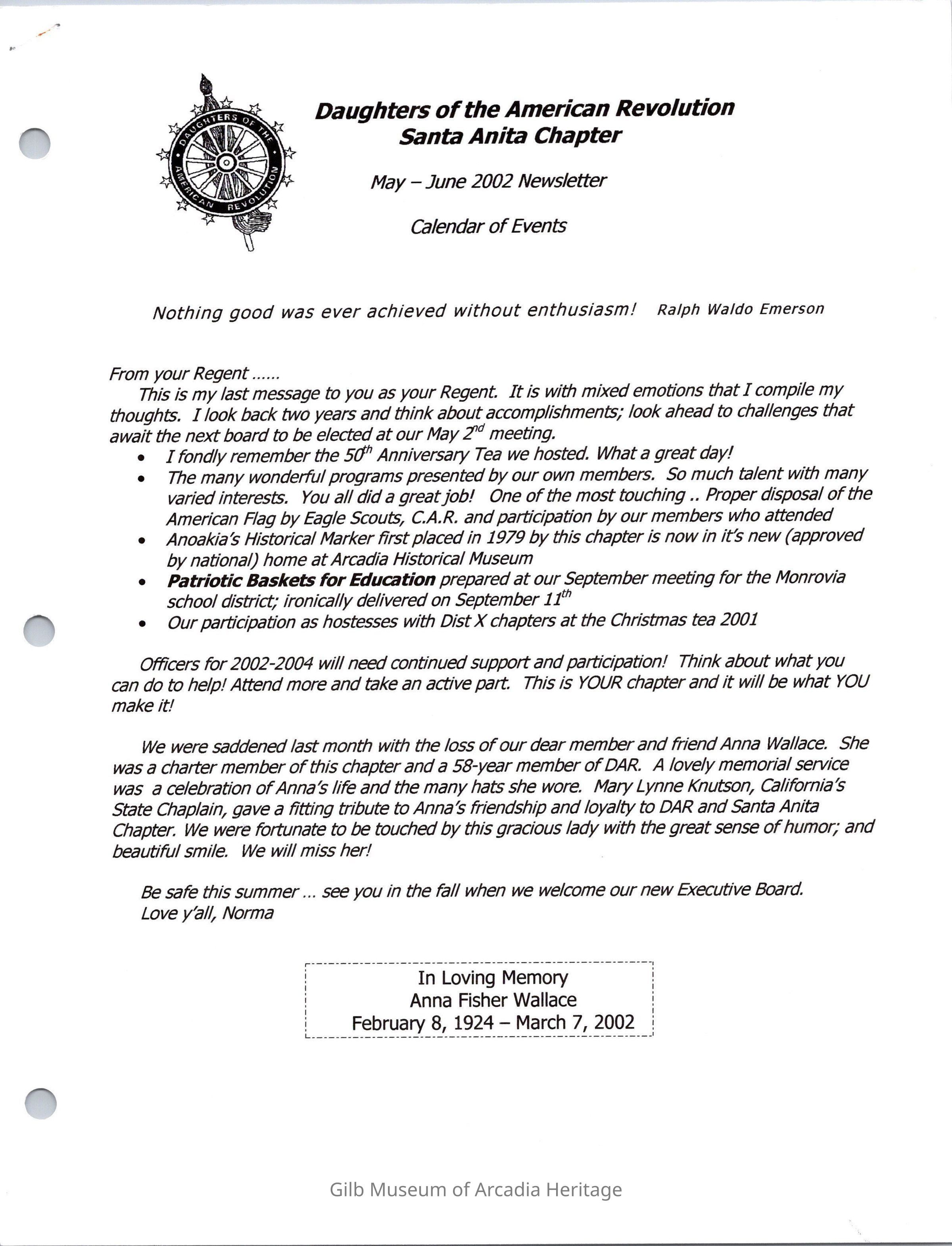 DAR: Santa Anita Chapter NSDAR May/June 2002 NewsletterCollection