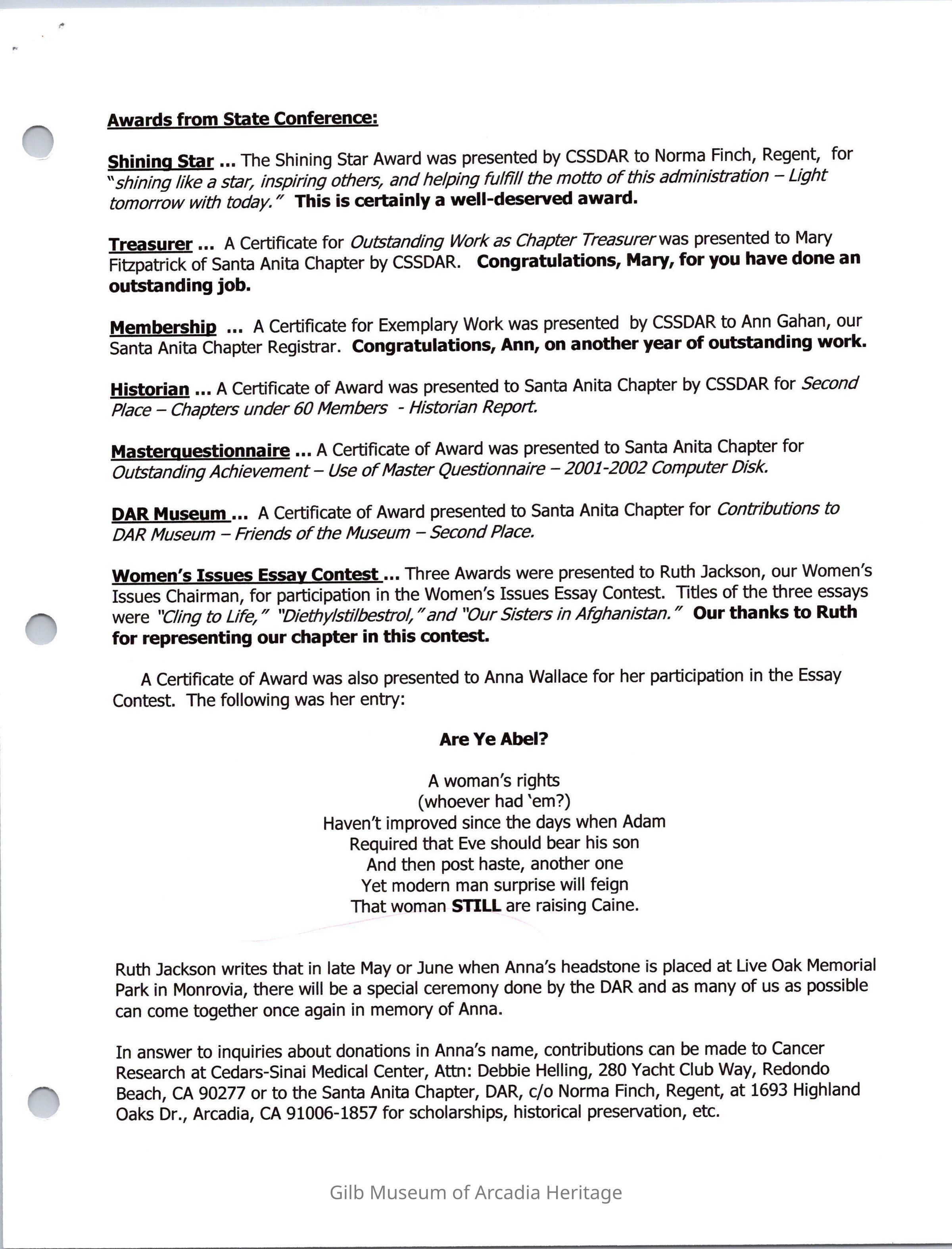 DAR: Santa Anita Chapter NSDAR May/June 2002 NewsletterEntry/Object ID