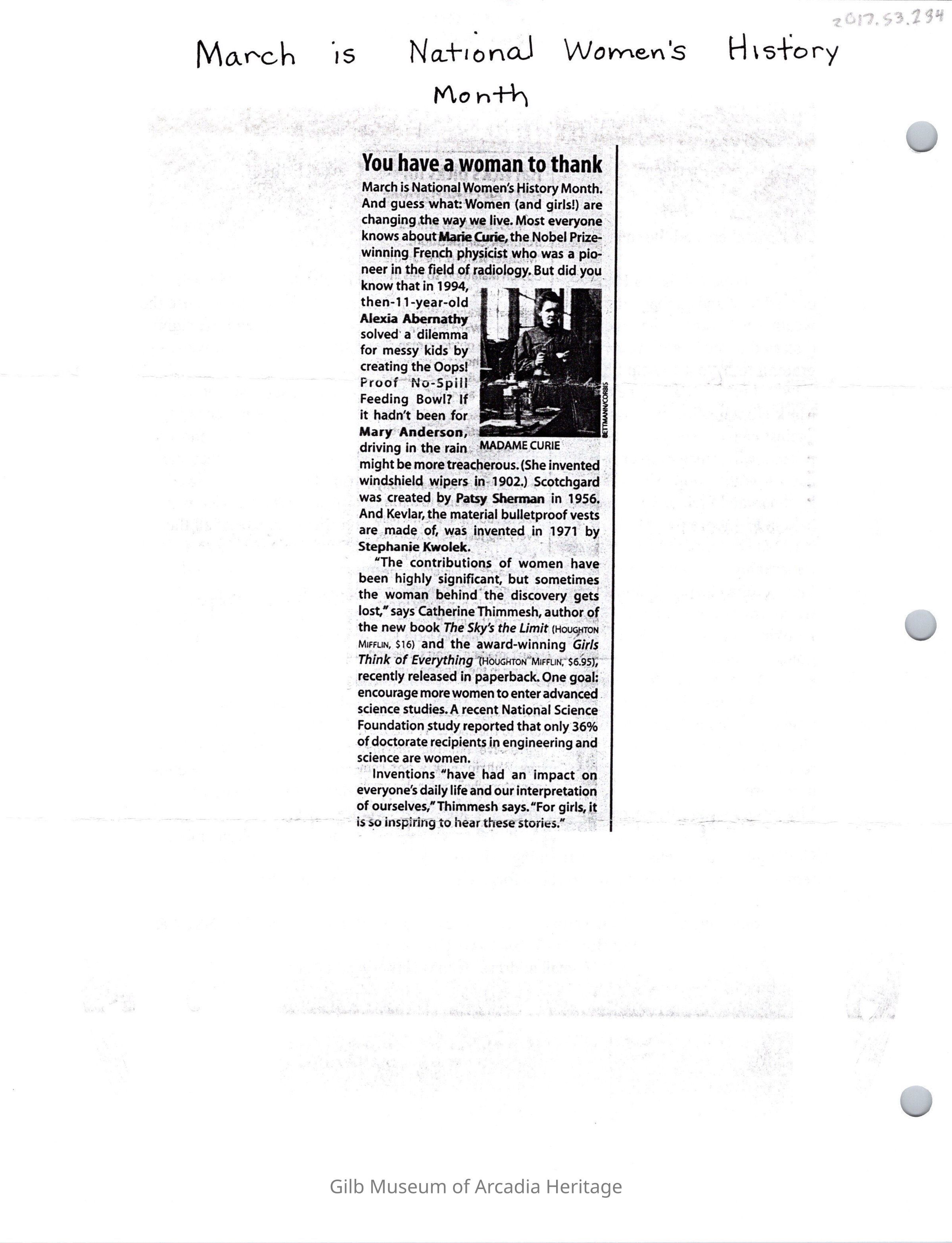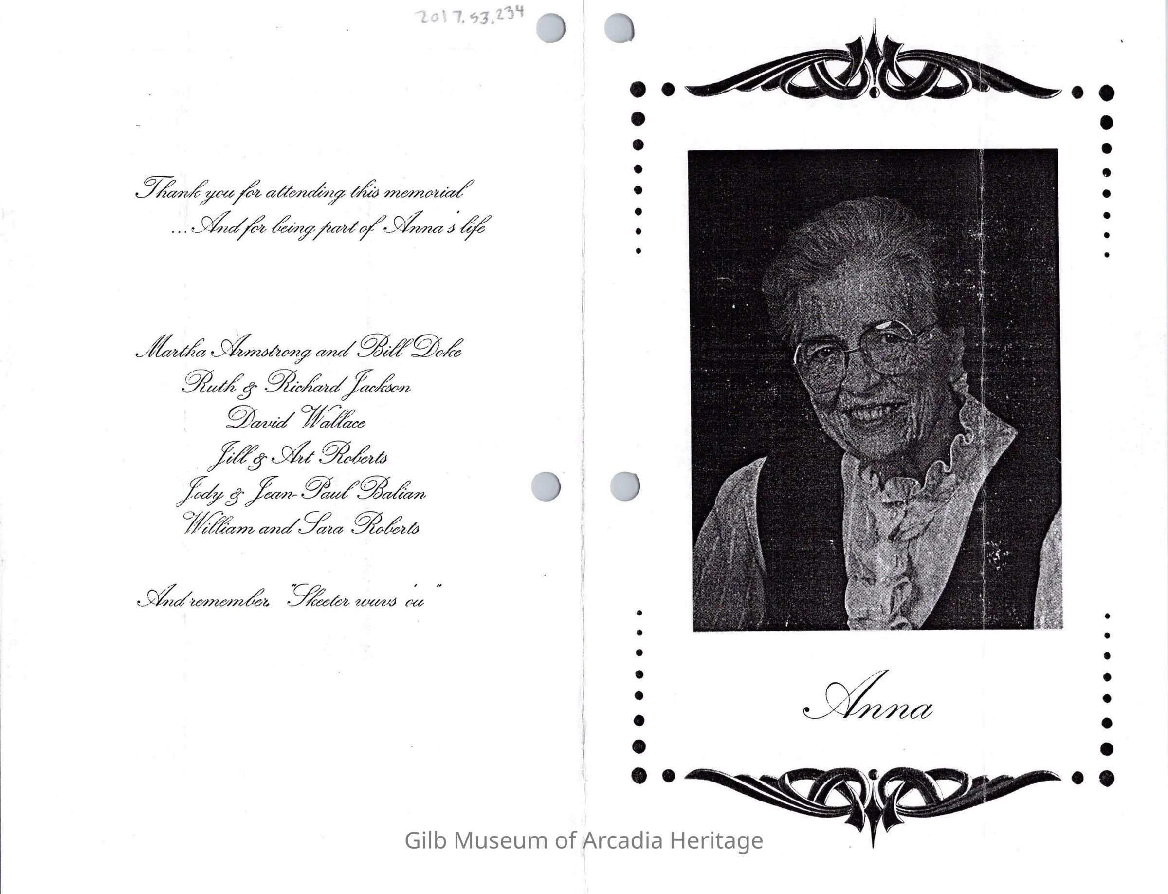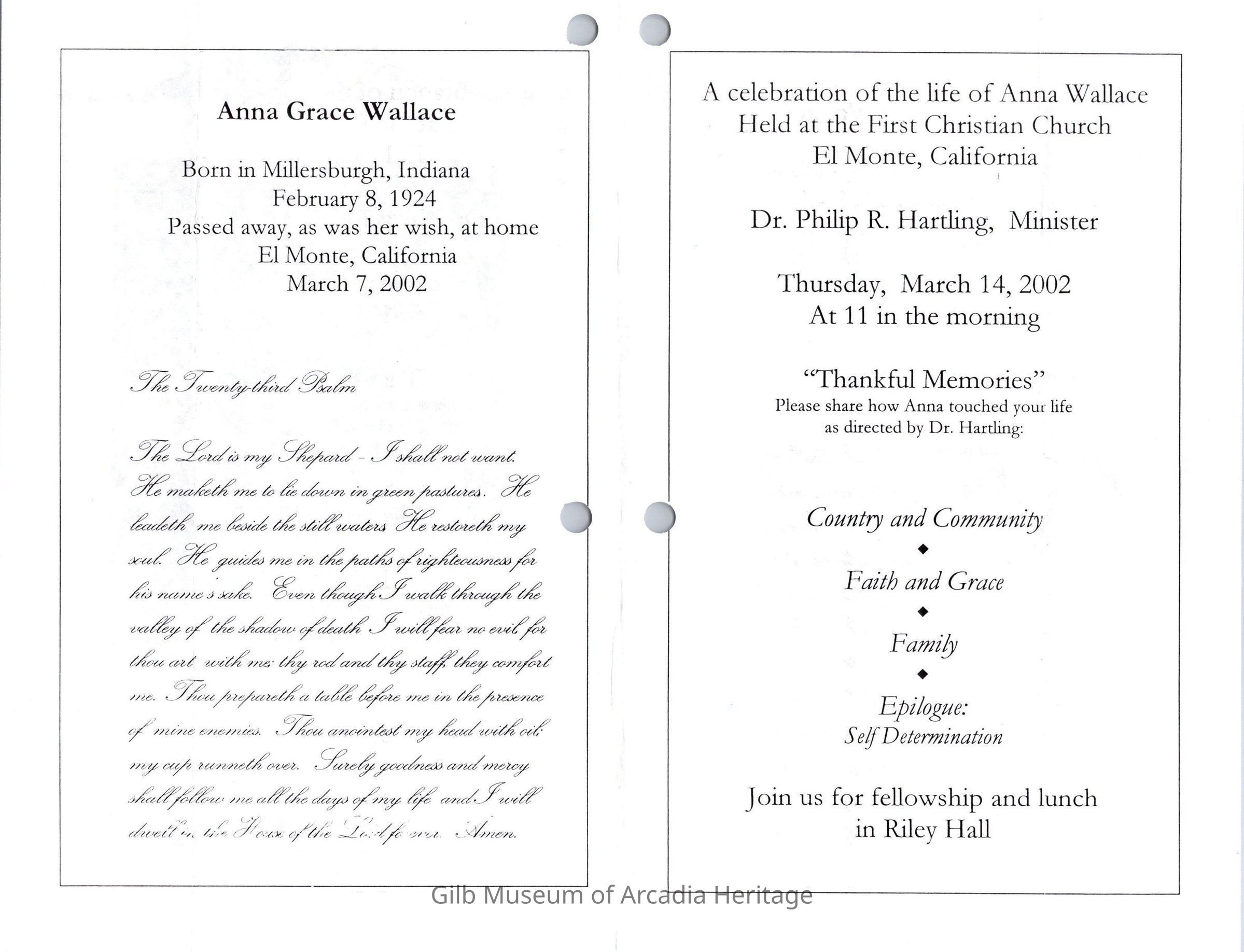 Mark Hopkins Society NSCAR Newsletter, Mar. 18, 2002. There is a pamphlet about Anna Wallace.