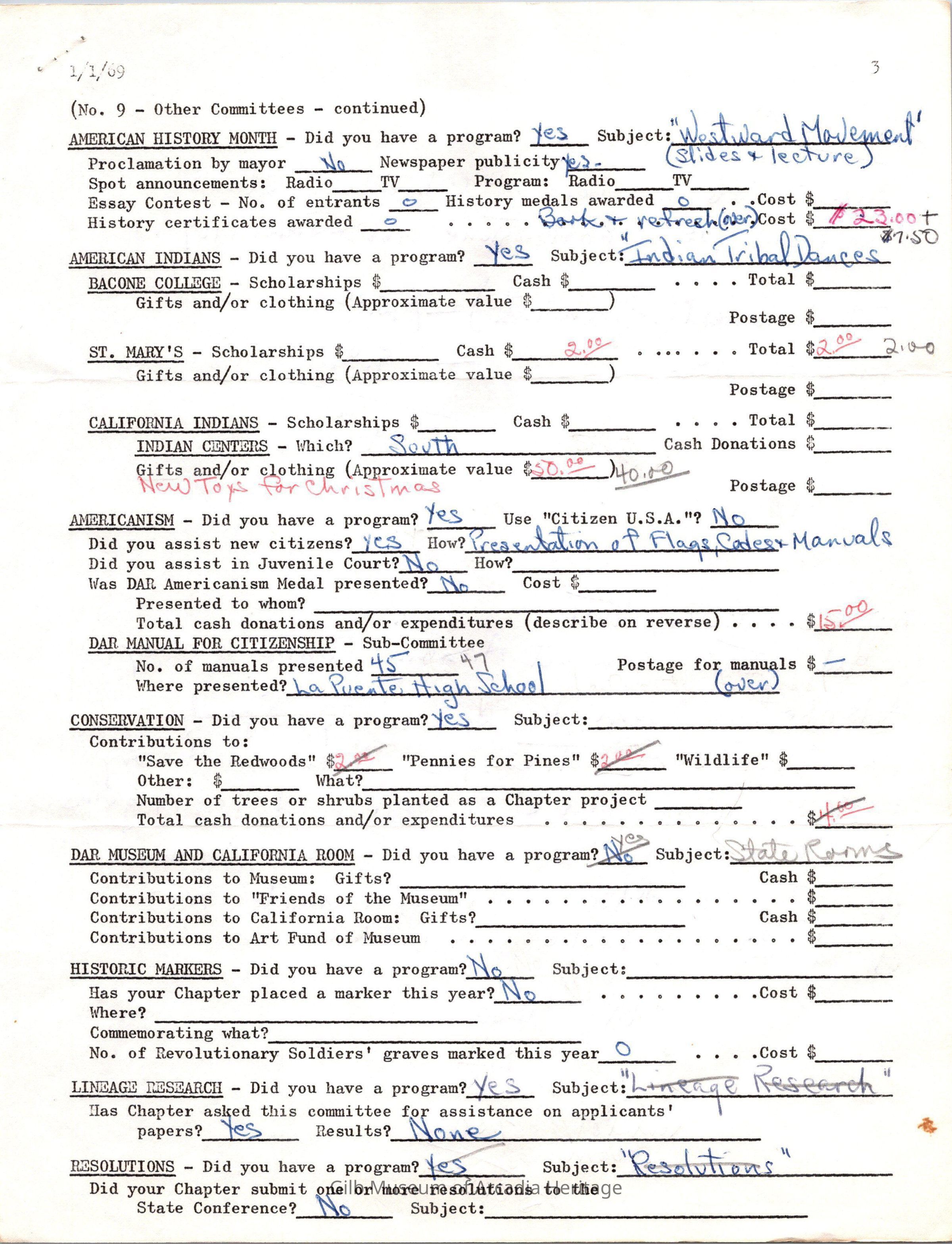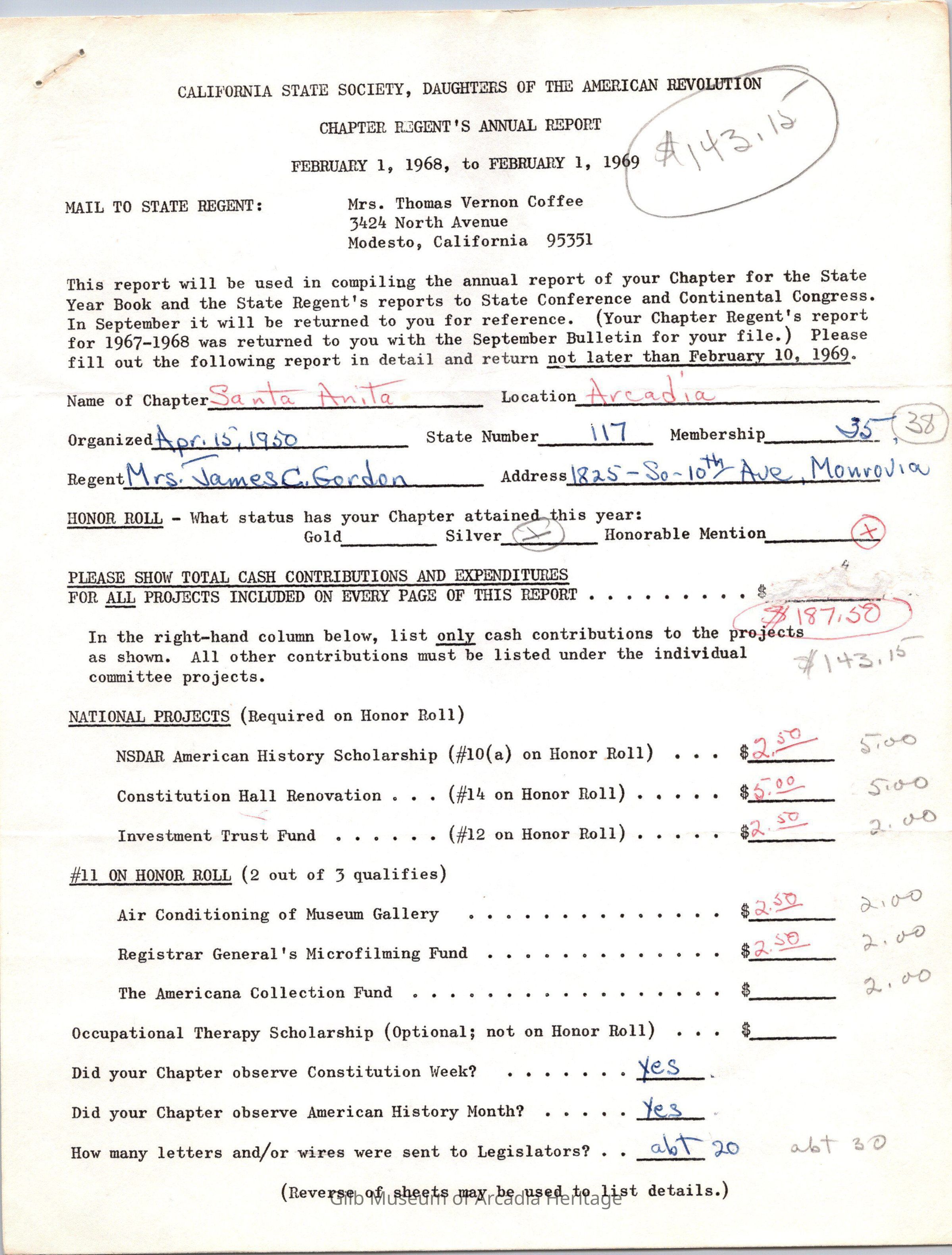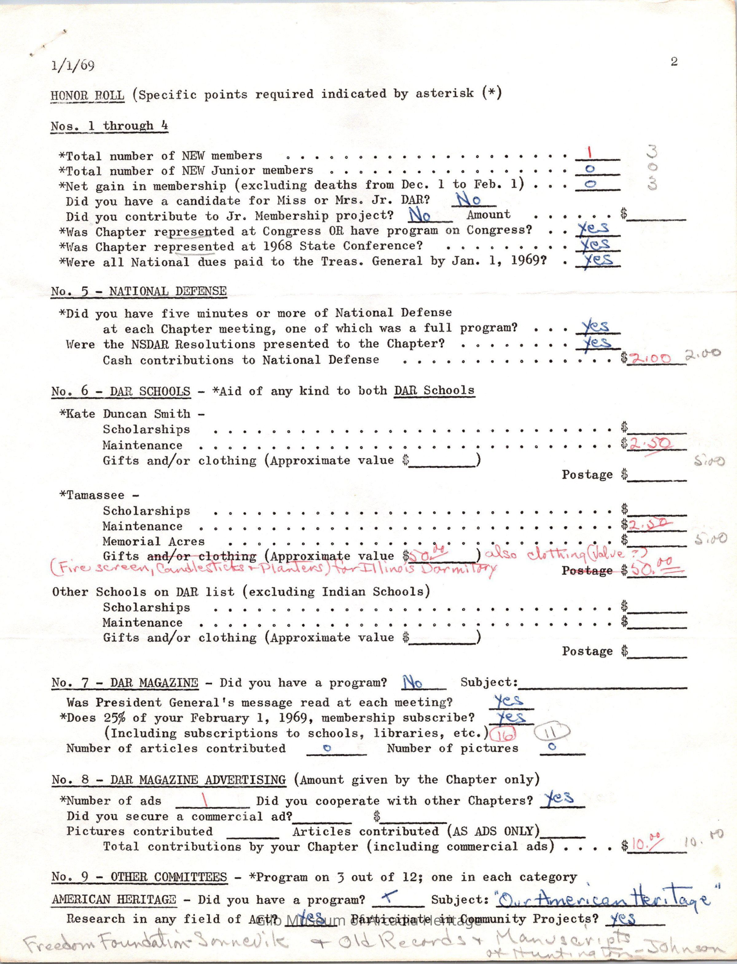 CSSDAR Chapter Regent's Annual Report for February 1,1968 to February 1,1969.Collection