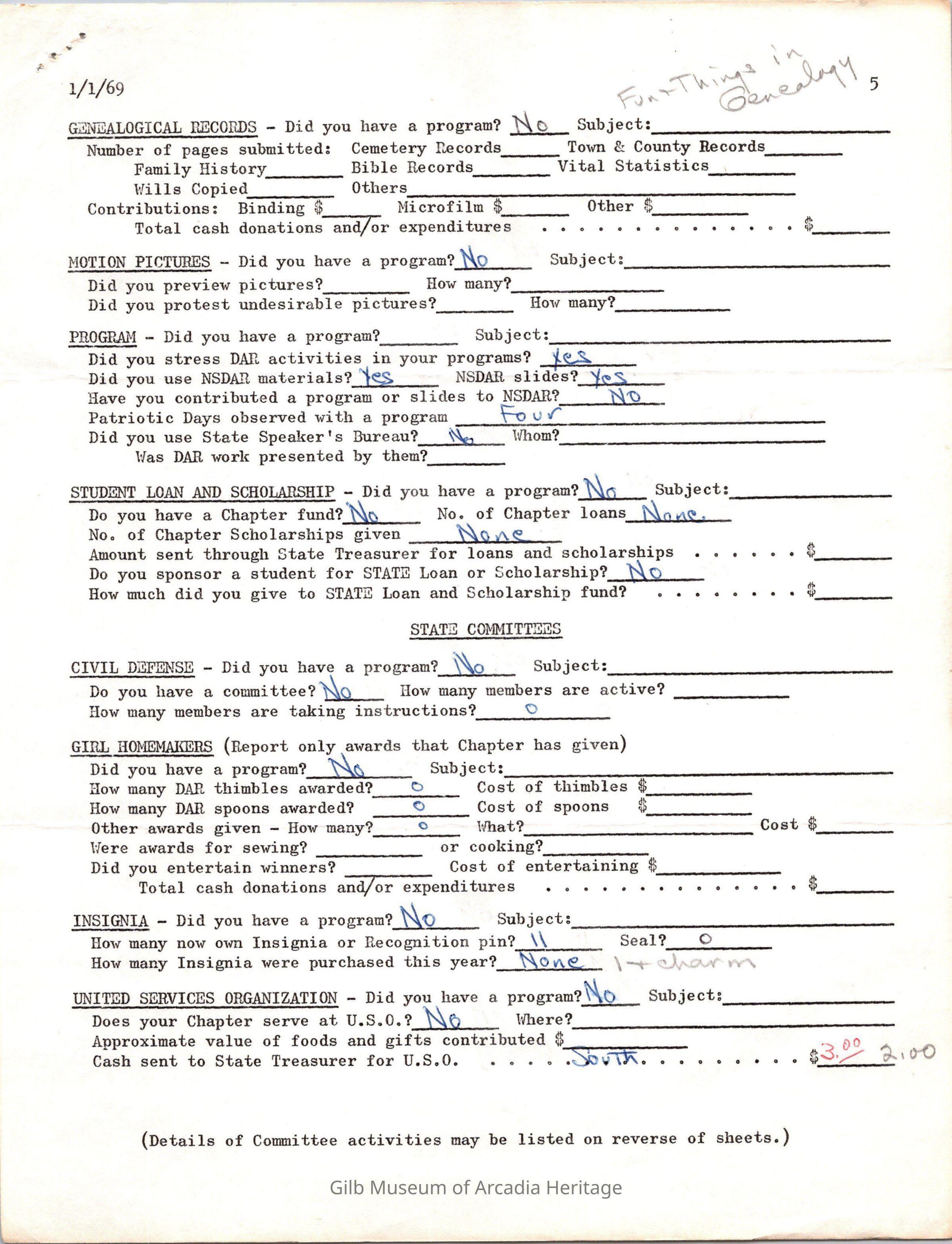 CSSDAR Chapter Regent's Annual Report for 1968-1969Entry/Object ID
