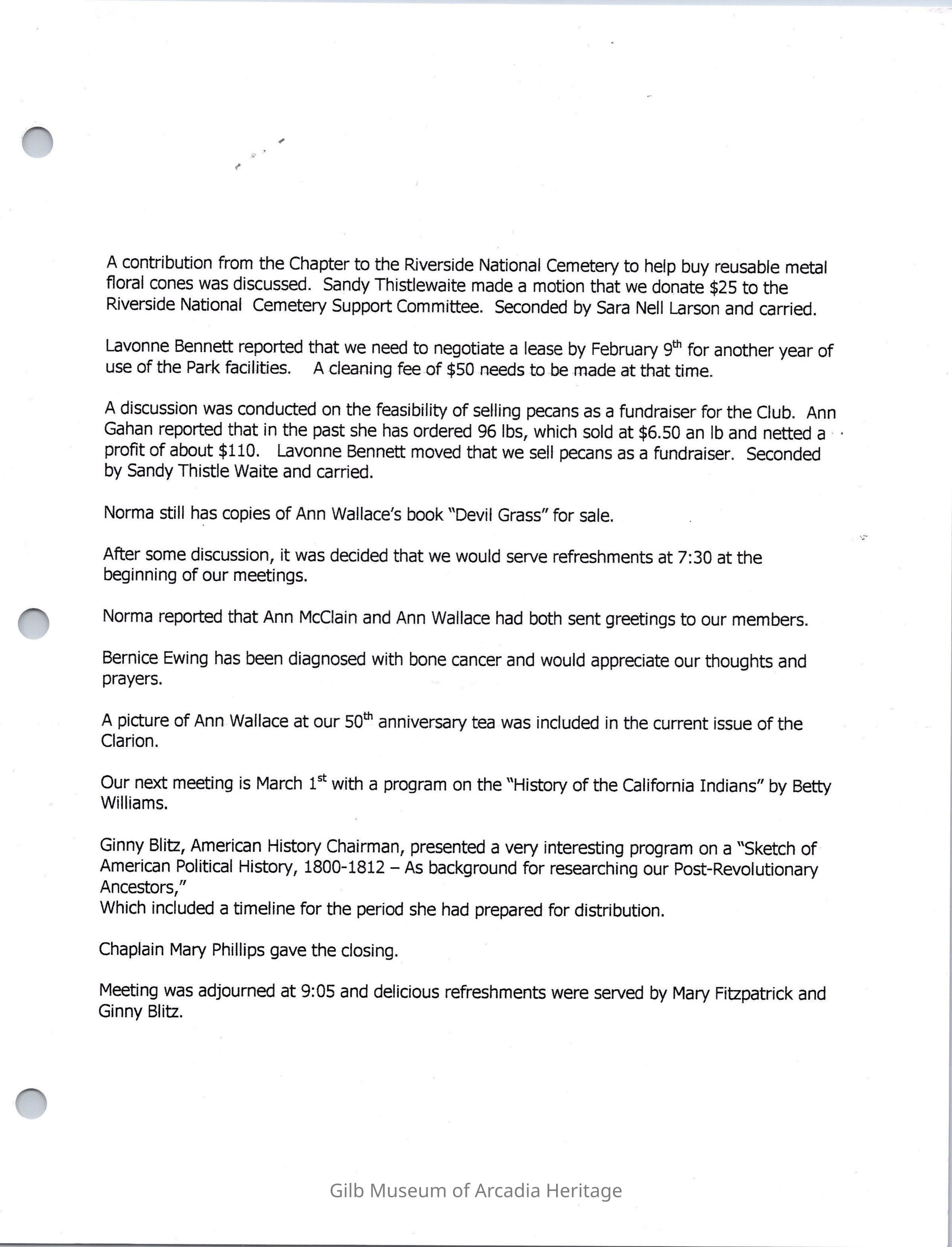 Santa Anita Chapter, DAR Board Meeting Feb.1, 2001.Collection
