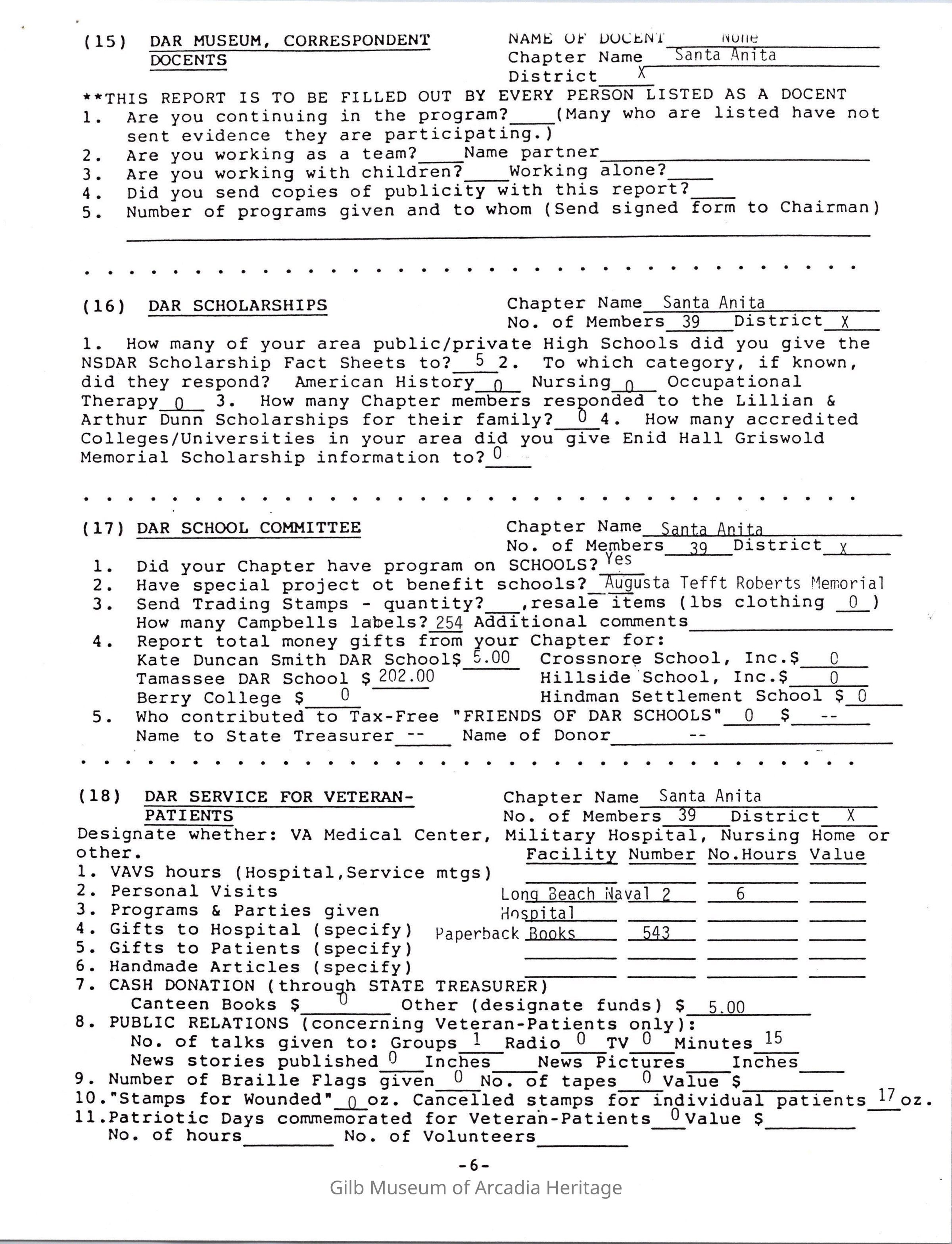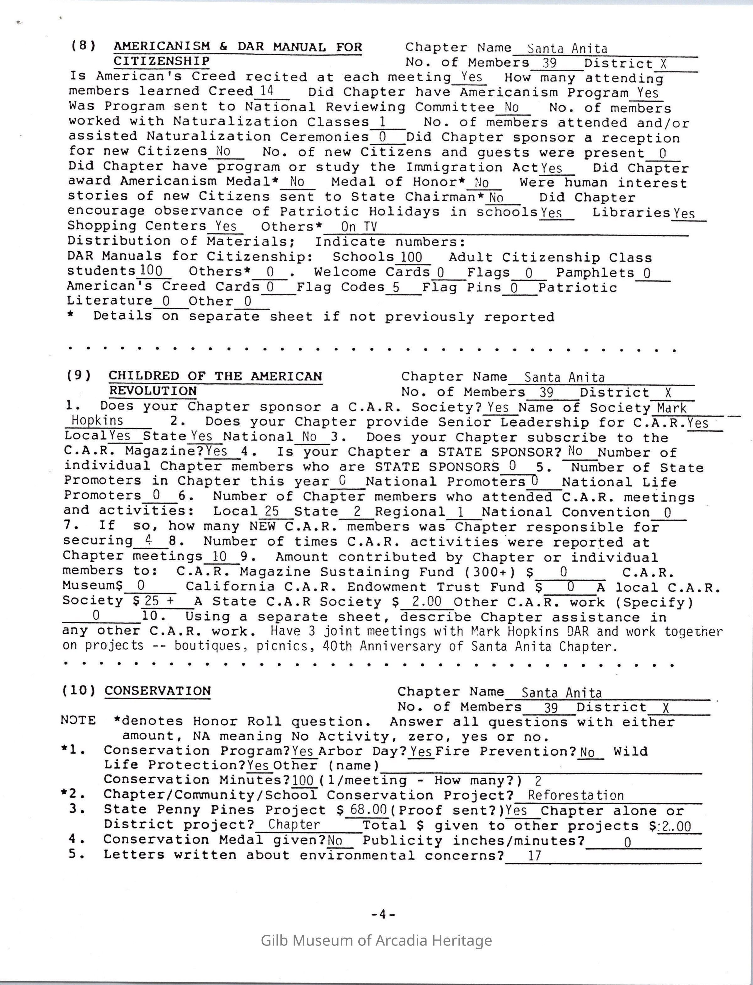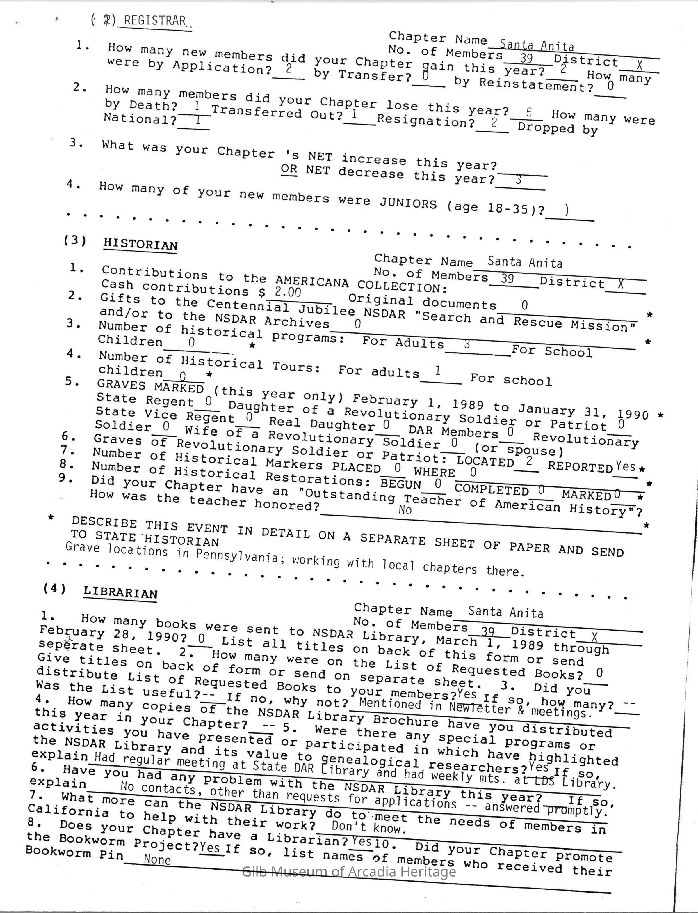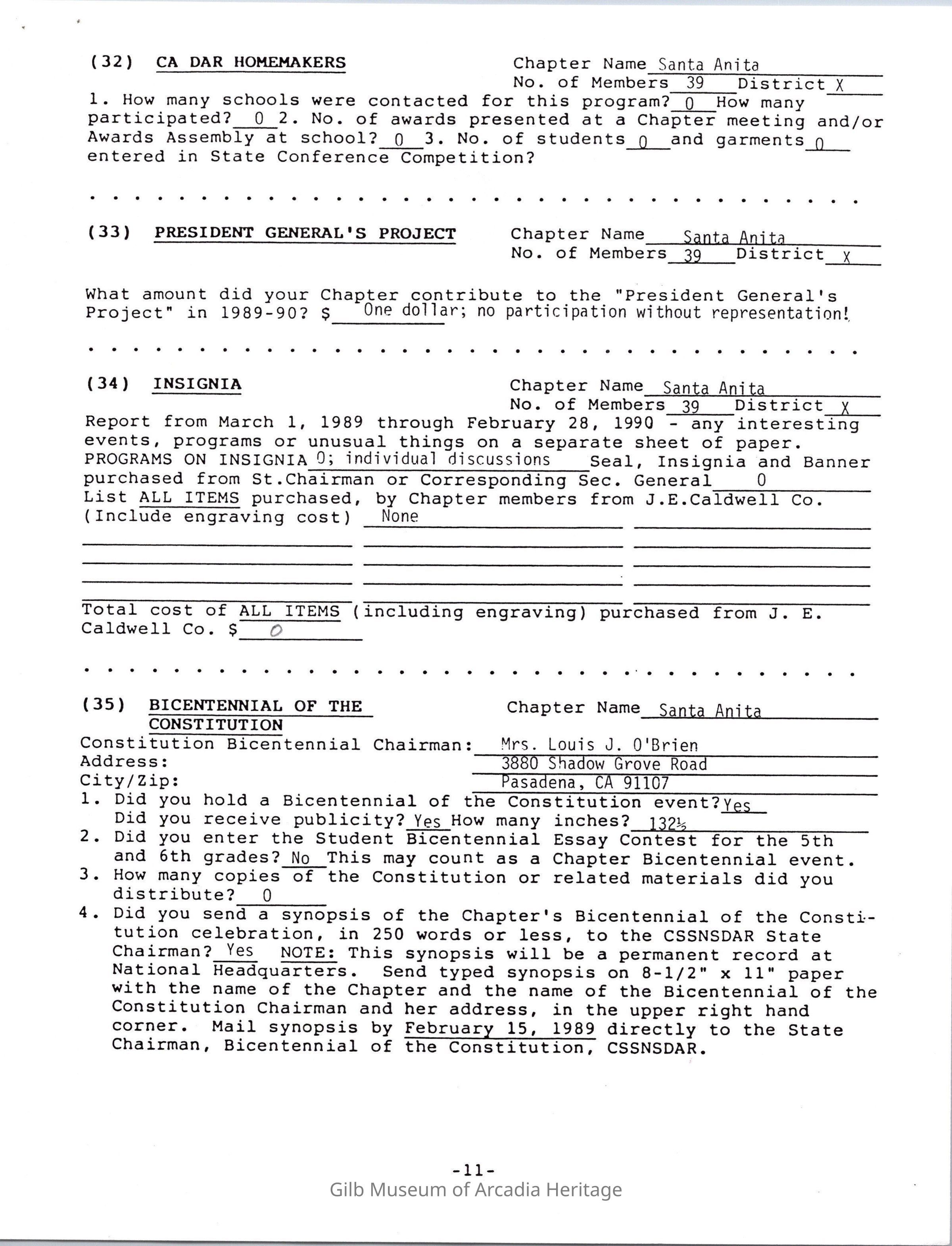 Daughters of American Revolution Santa Anita Chapter