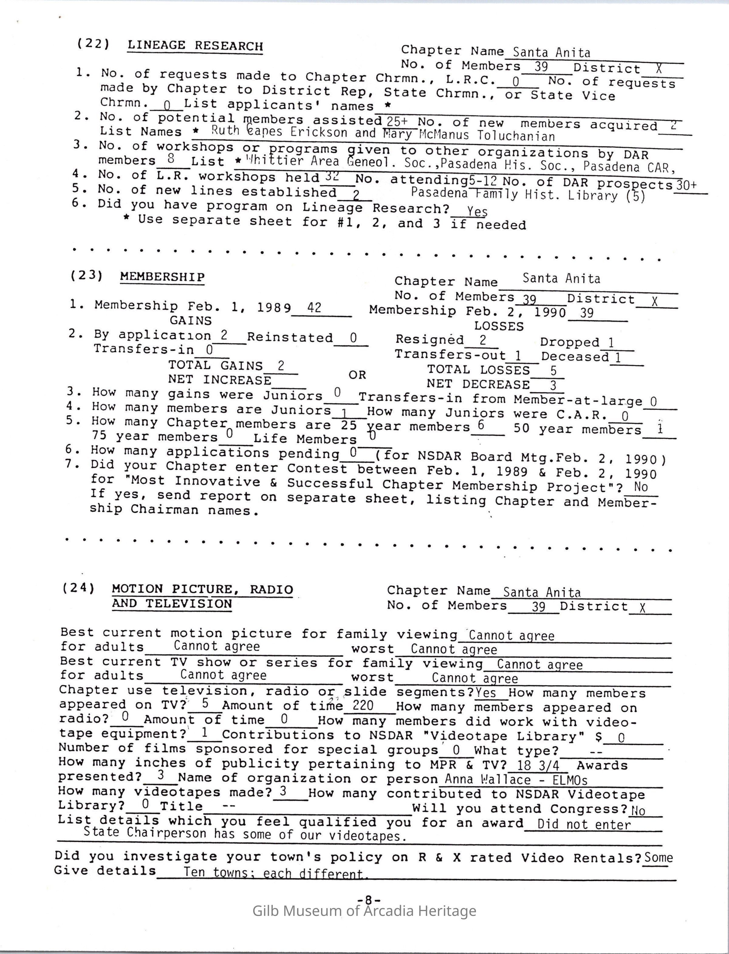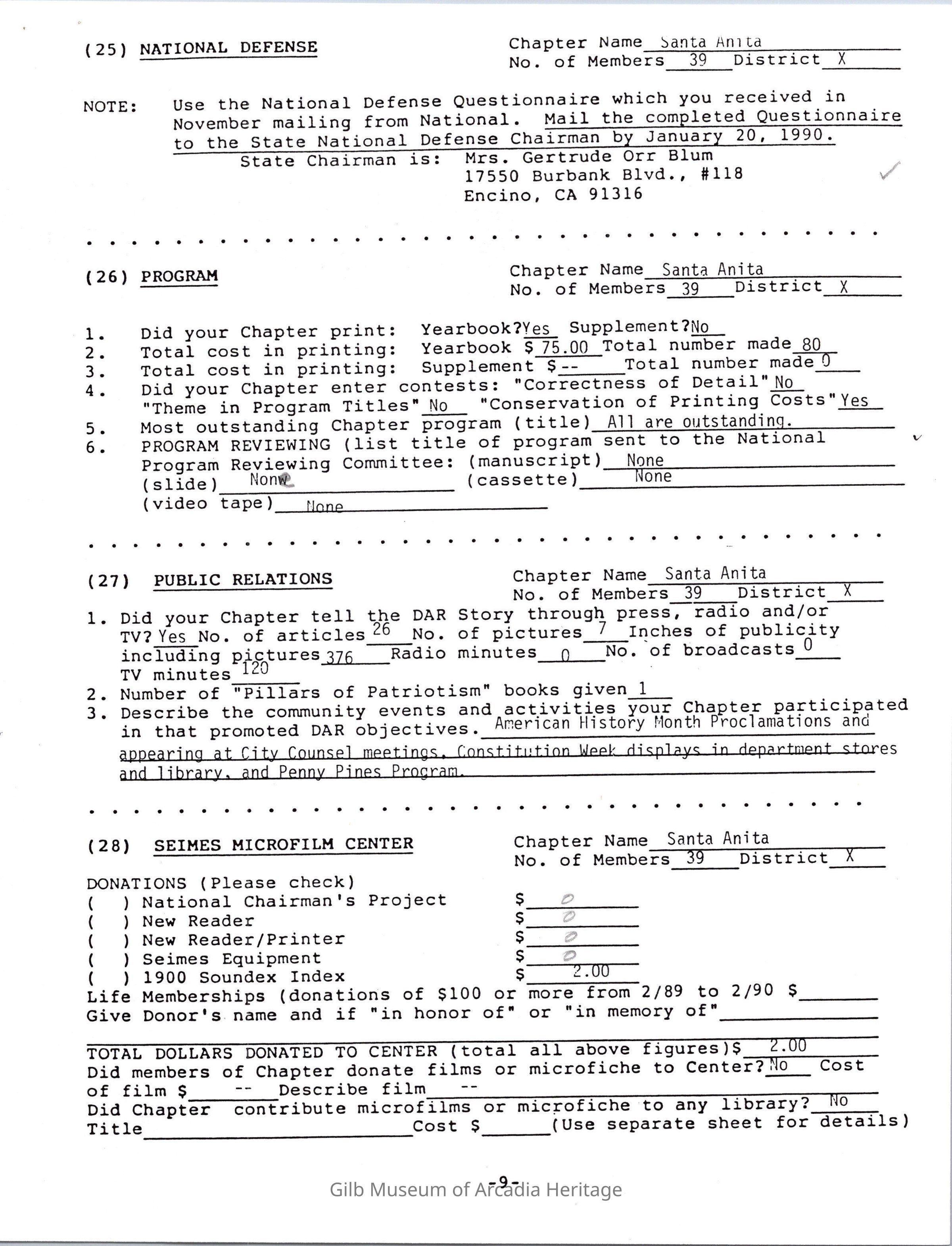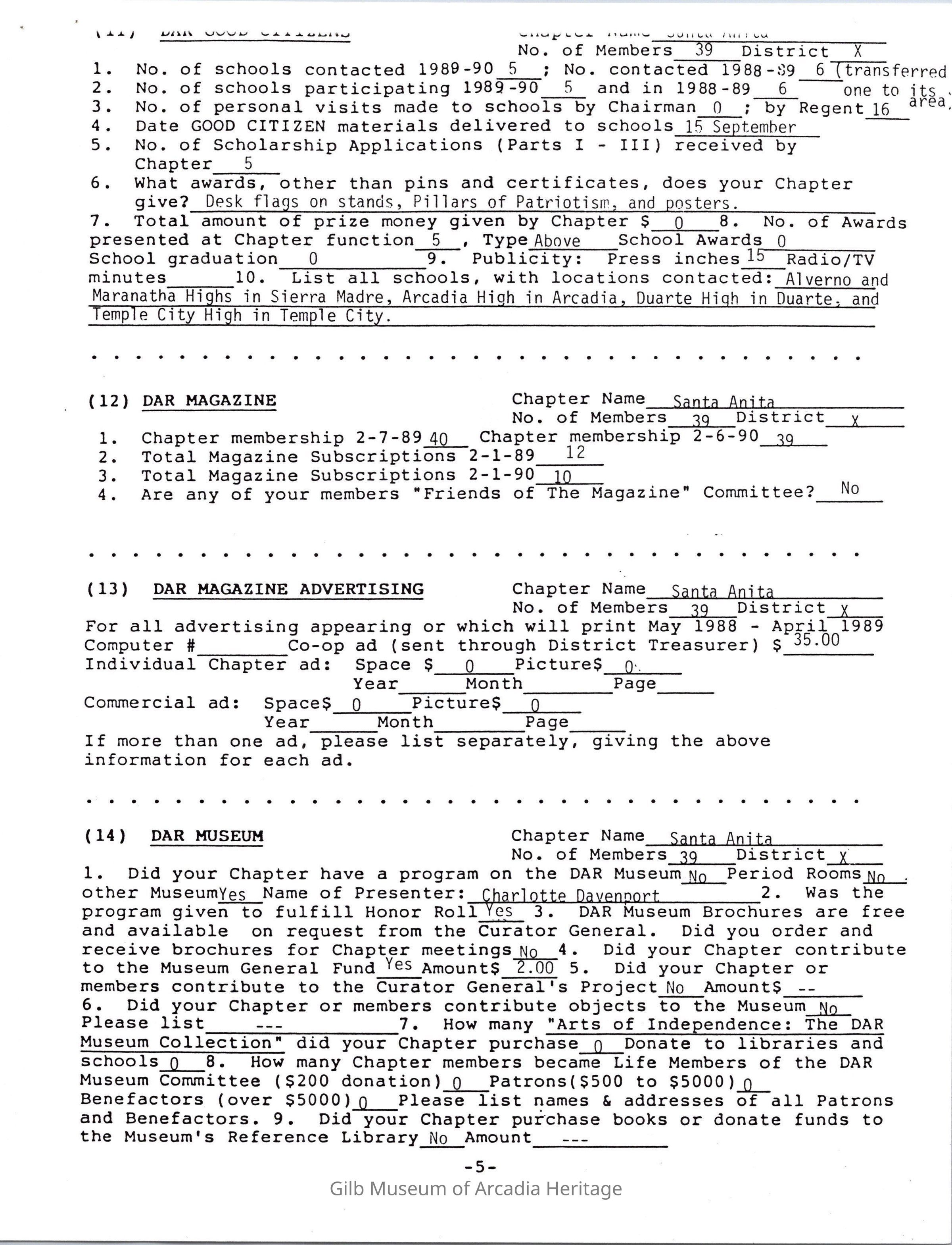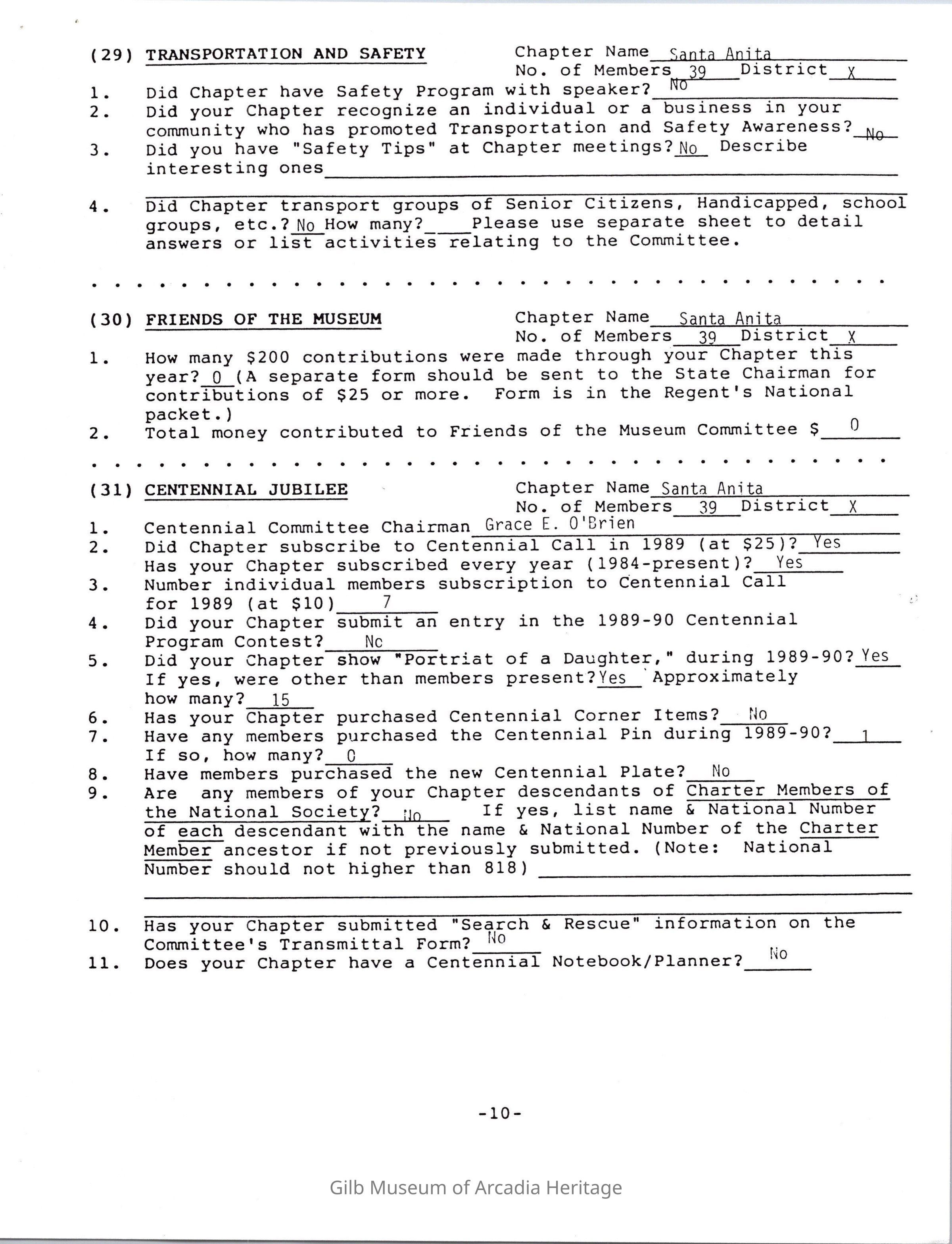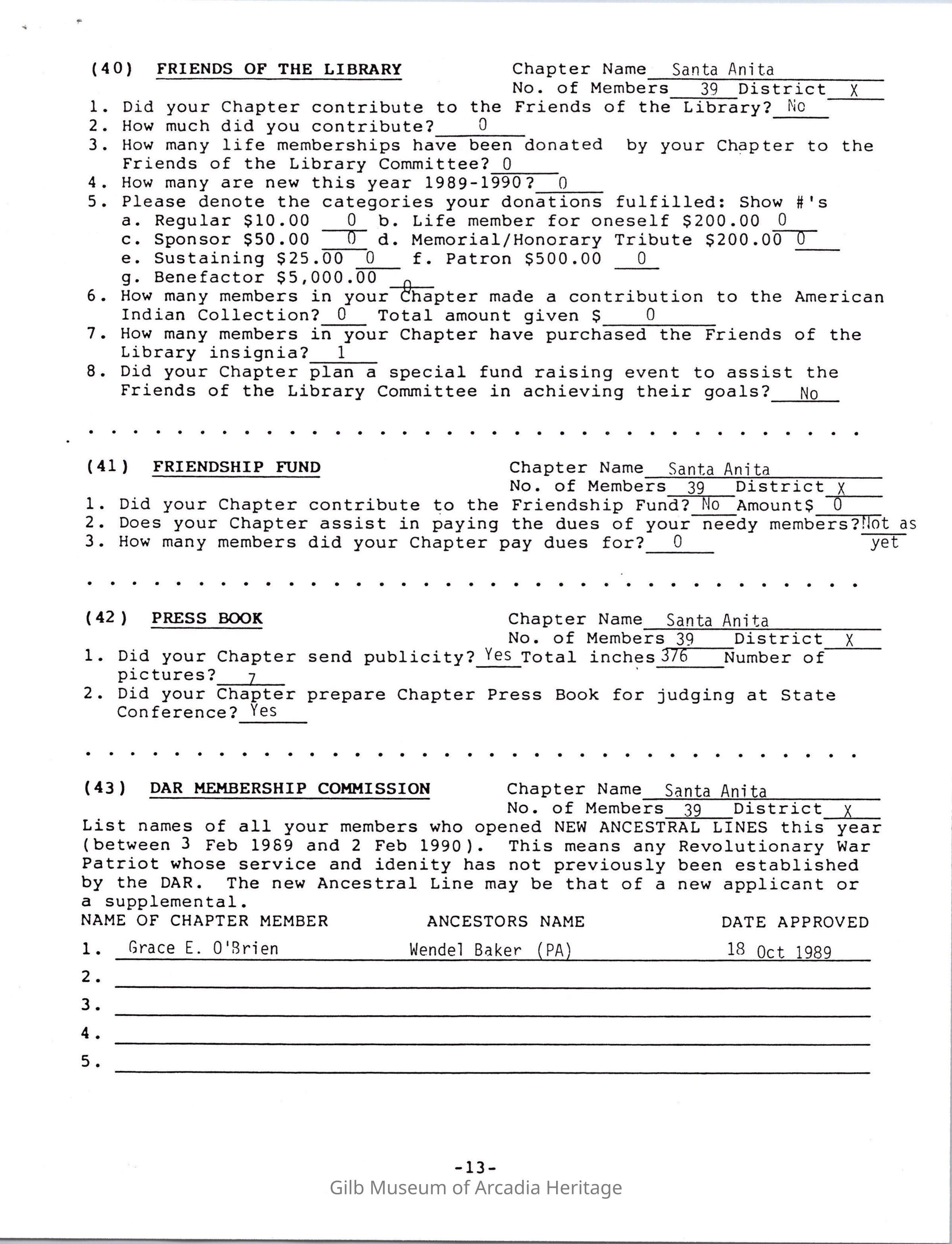 Daughters of American Revolution Santa Anita Chapter