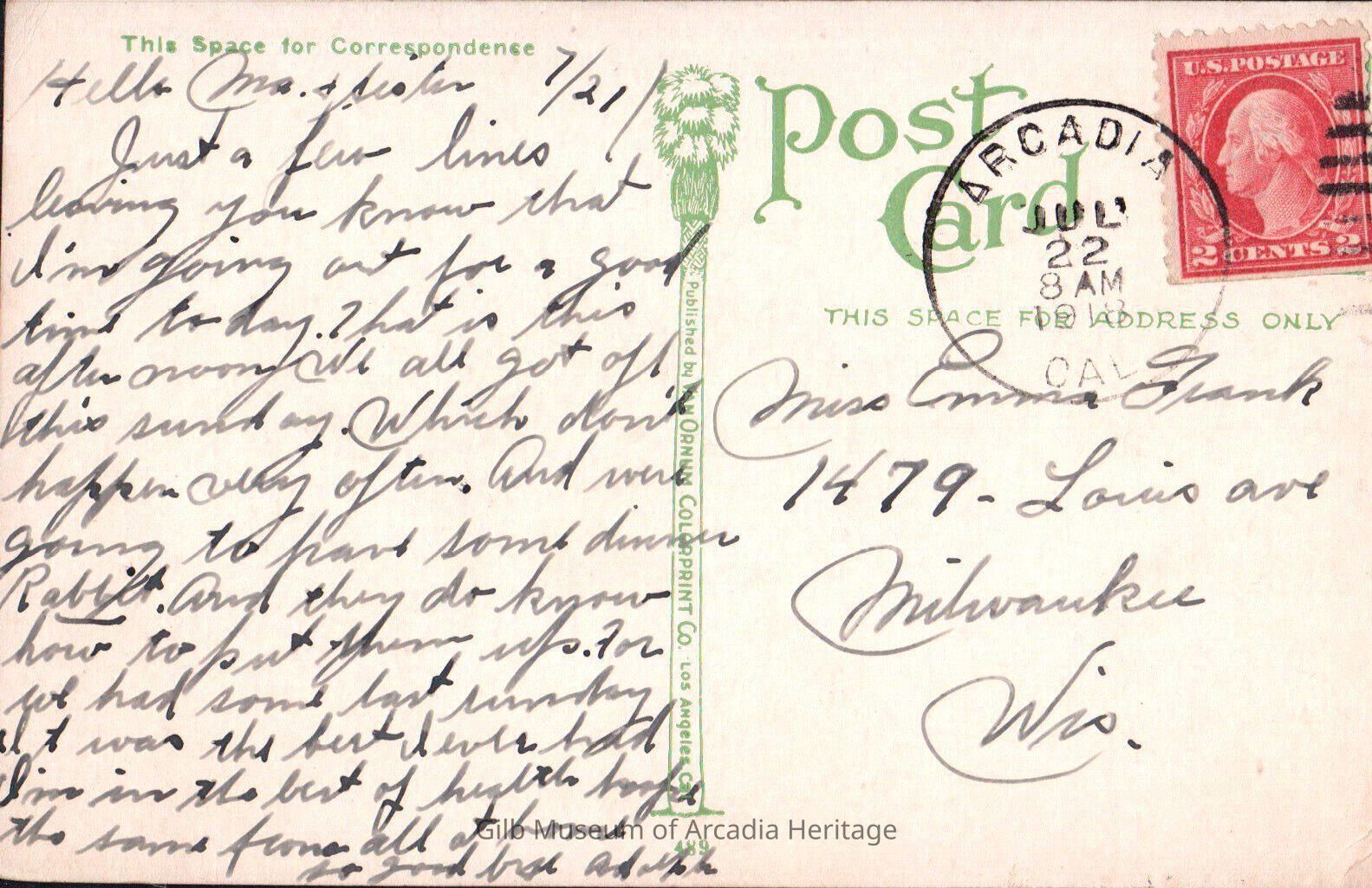 Hello Ma & Sister Just a few lines leaving you know that I’m out for a good time today. That is this afternoon. We all got off this Sunday. Which don’t happen very often. And were going to have some dinner Rabbit. And they do know how to put them up. For got had some last sunday. It was the best I ever had. I’m in the best of health hope the same from all at home. So good here. Adolph.