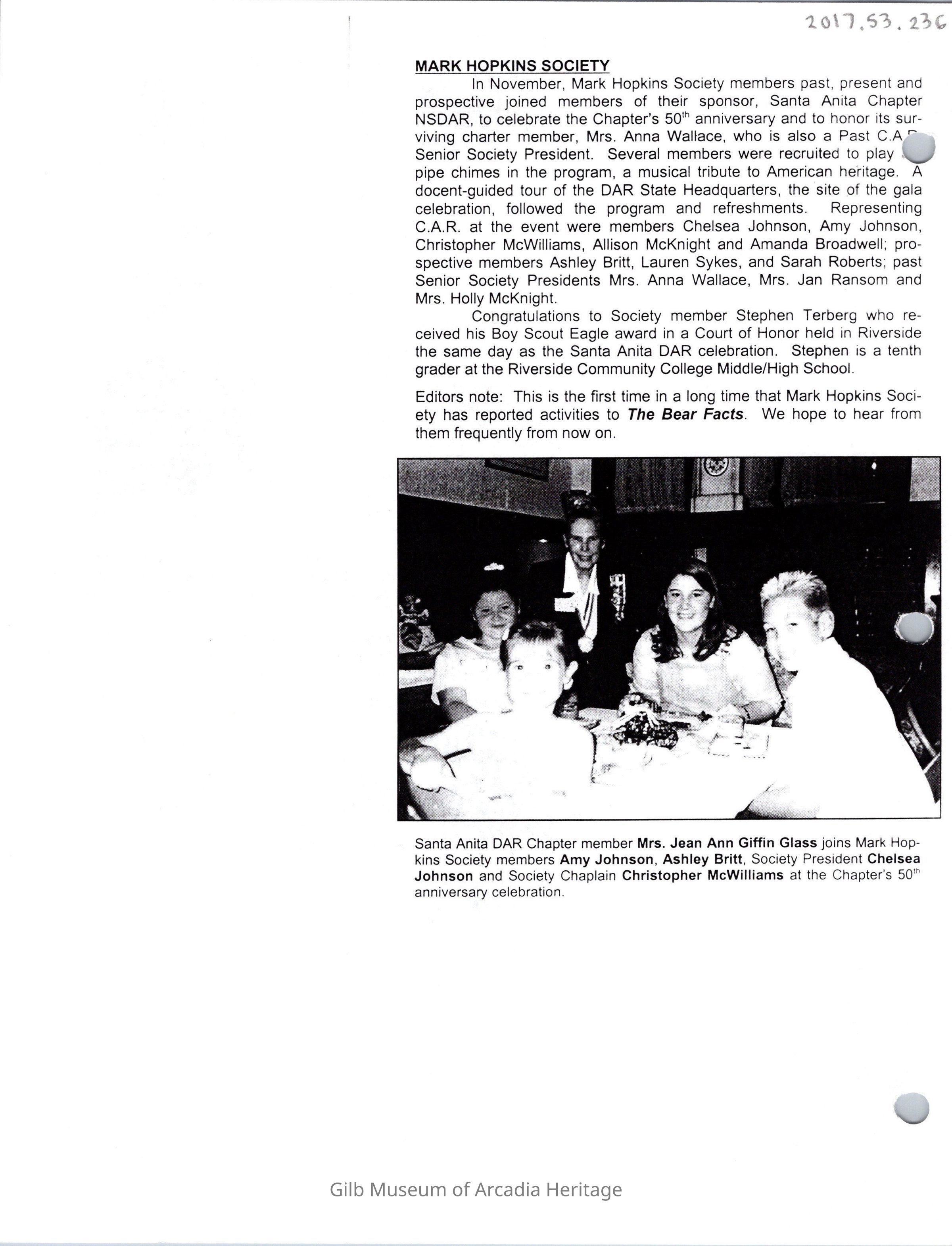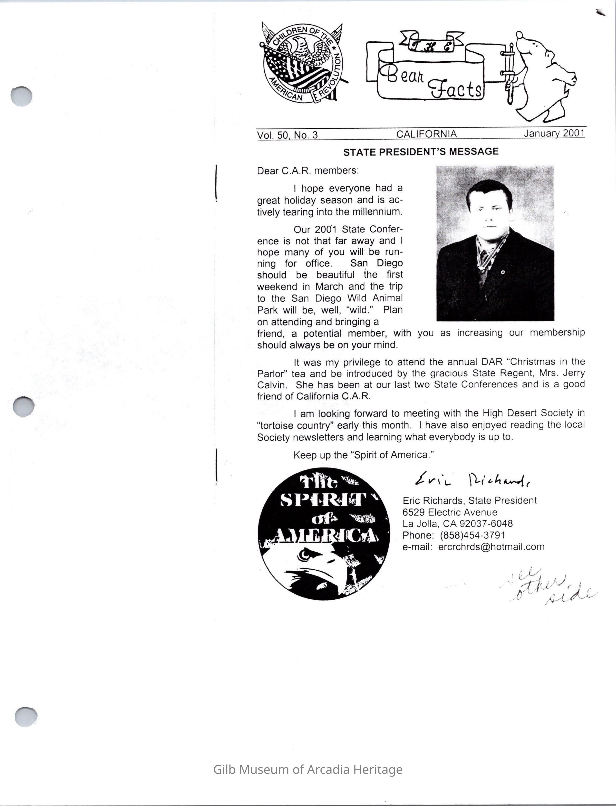 Bear Facts Newsletter, Jan. 2001. It was created by the California Children of the American Revolution.Collection