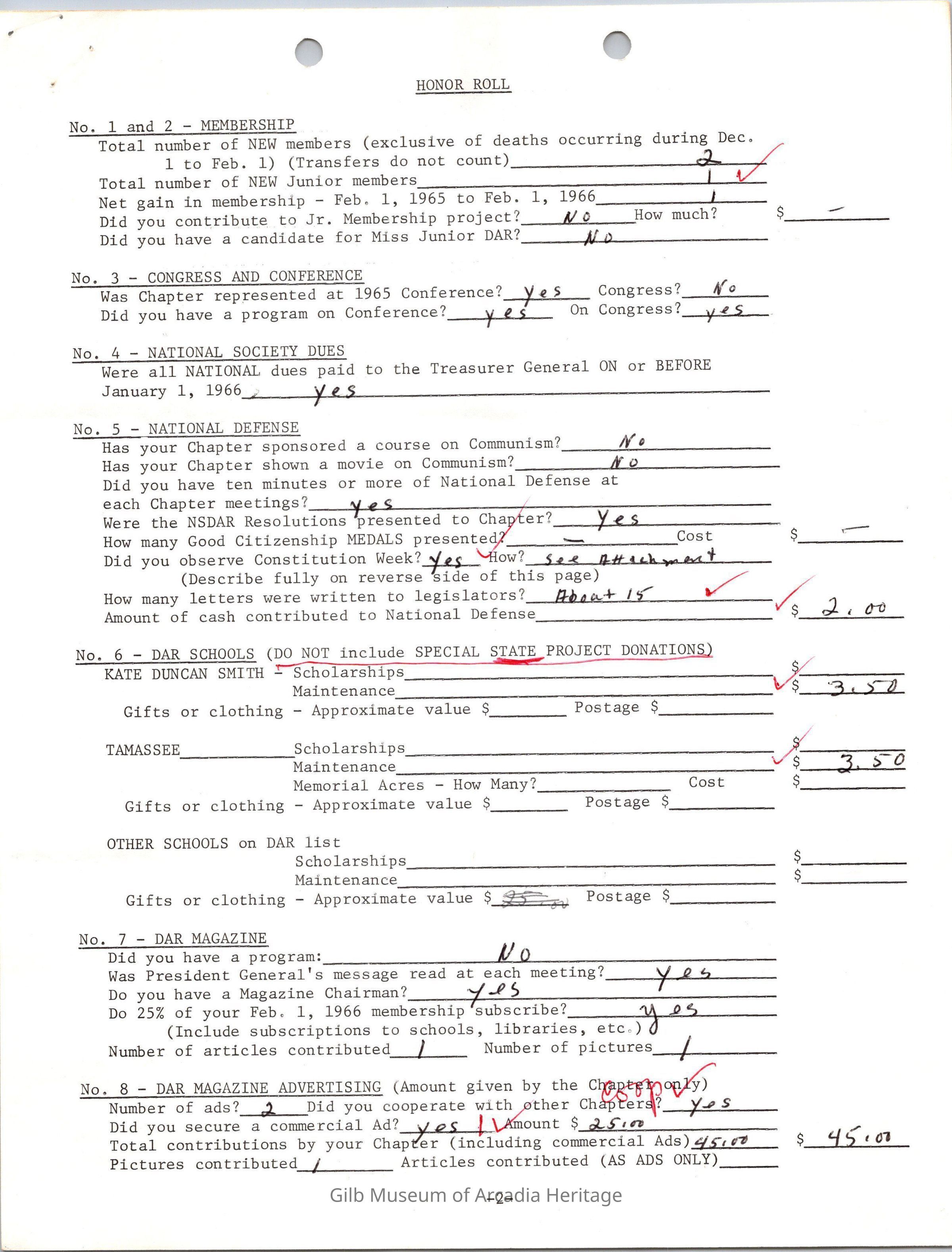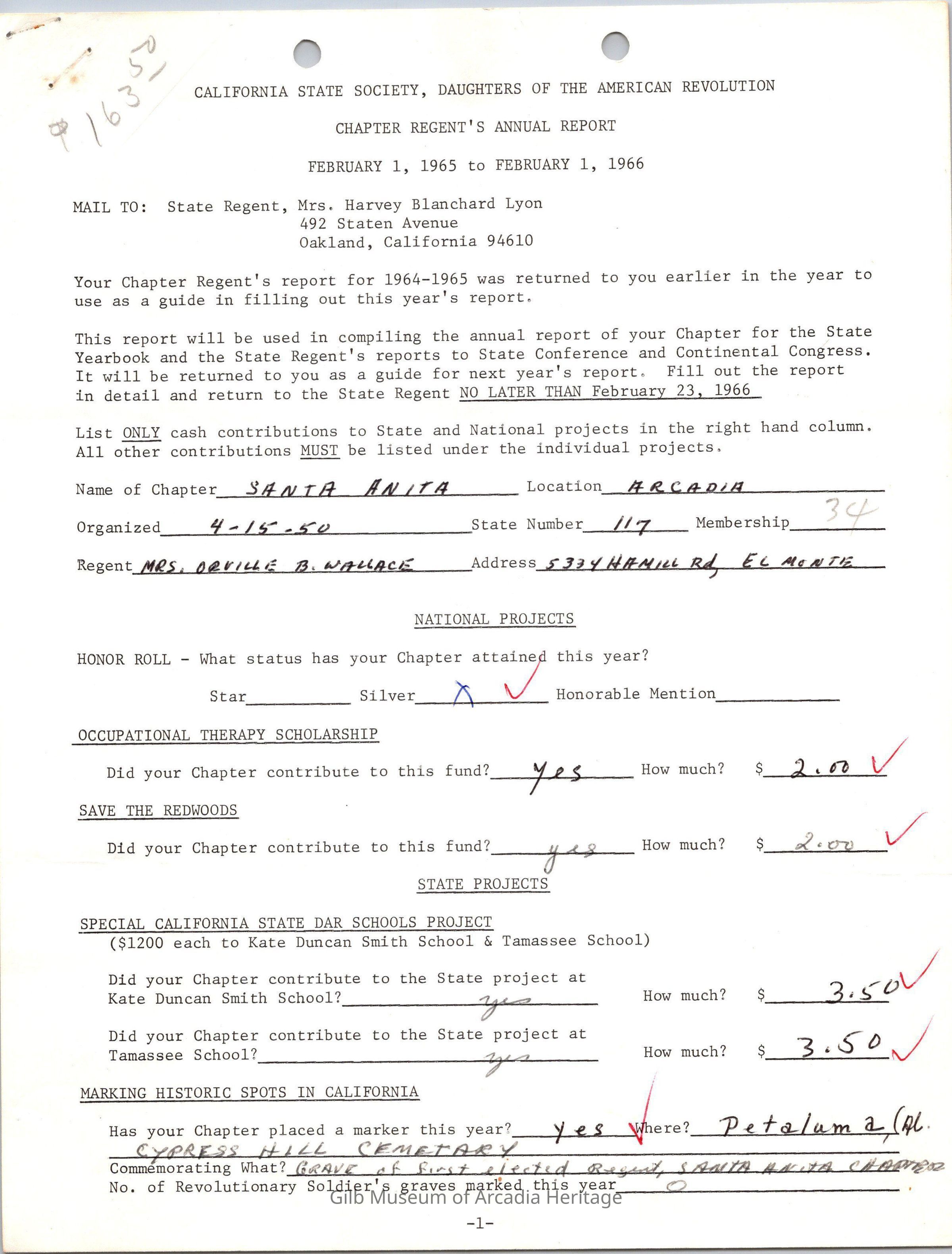 CSSDAR Chapter Regent's Annual Report for February 1,1965 to February 1,1966.