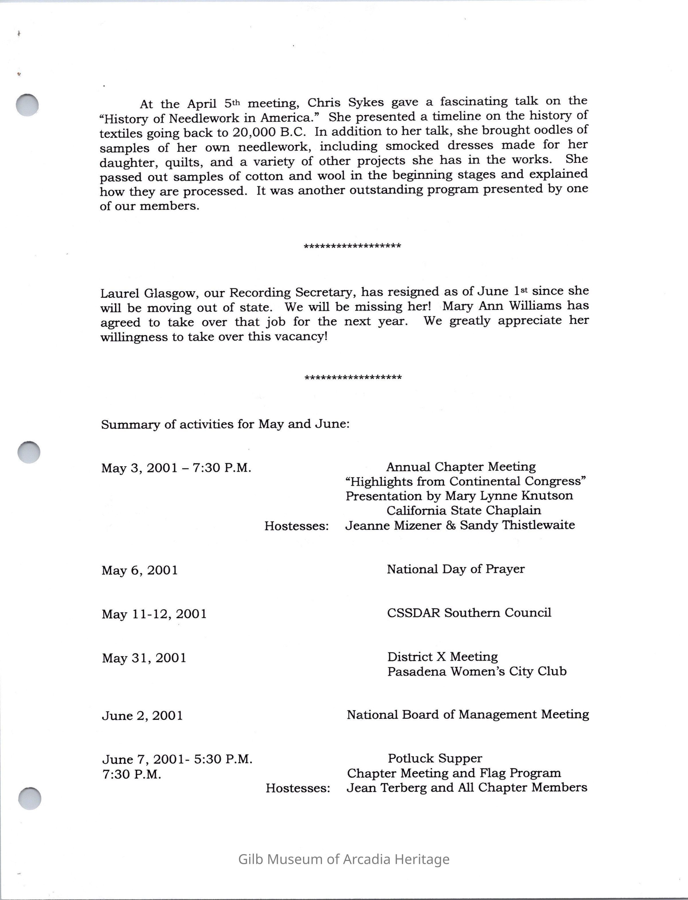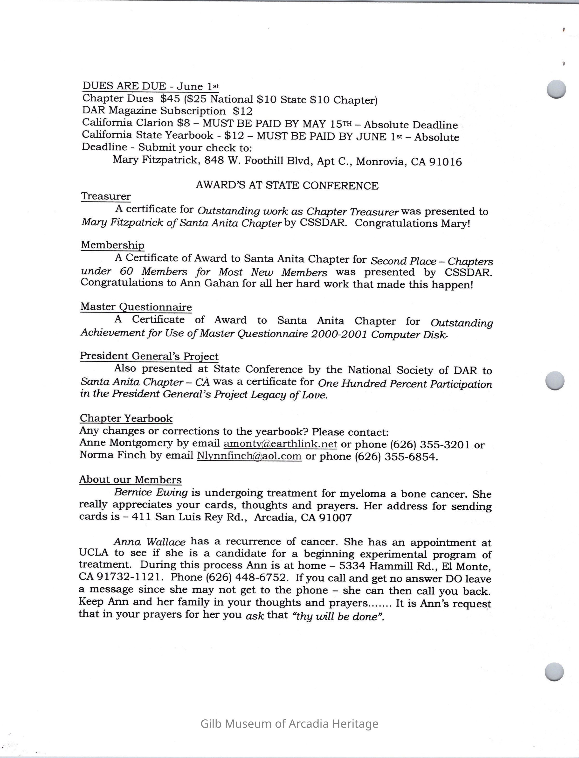 DAR: Santa Anita Chapter NSDAR May-June 2001 NewsletterCollection