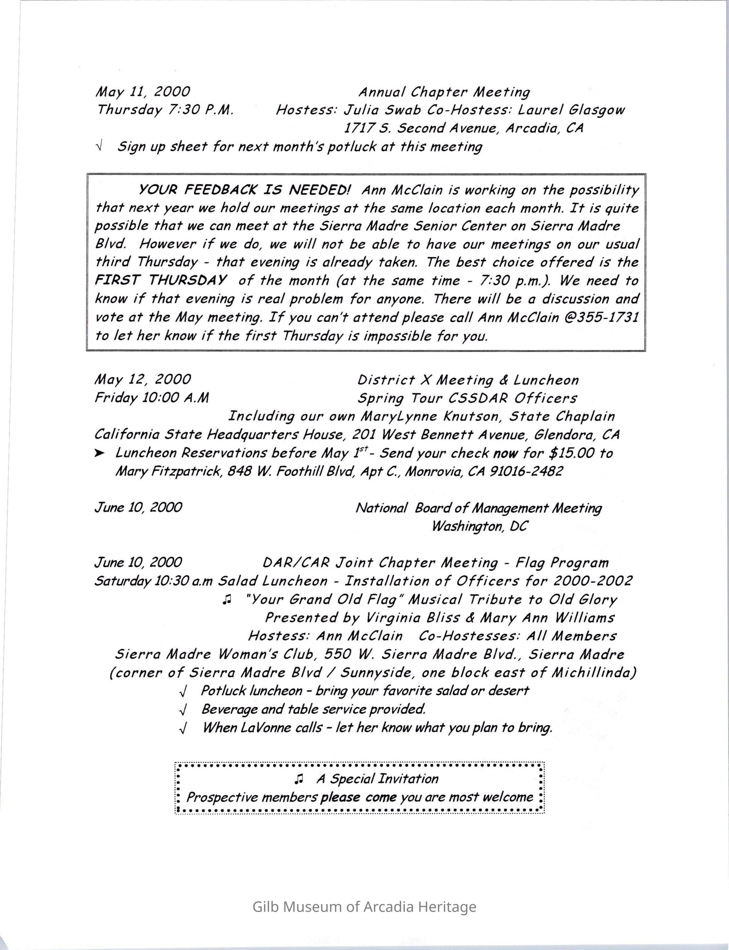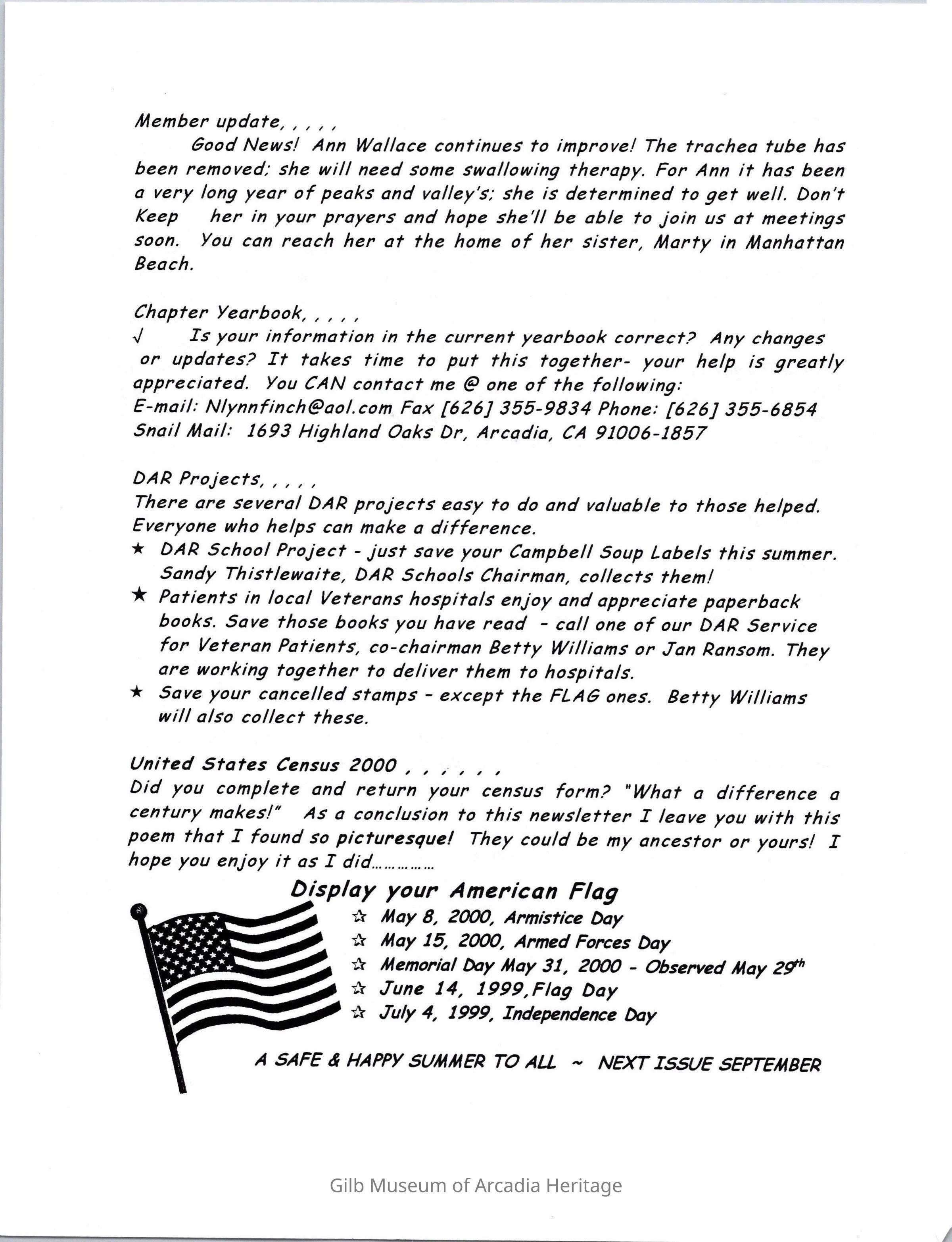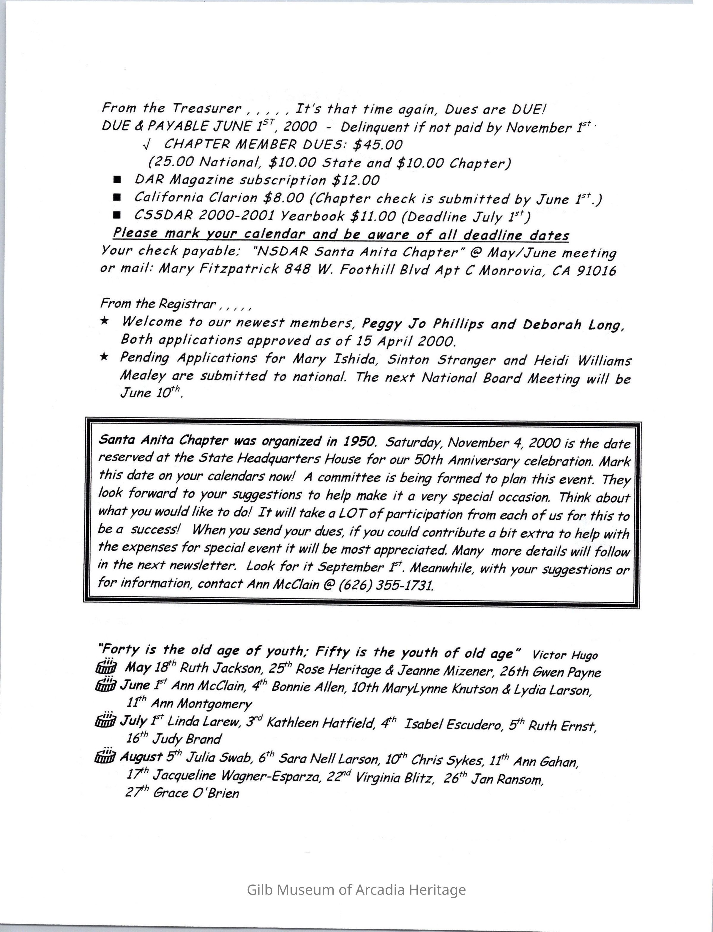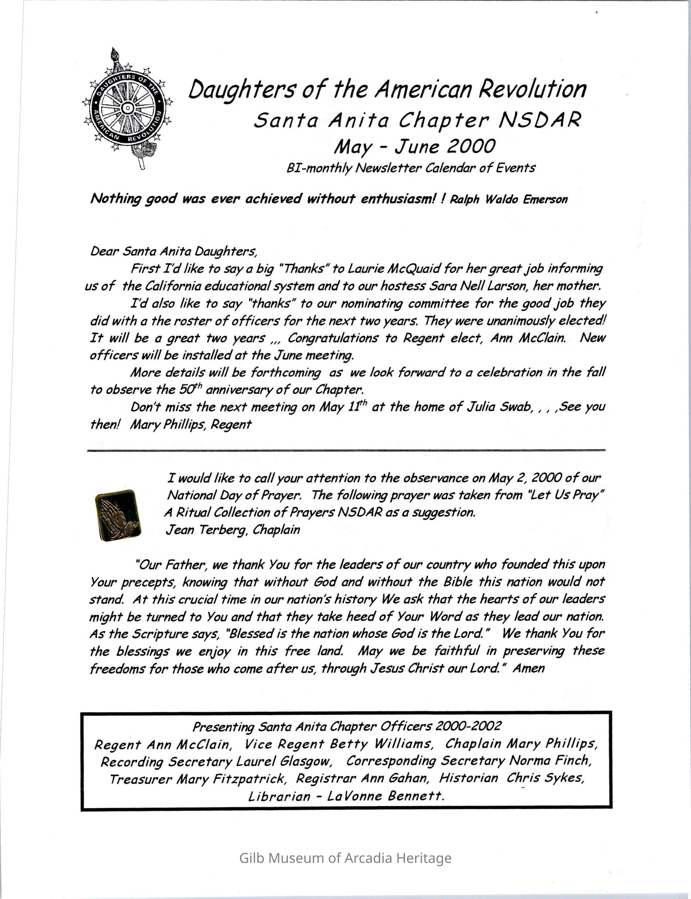 DAR: Santa Anita Chapter NSDAR May/June 2000 Newsletter