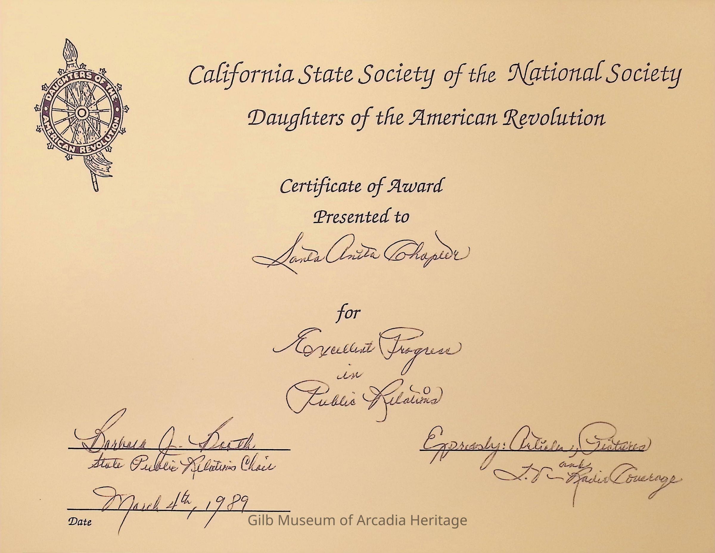 CSS DAR Award for Excellent Programs in Public Relations, March 1989