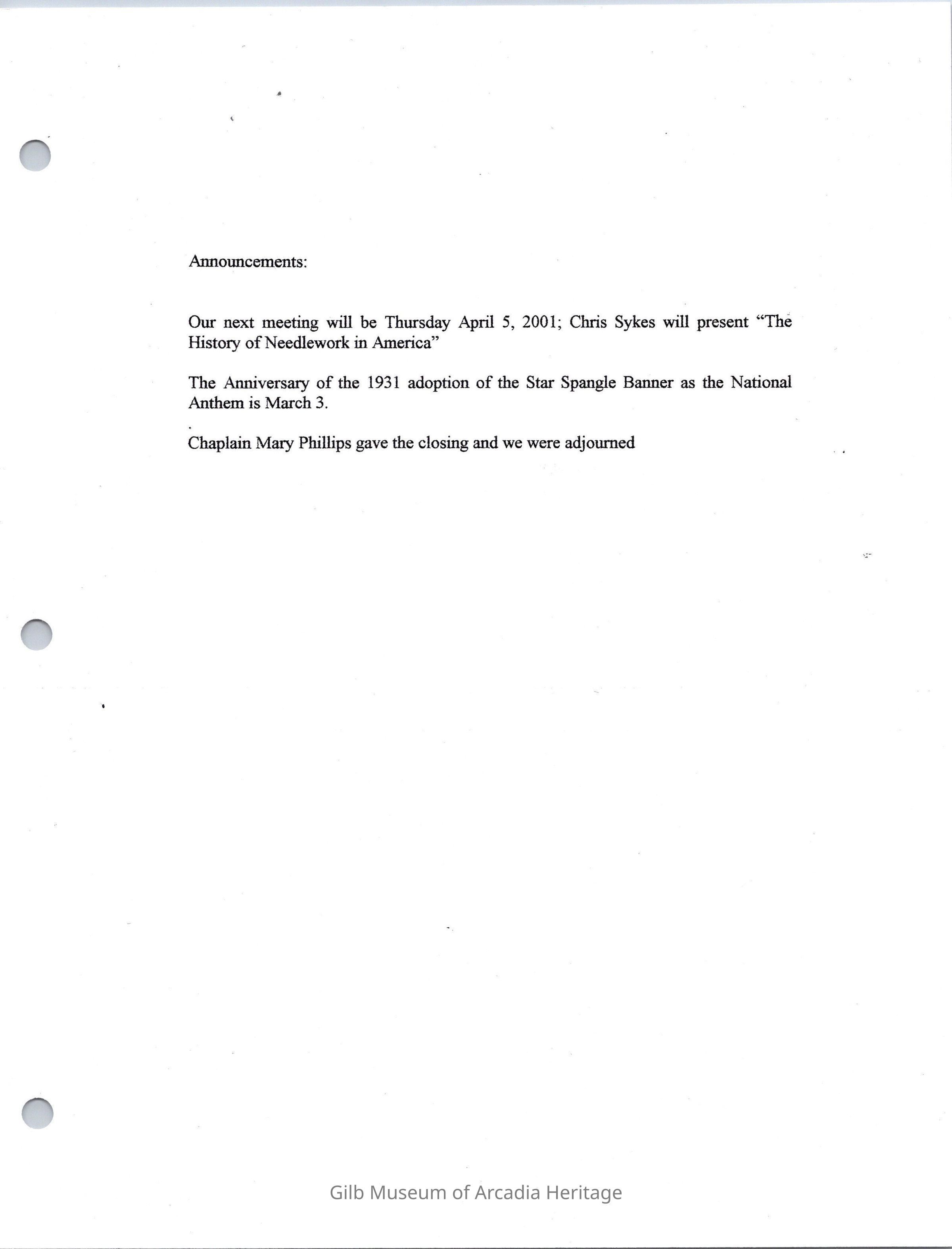 Santa Anita Chapter, DAR Board Meeting March 1, 2001.