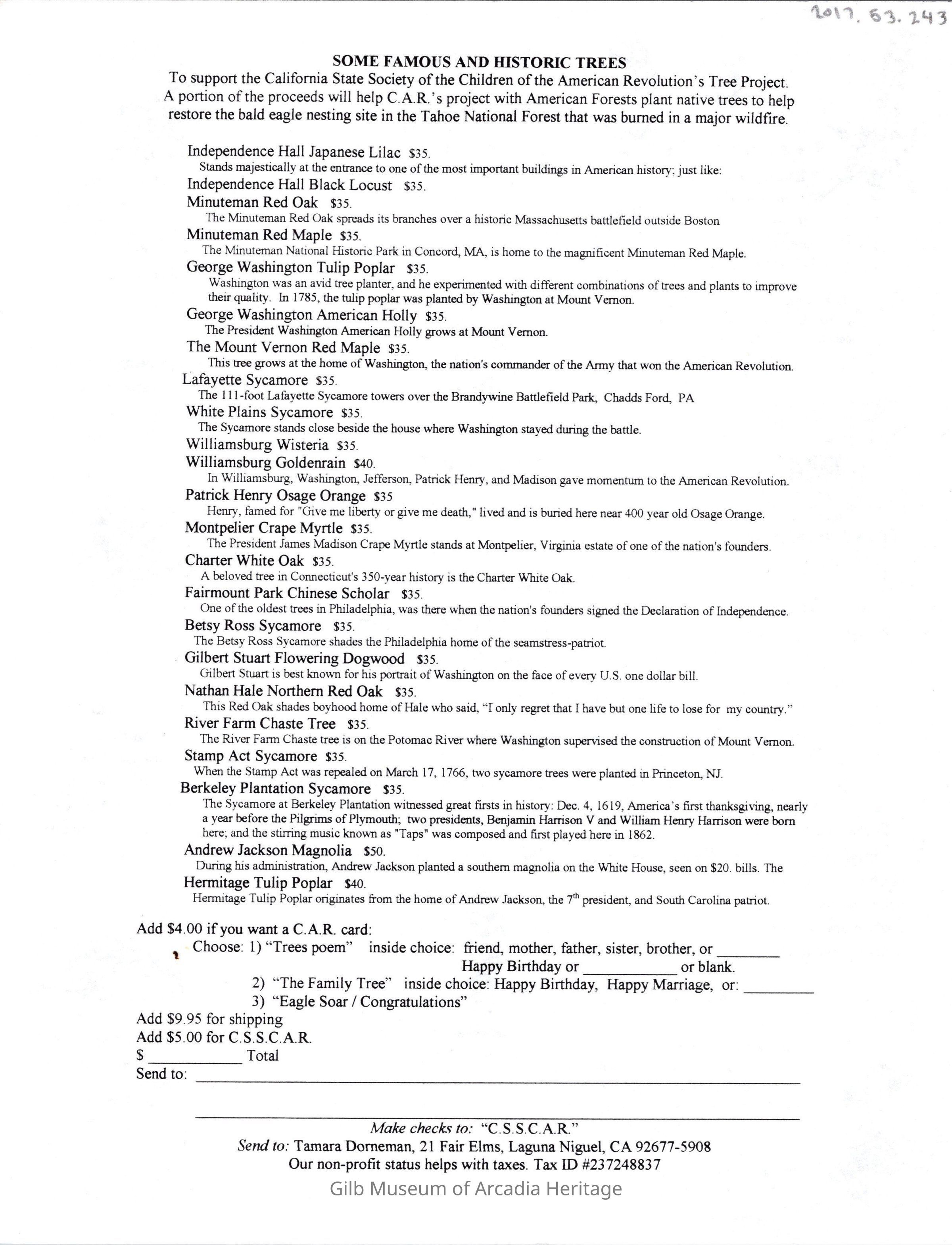 CSSCAR Tree Donation Newsletter