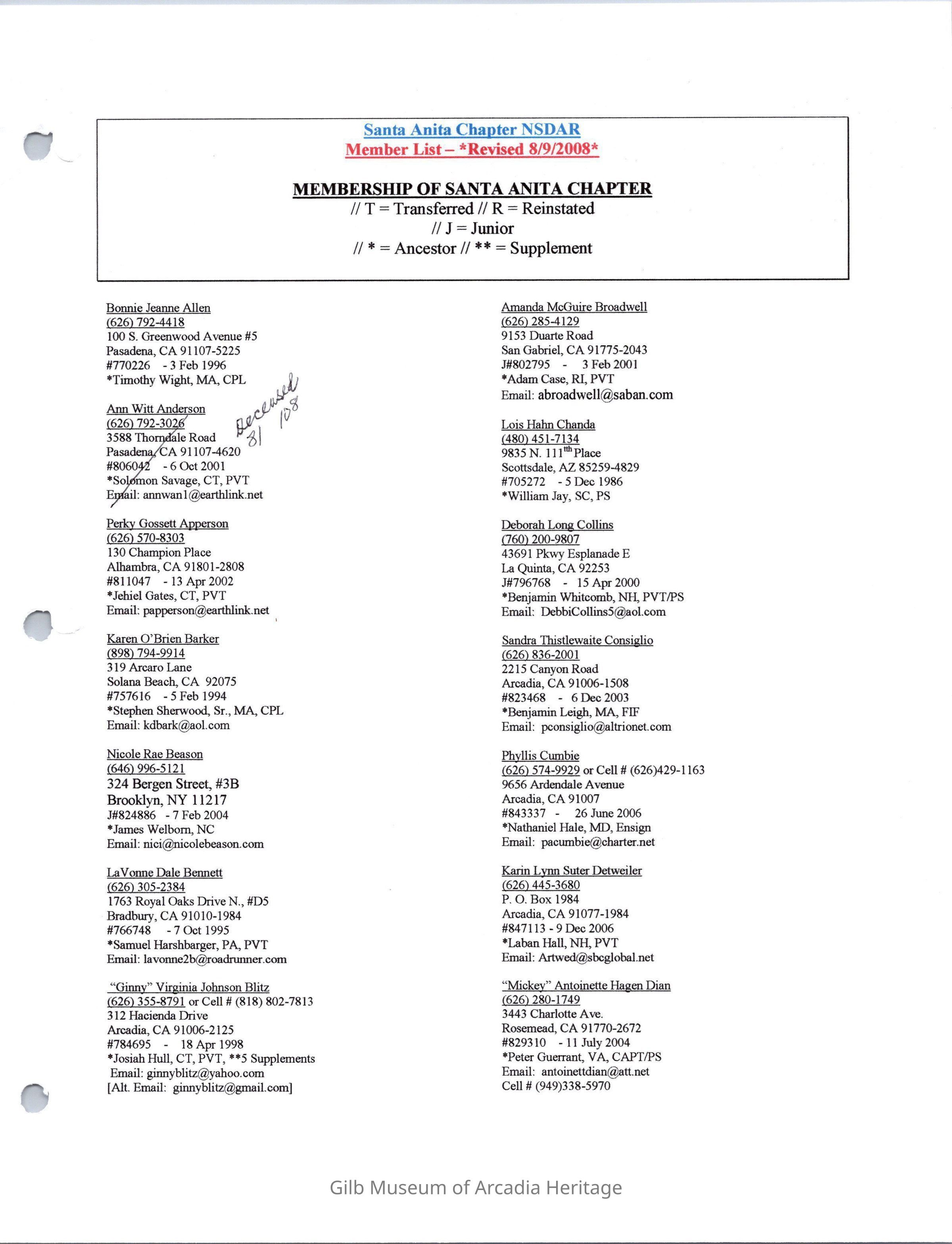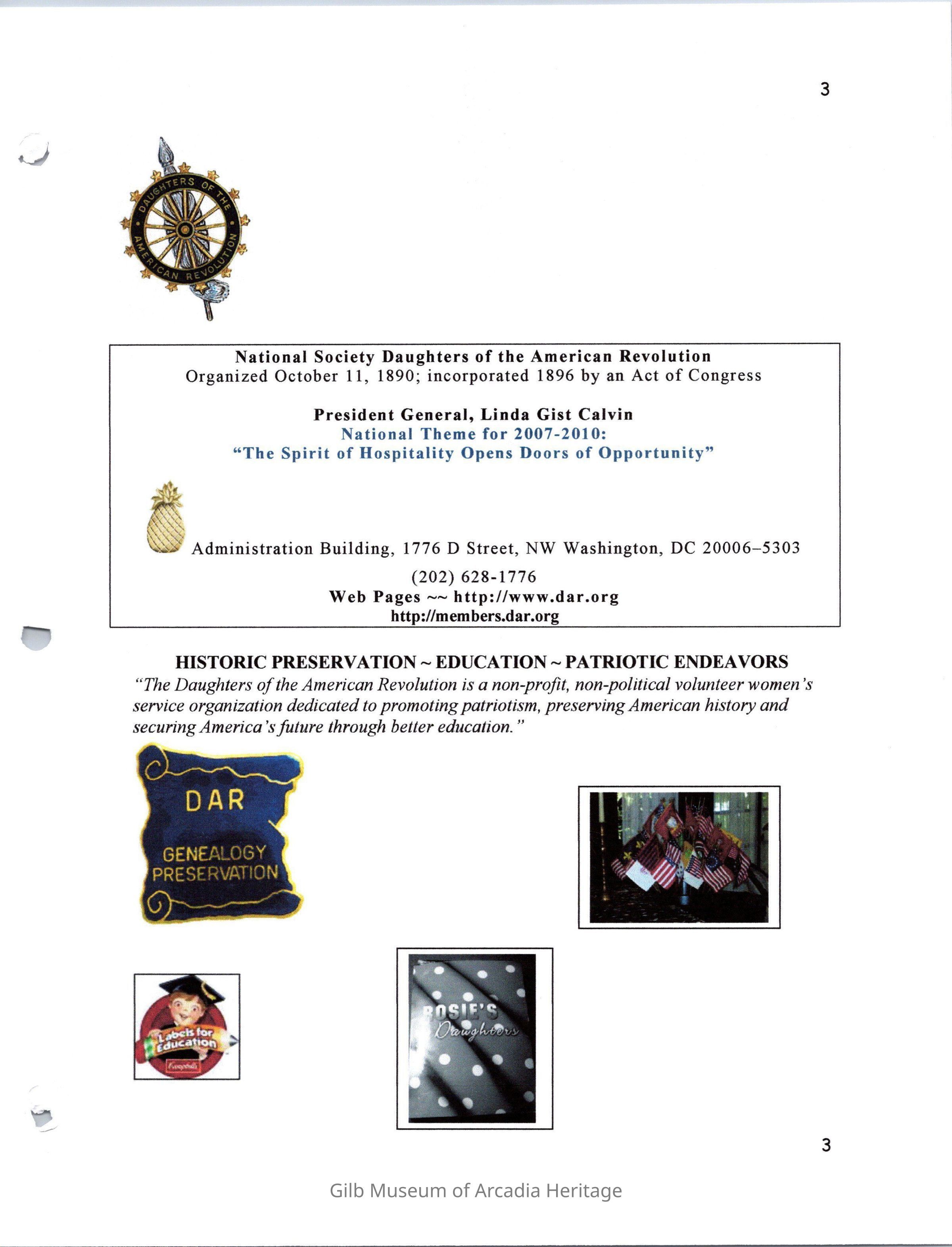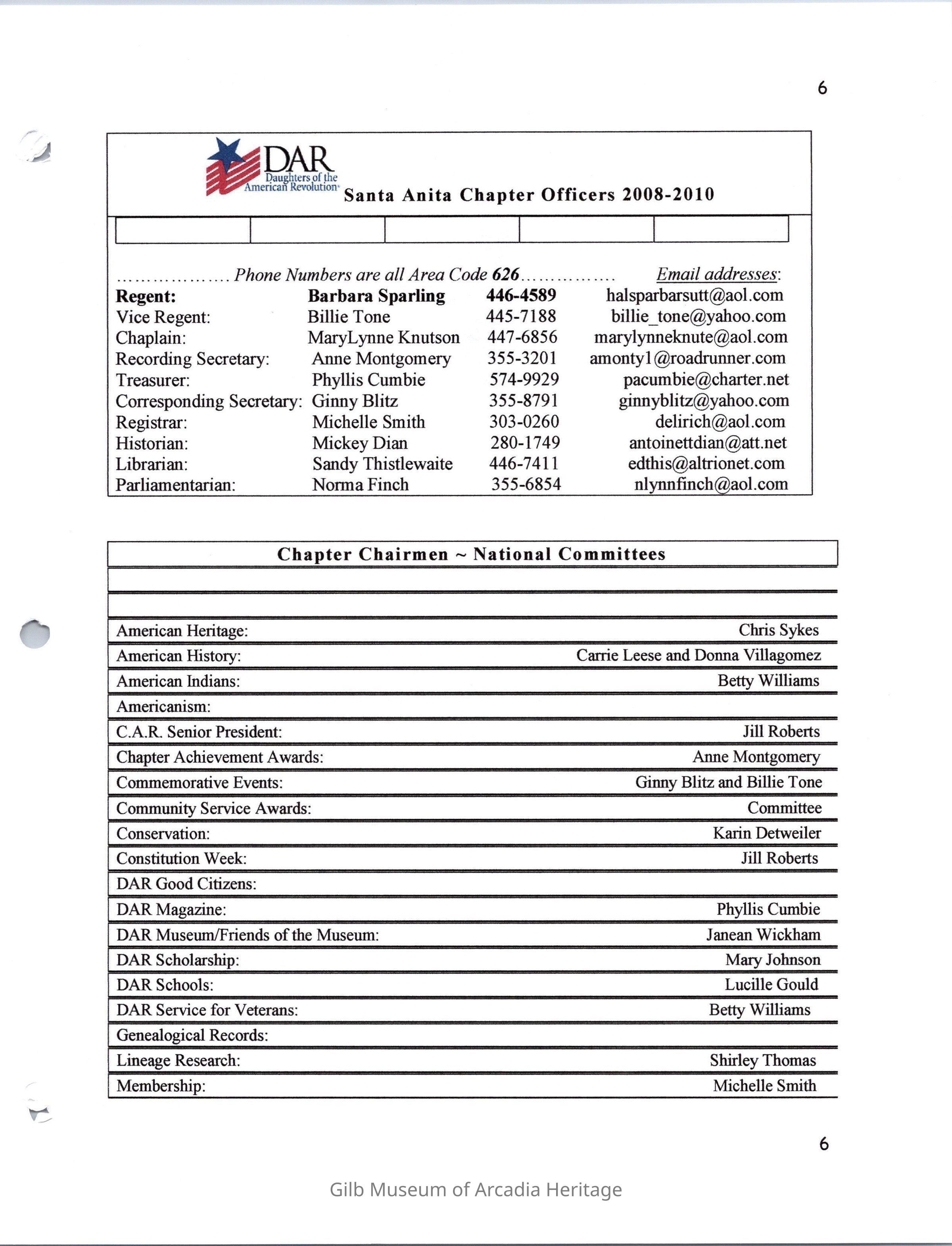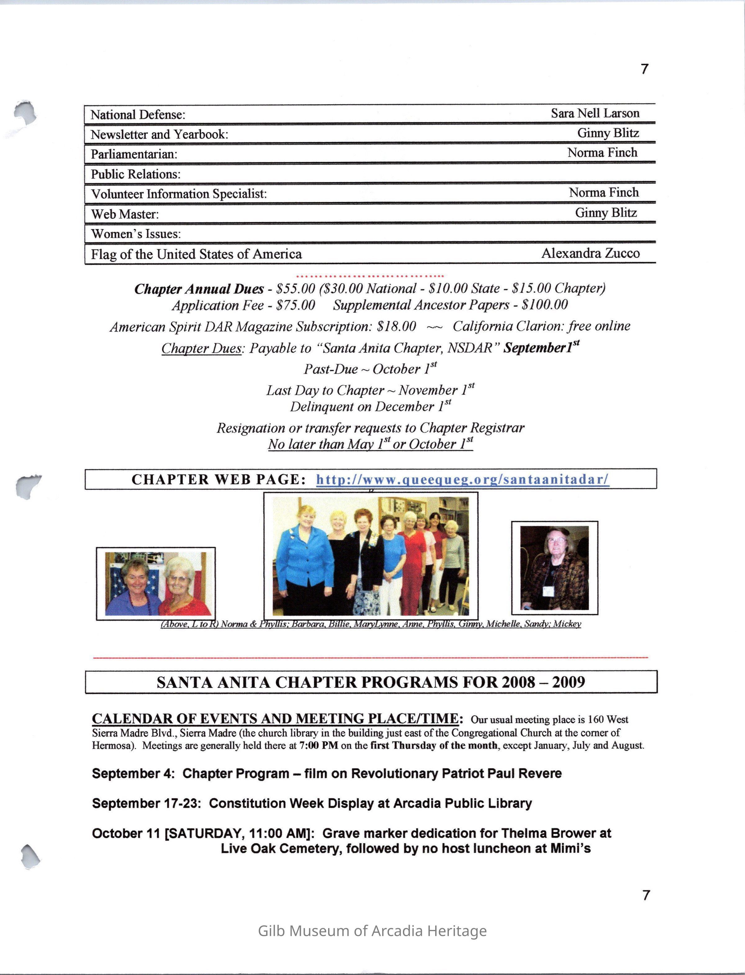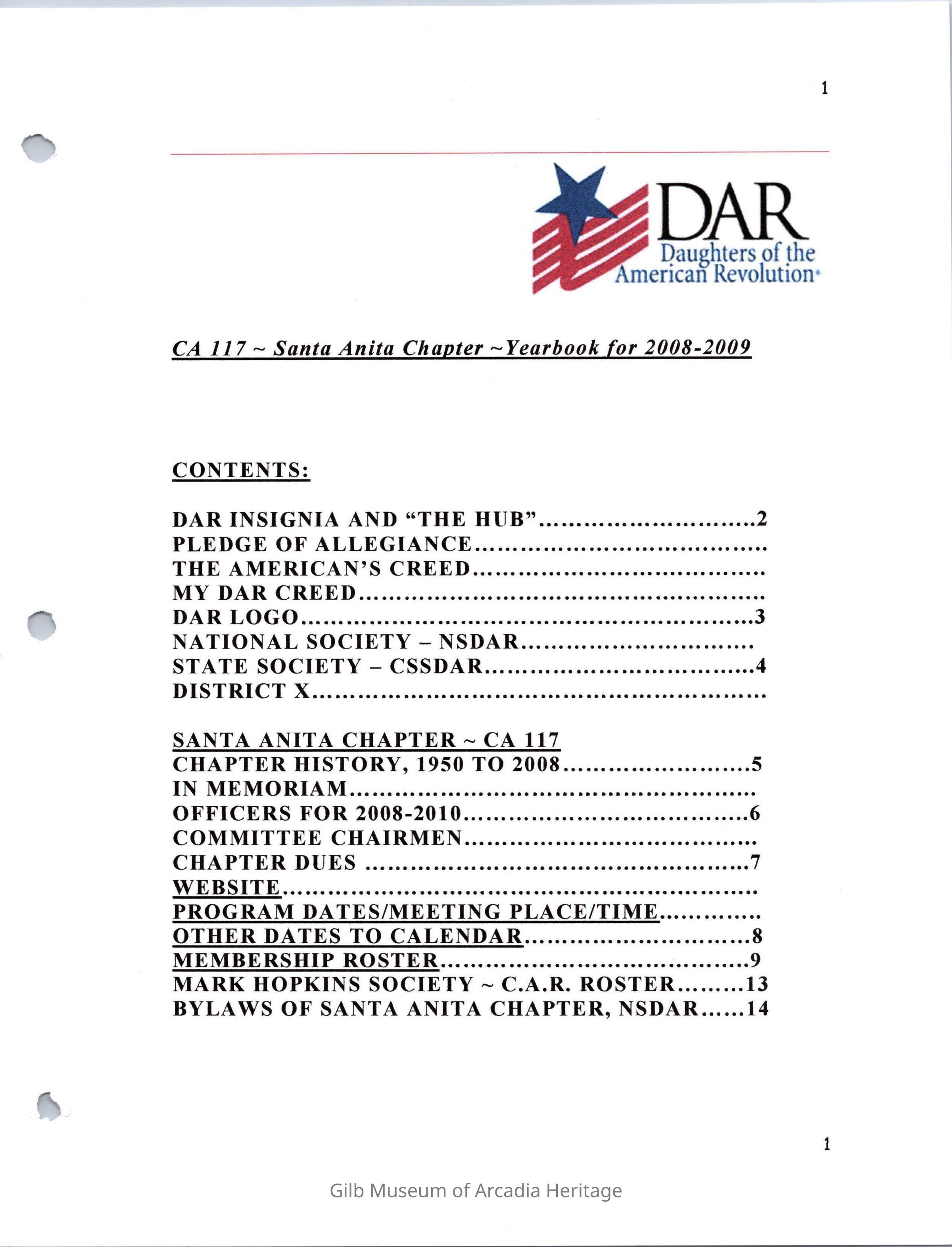 DAR Santa Anita Chapter Yearbook, 2008-2009Entry/Object ID