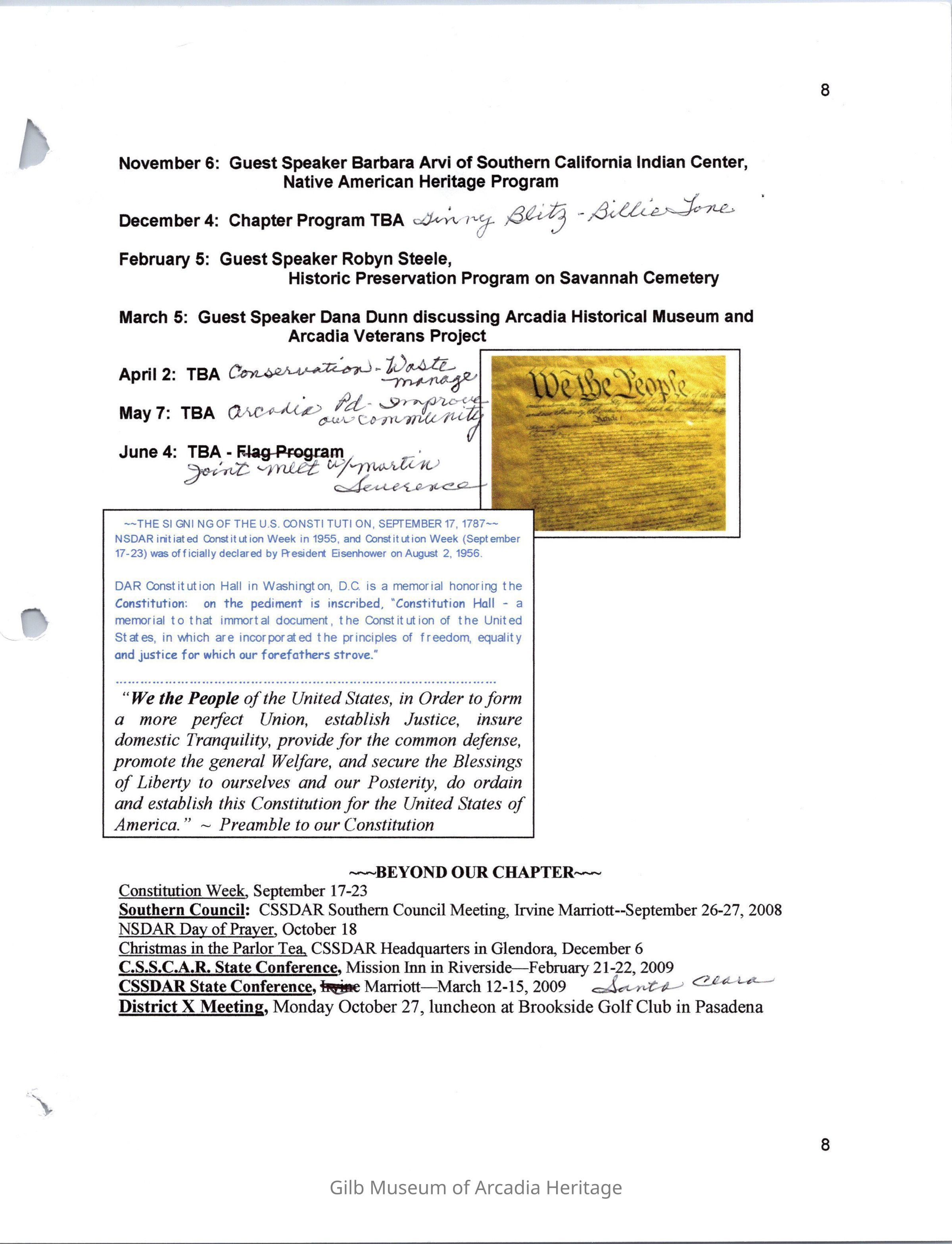 DAR Santa Anita Chapter Yearbook, 2008-2009Collection