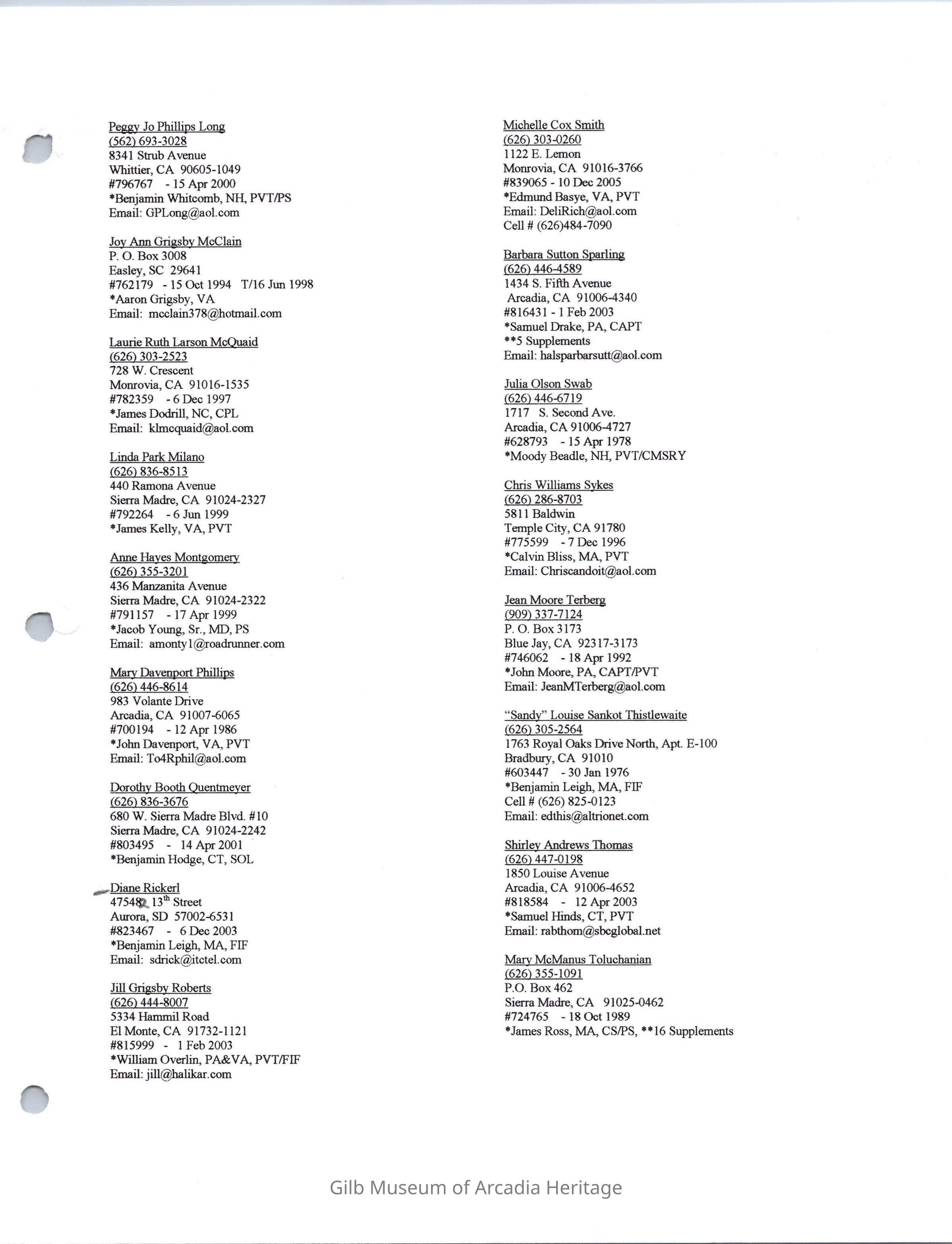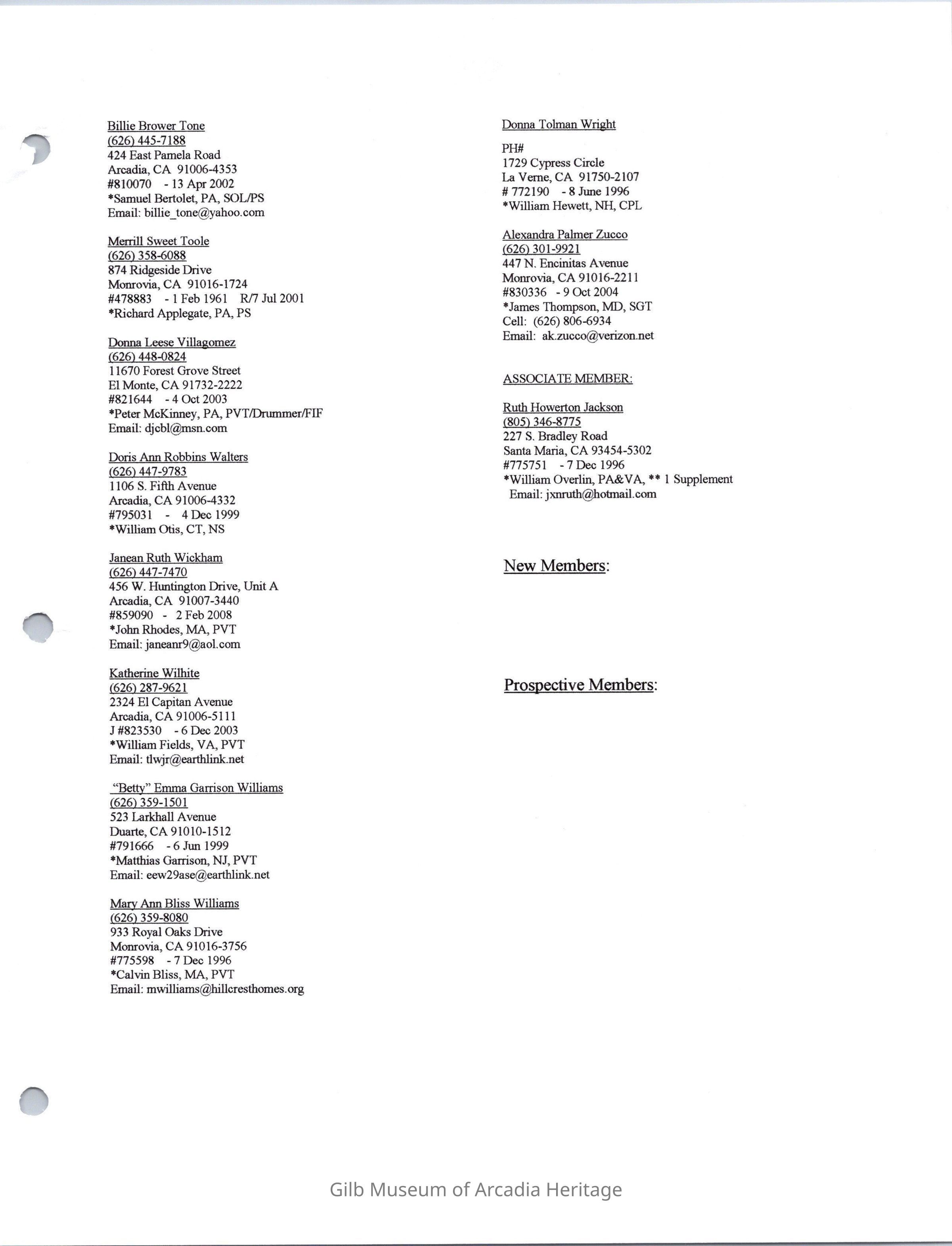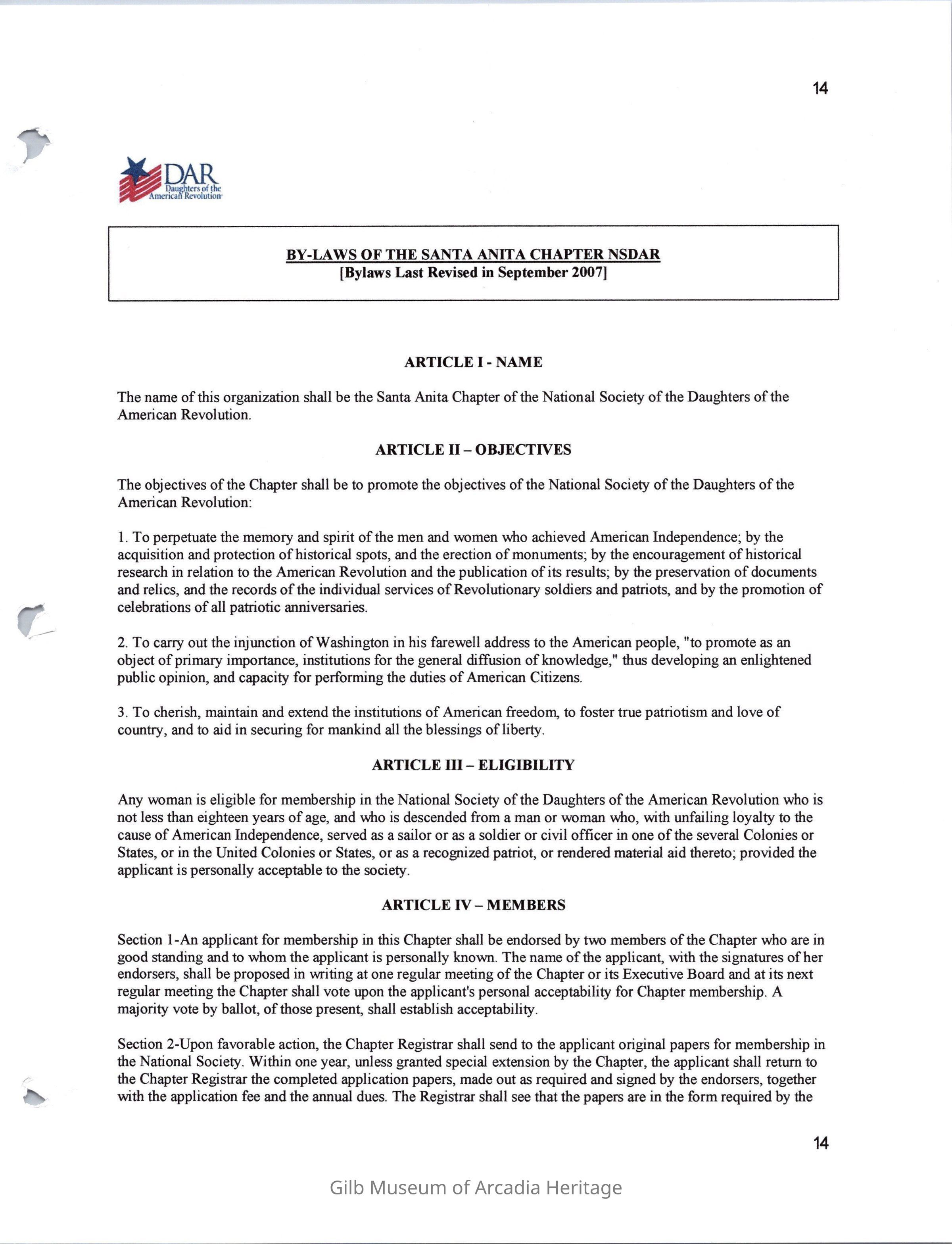 Daughters of American Revolution Santa Anita ChapterScope and Content
