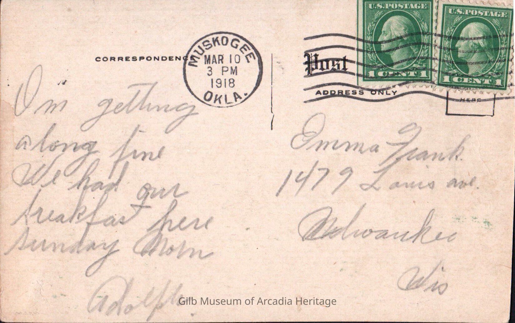 I'm getting along fine. We had our breakfast here sunday morn. Adolph.