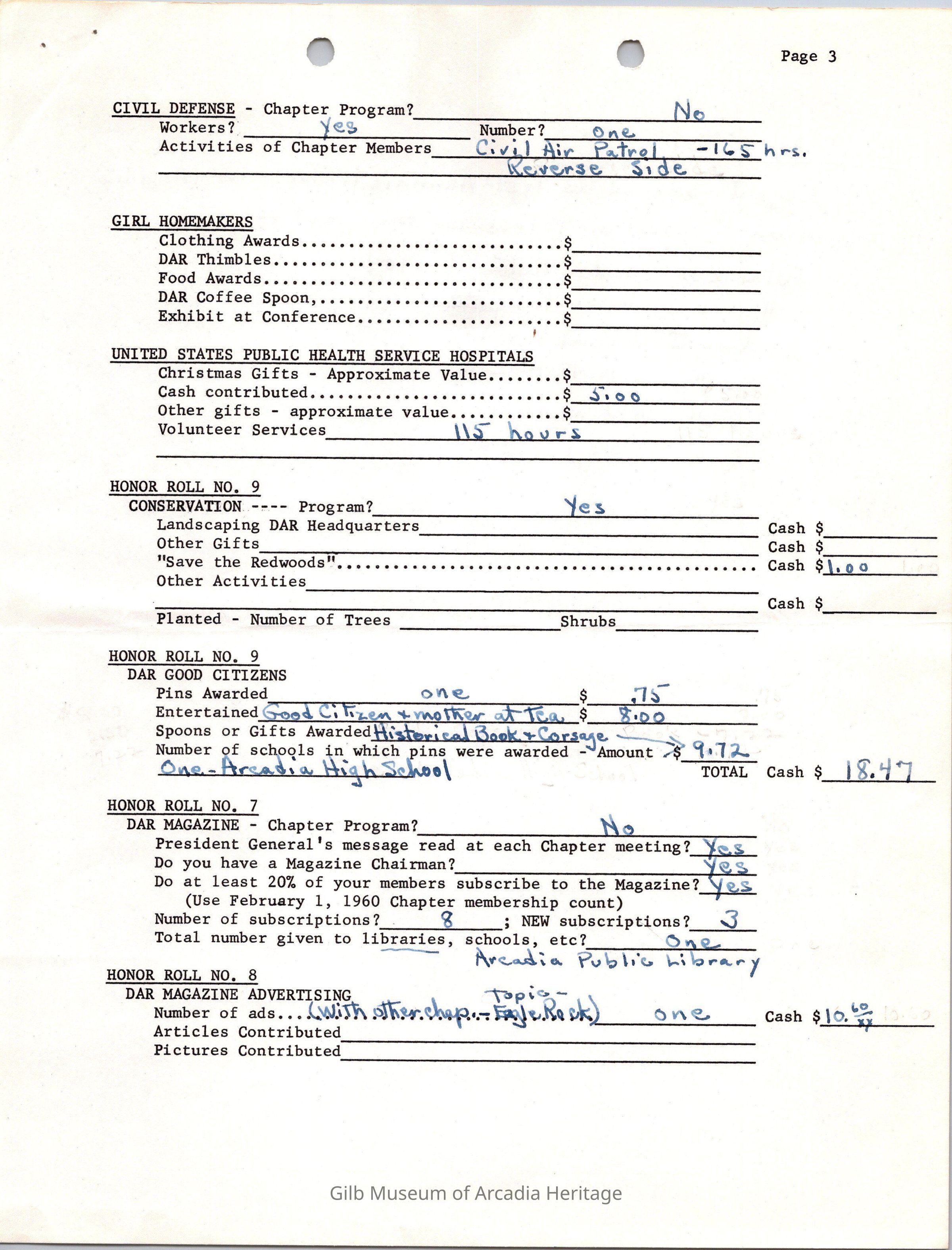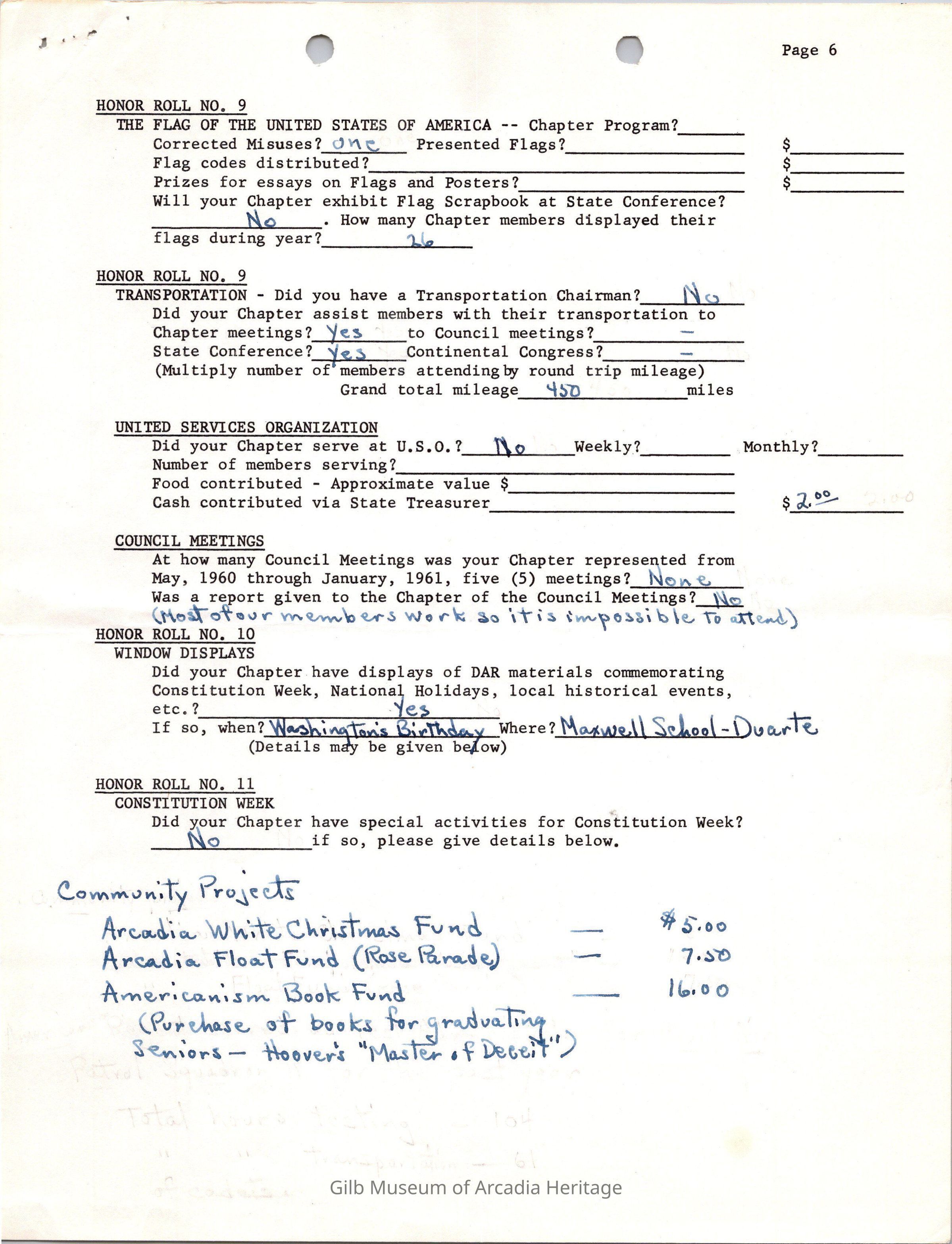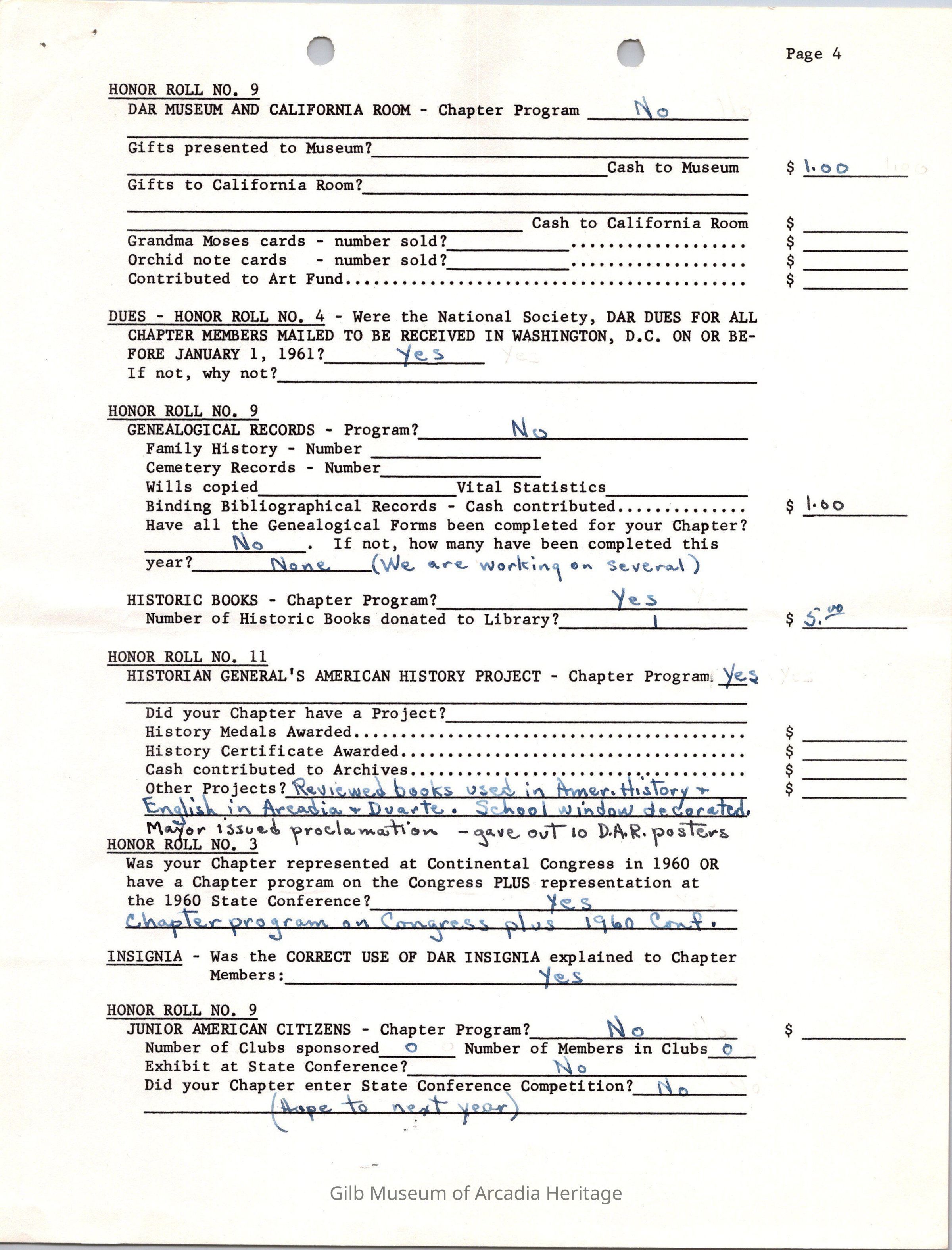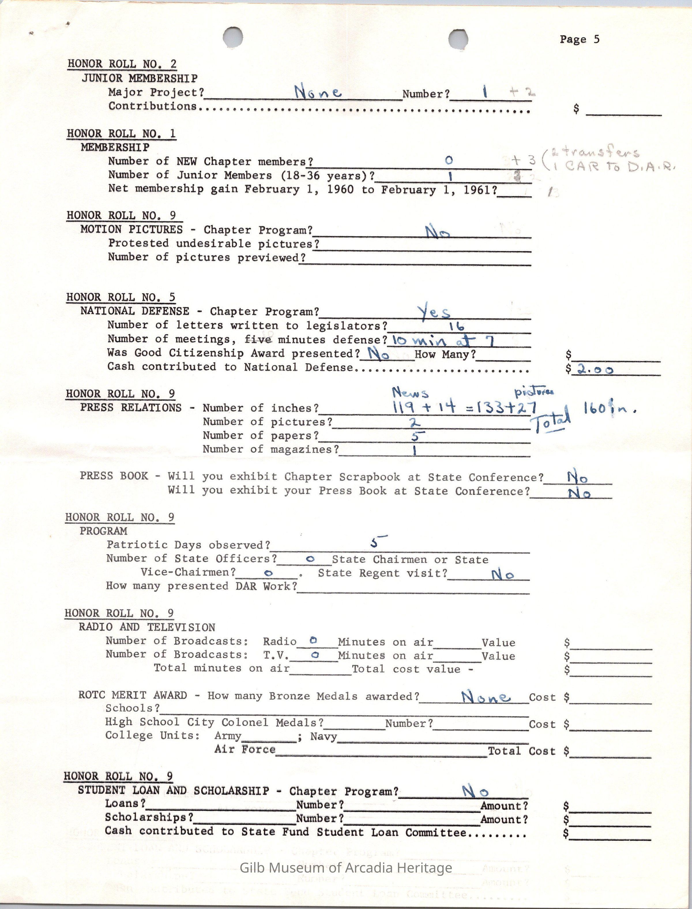 CSSDAR Chapter Regent's Annual Report for February 1,1960 to February 1,1961.Collection