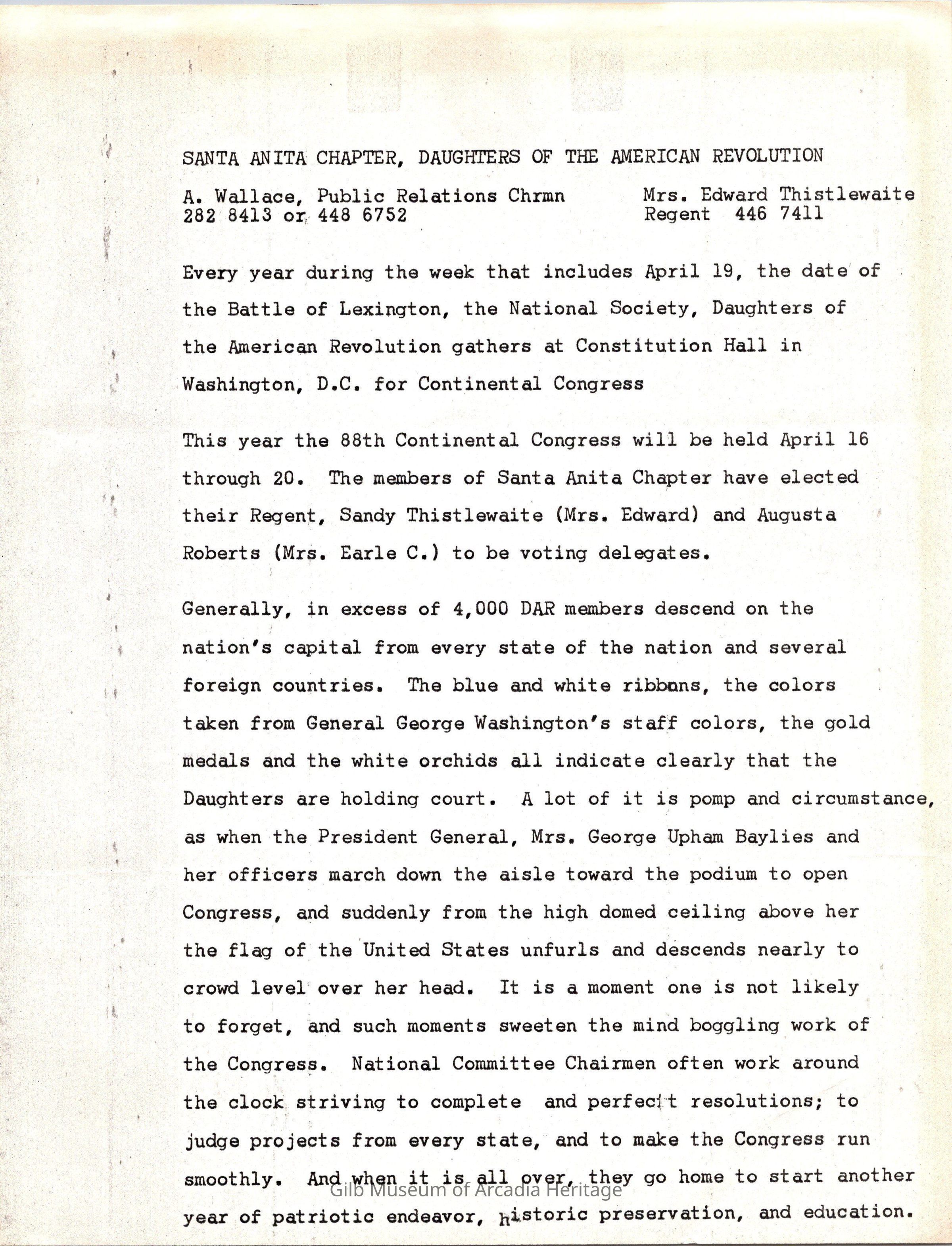 Two Copies of DAR Santa Anita Chapter Public Relations ReportEntry/Object ID