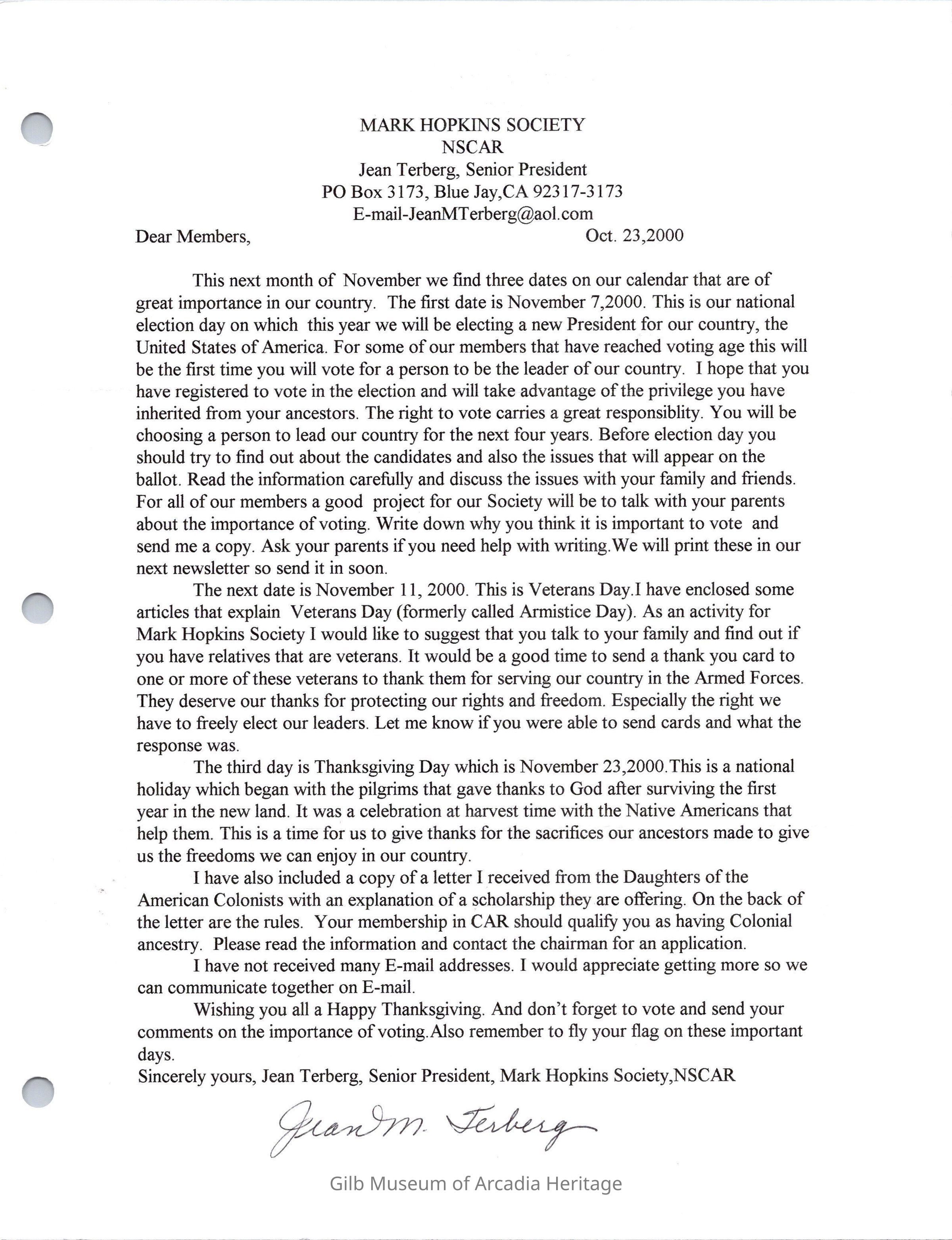 Mark Hopkins Society NSCAR Newsletter, Oct. 23, 2000.Collection