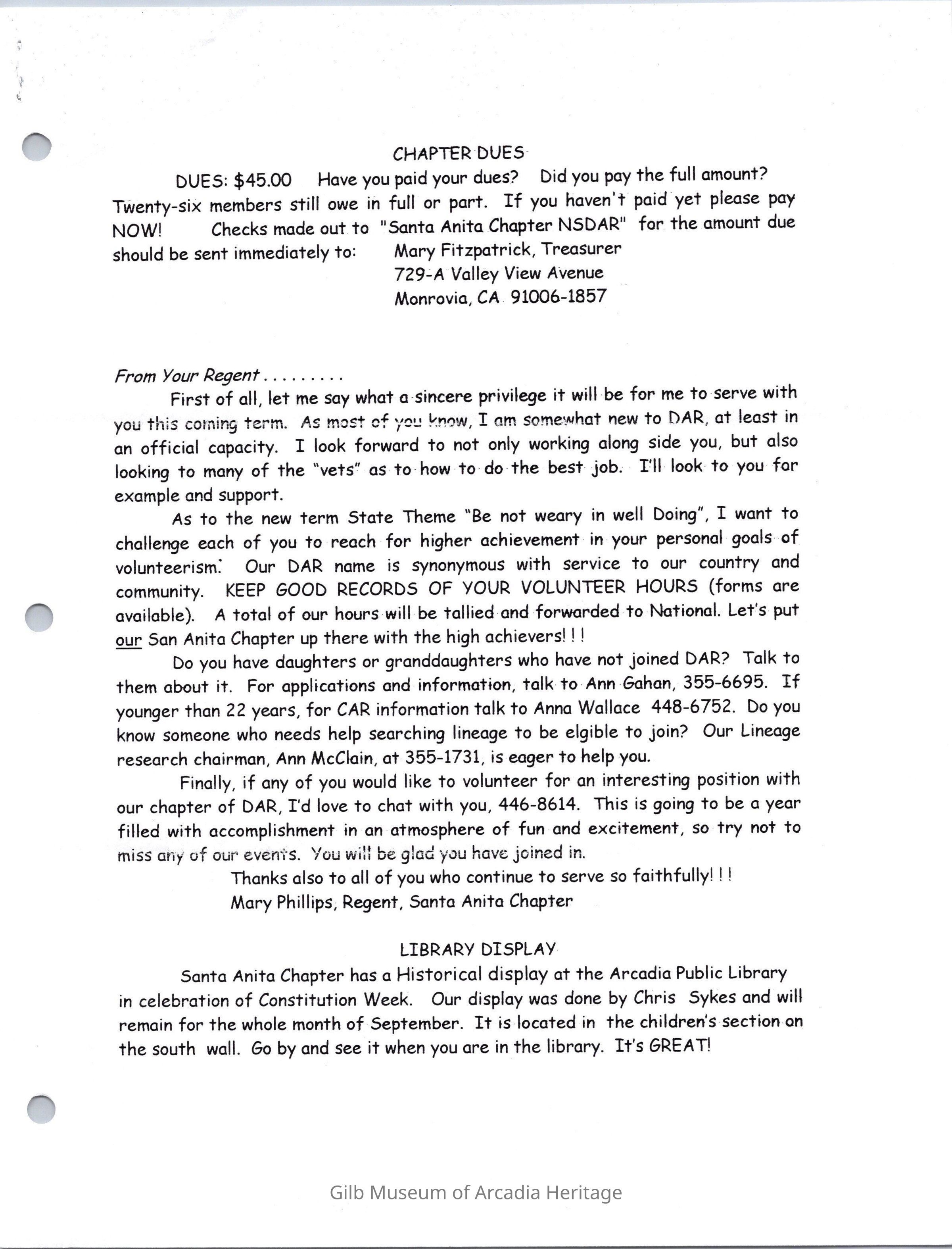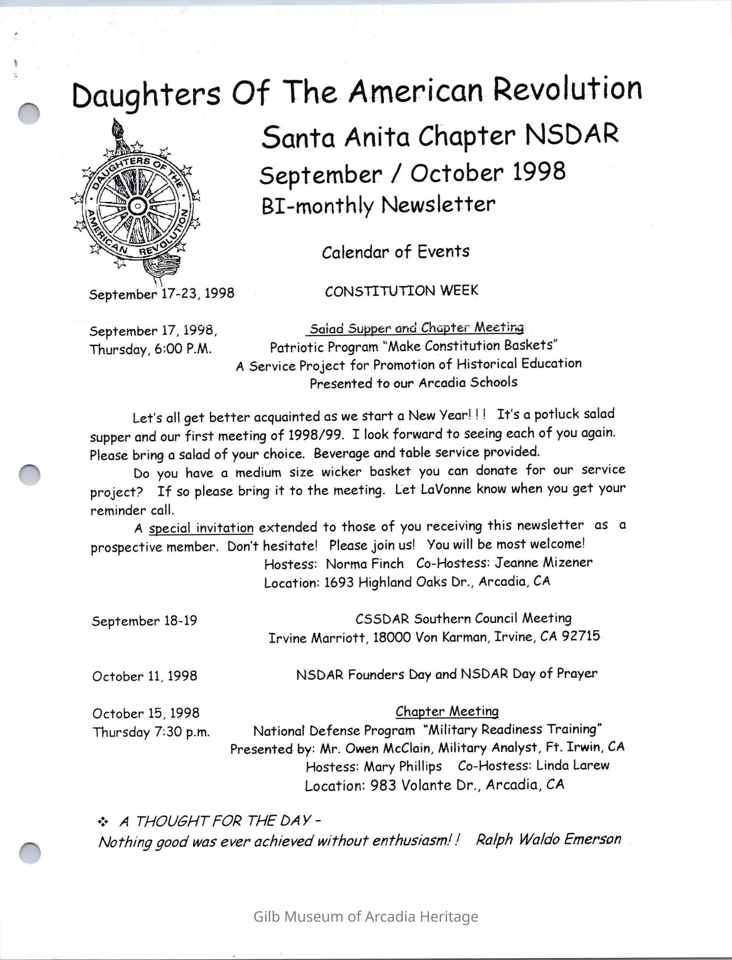 DAR: Santa Anita Chapter NSDAR September/October 1998 NewsletterCollection
