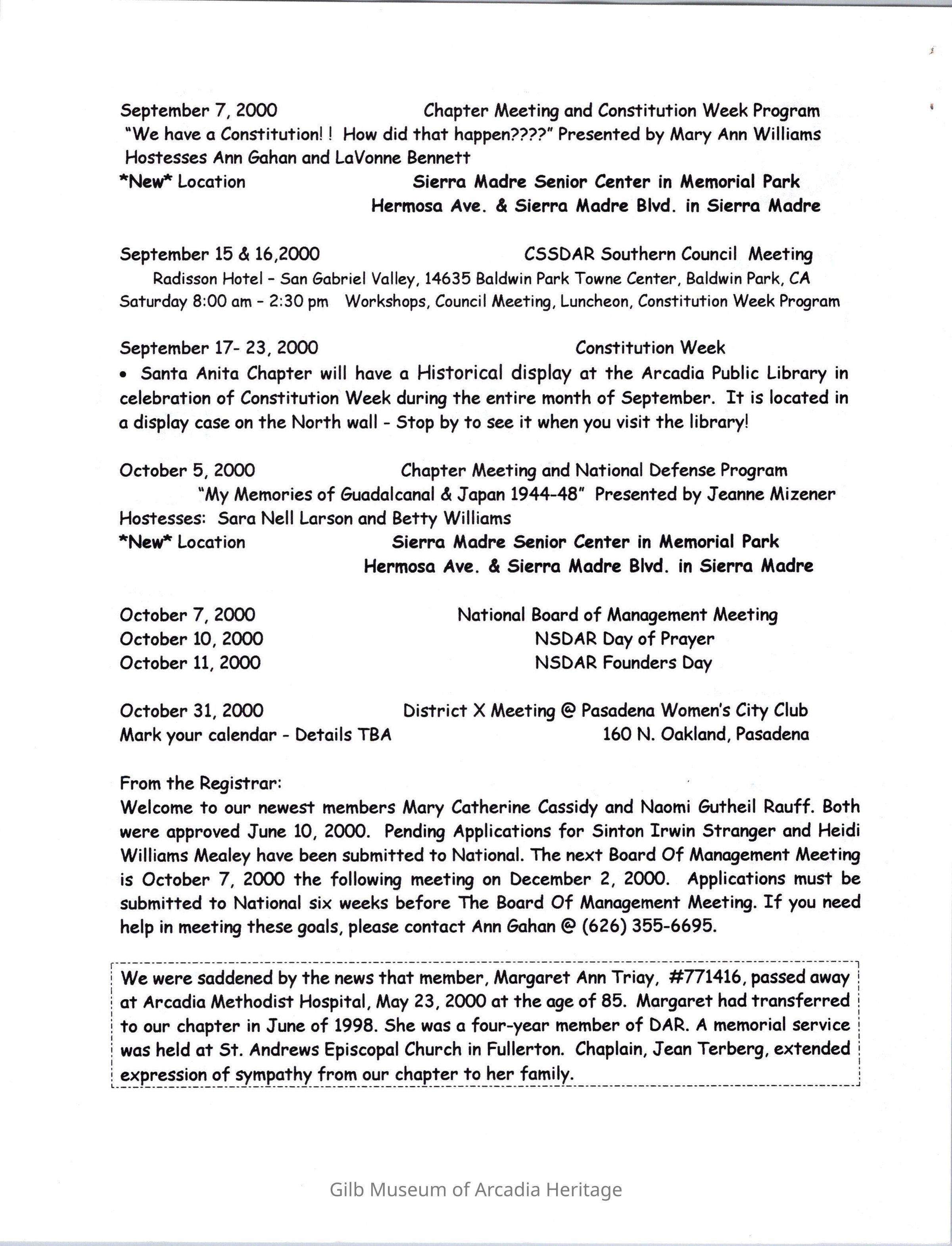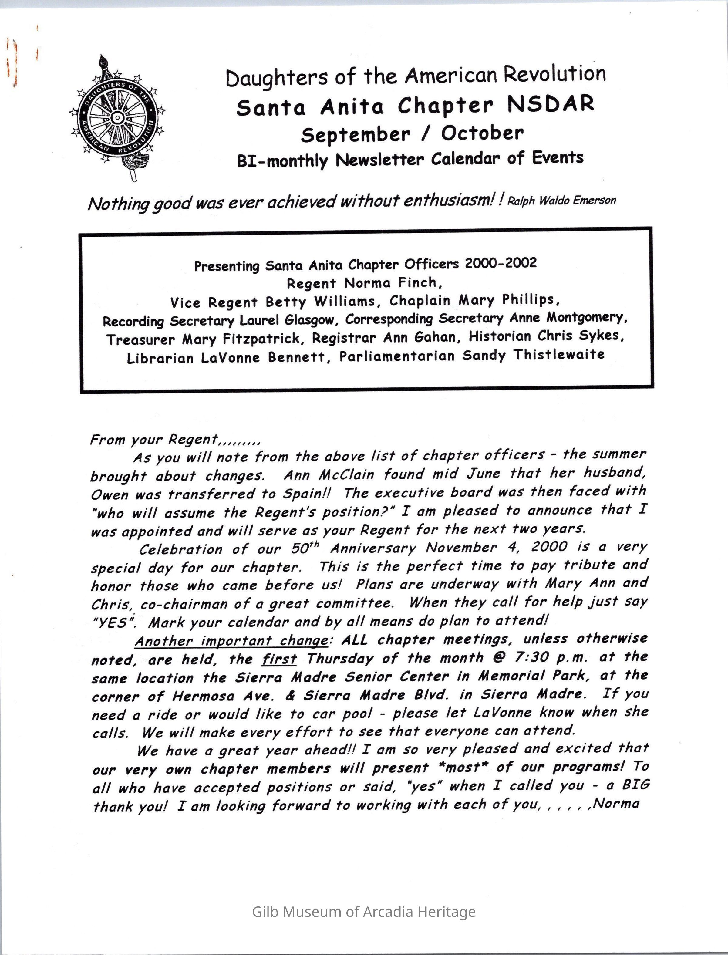DAR: Santa Anita Chapter NSDAR September/October 2002 Newsletter