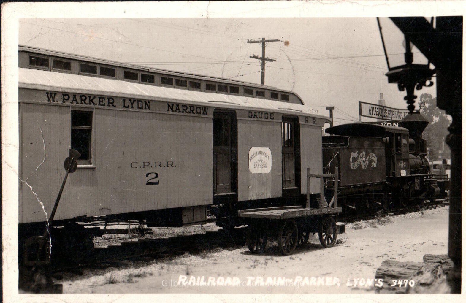 A photo postcard of Parker Lyon's railroad train at the Pony Express Museum.