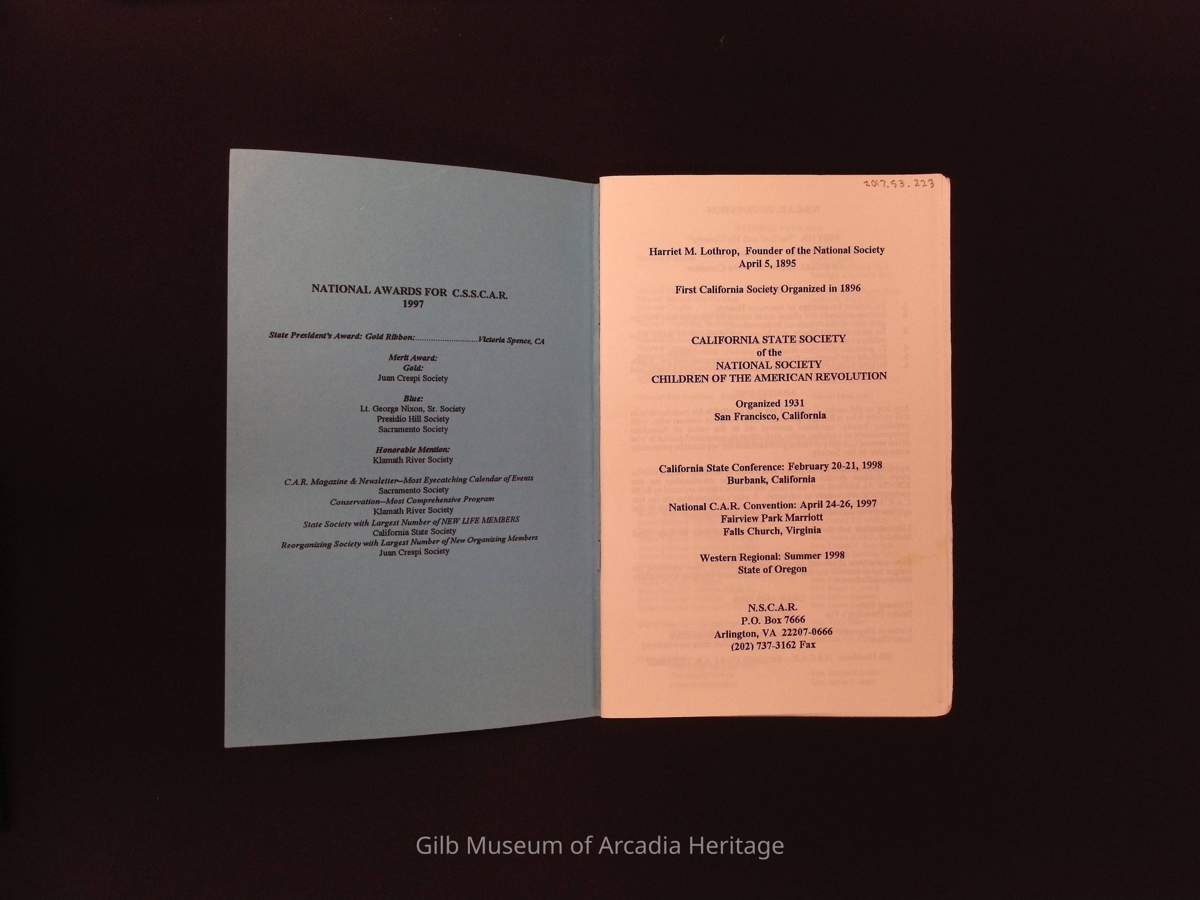 California State Society of the National Society Children of the American Revolution, 1997-1998.