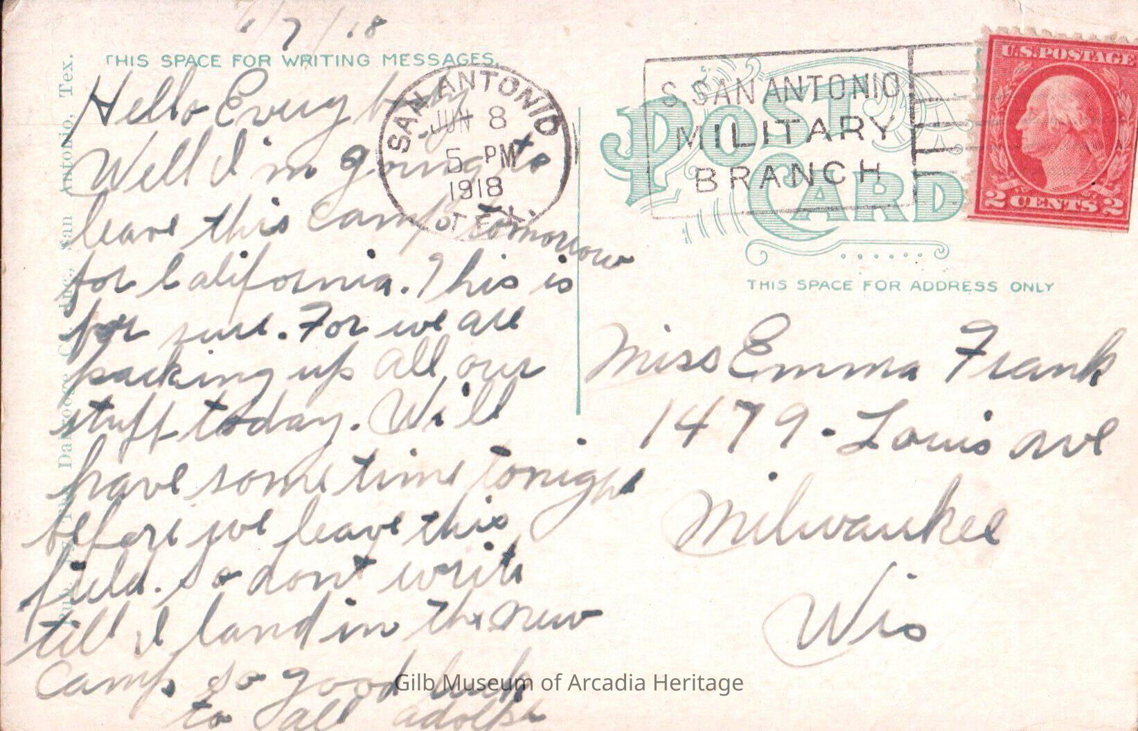 Well I'm going to leave this camp tomorrow for California. This is for sure. For we are packing up all our stuff today. Will have some time tonight before we leave this field. don't write till I land in the new camp. So good luck to all.