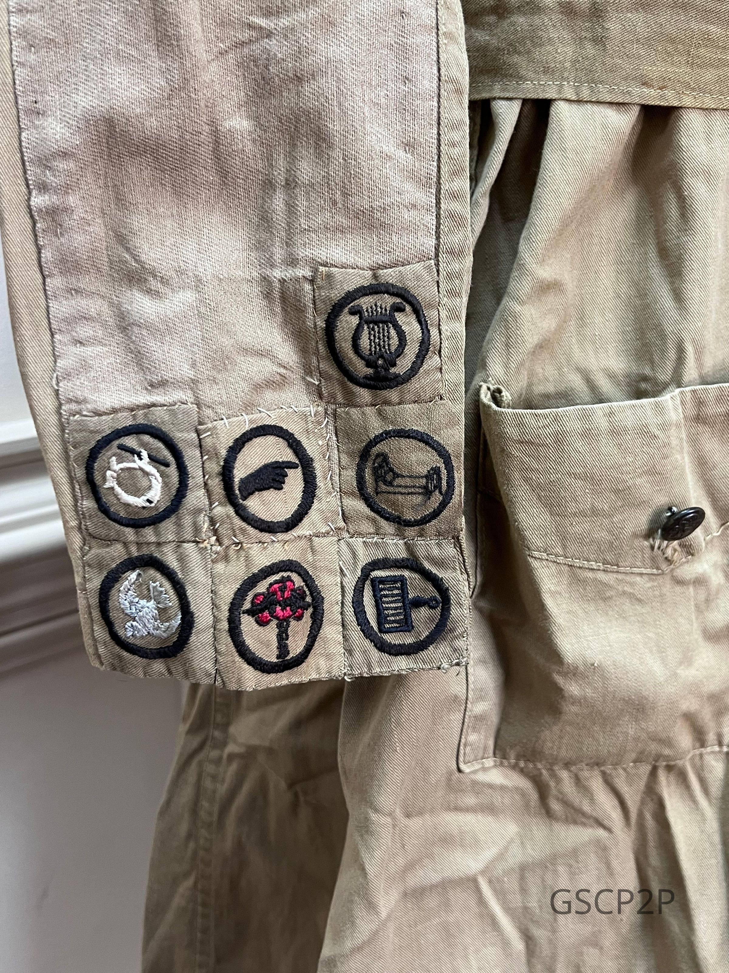 The official national outfitter of the Girl Scouts of America was the Sigmund Eisner Company in Red Bank, New Jersey. Girls could also purchase ready to sew uniform kits, or the official khaki fabric, sewing patterns and buttons (which were loaned with a deposit of 25 cents rather than purchased.) Proficiency badges were 15 cents each on the 1919 Girl Scout price list.Made/Created