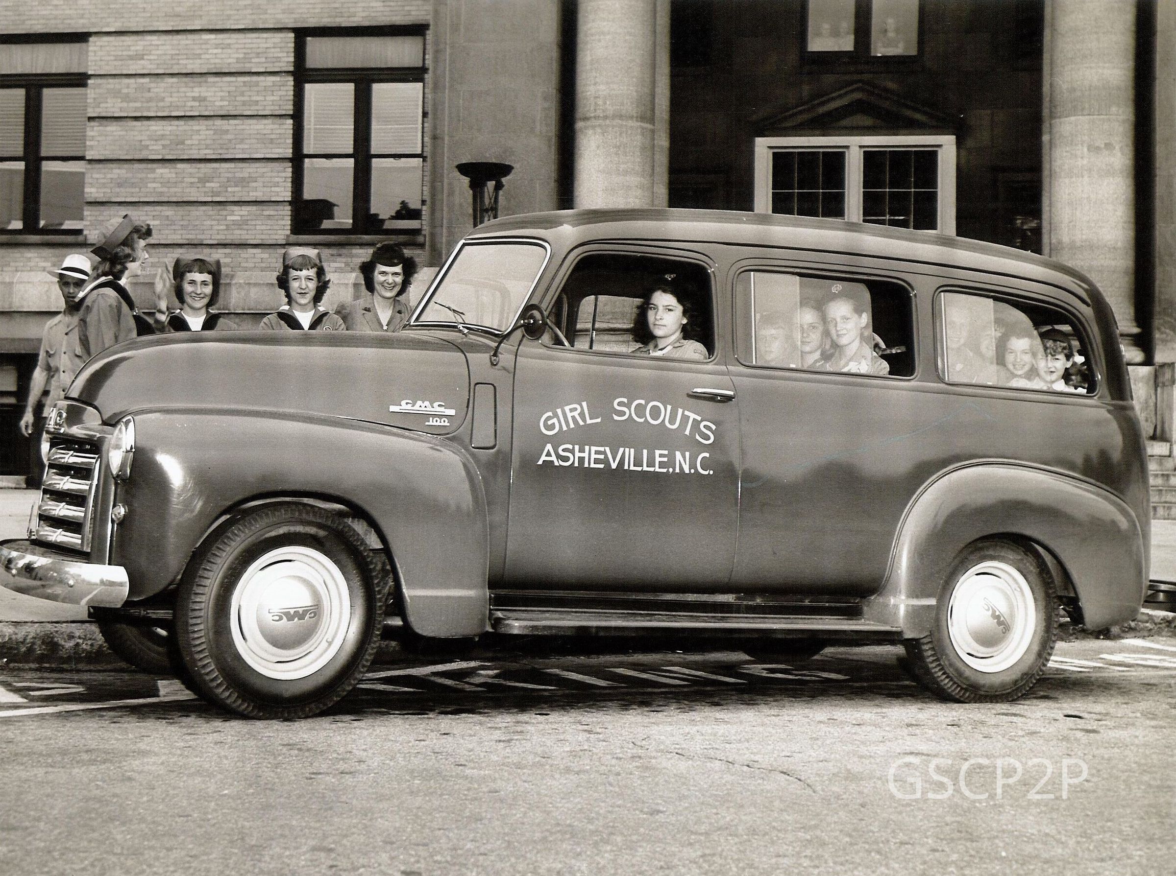 Girl Scouts in Green and Yellow 1948 GMC Suburban Carryall