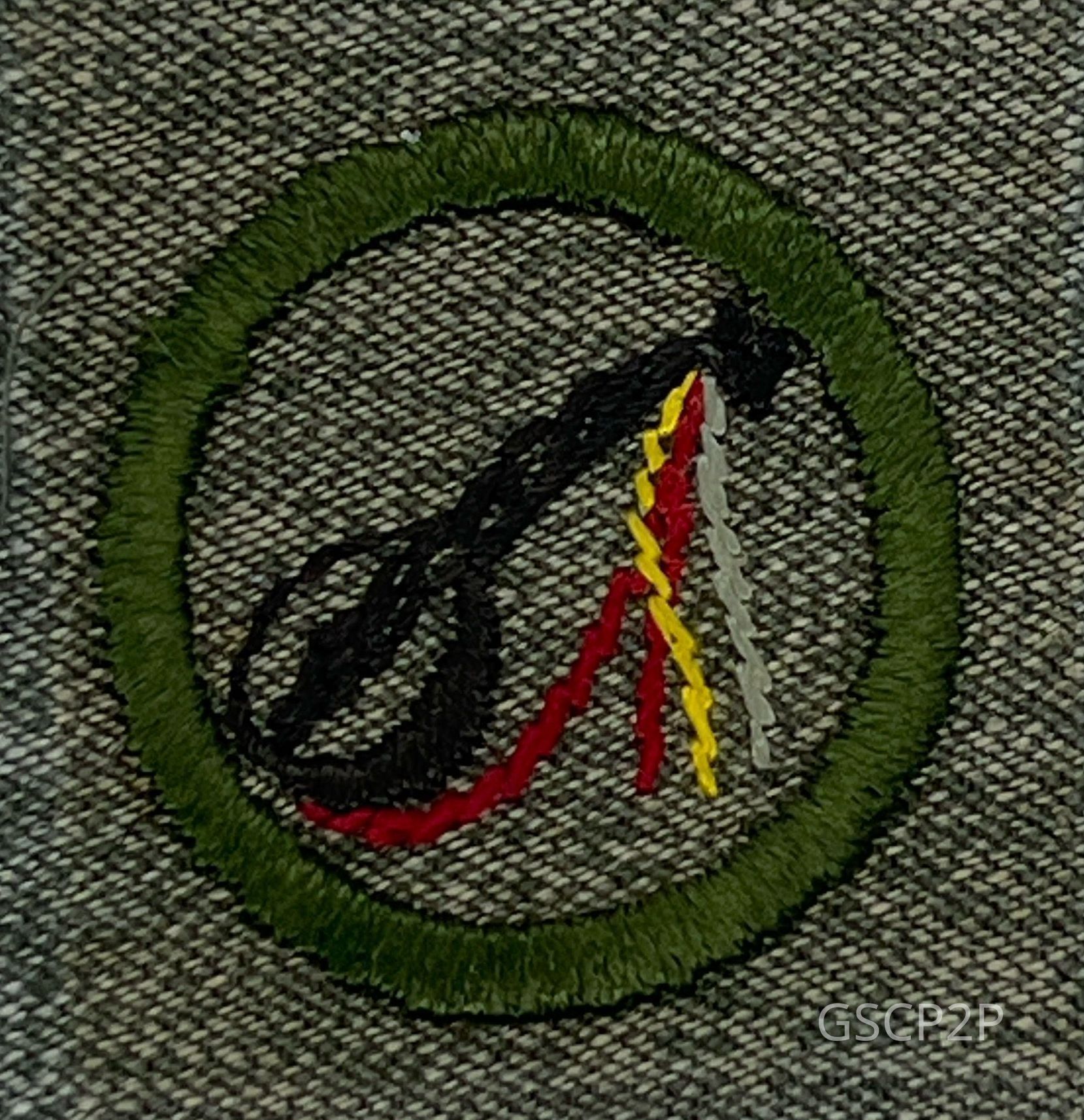 Gray Green with Green, Gray, Black, Red and Yellow Embroidery