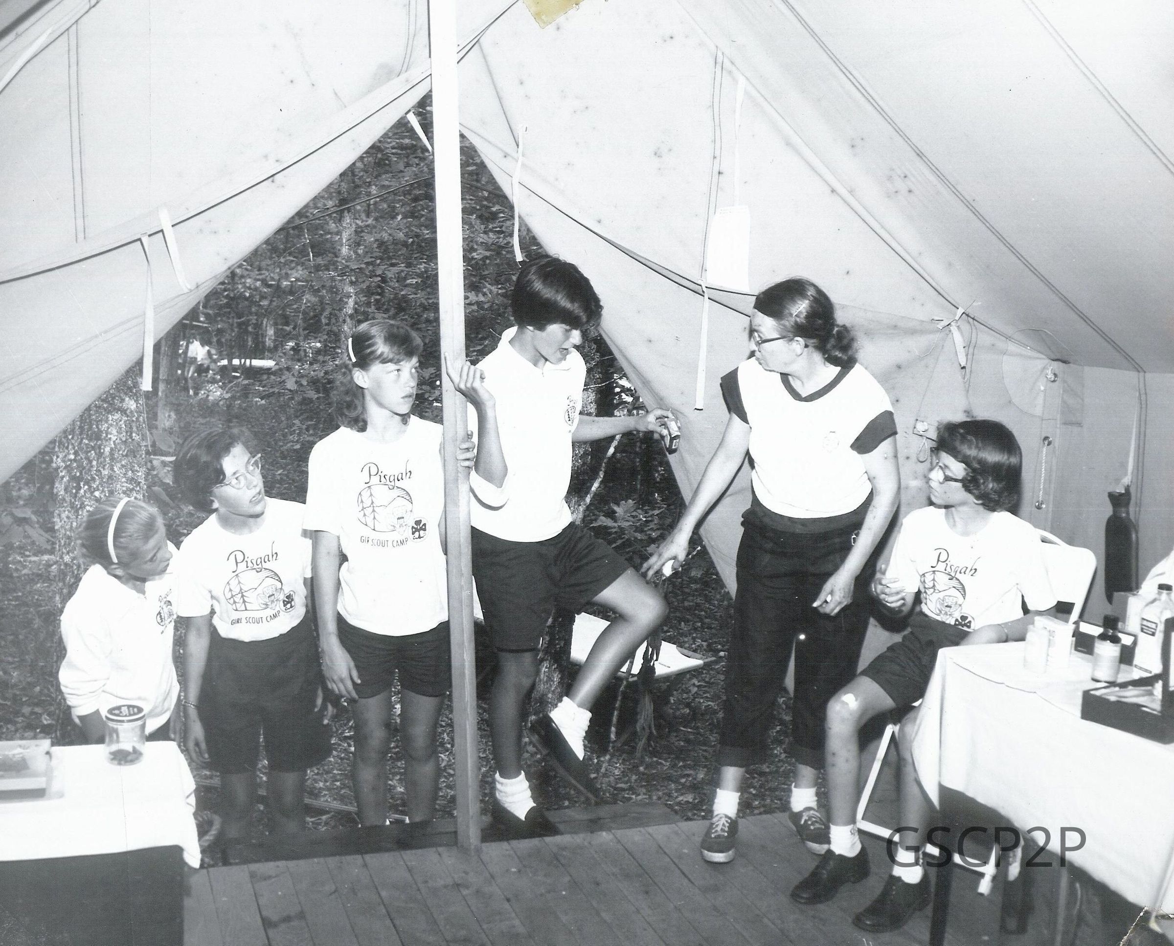 Six girls in a tent