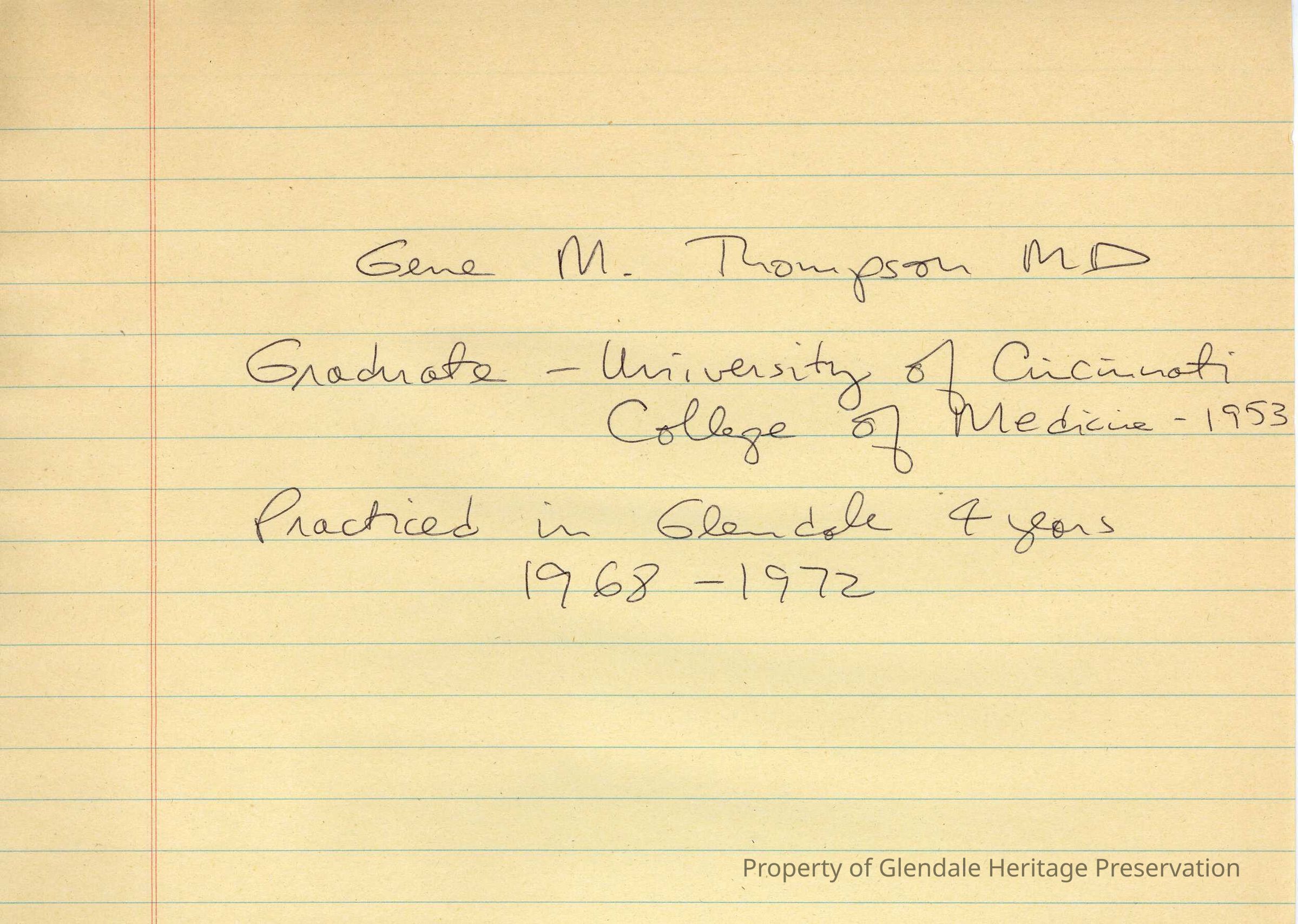 Timeline of Some of the Doctors in Glendale 1934- prepared by Dr. Thomas Todd