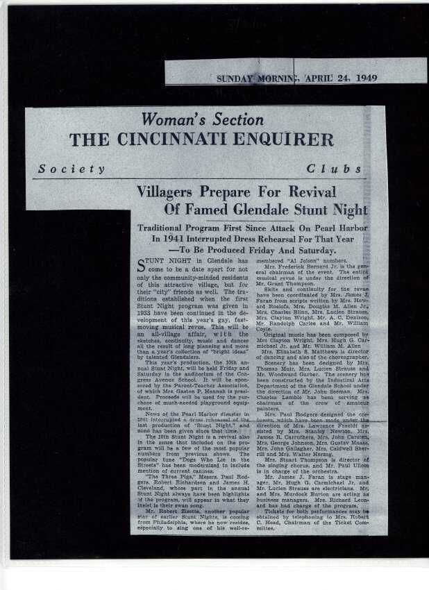 Villagers Prepare for Revival of Famed Glendale Stunt Night. Traditional Program Since First Attack on Pearl Harbor.Lexicon