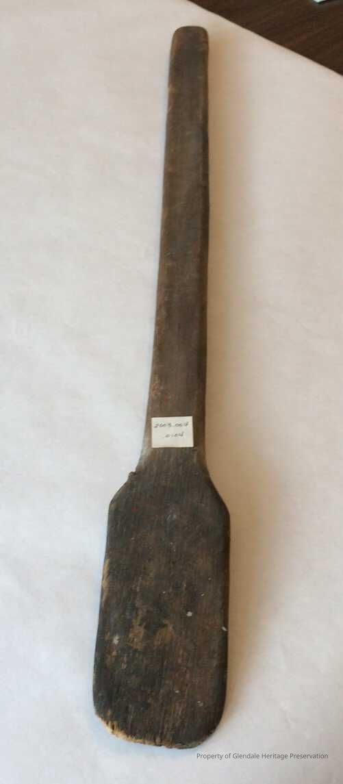 Wooden stiring paddle - from Van Cleve House, 745 Greenville Ave.