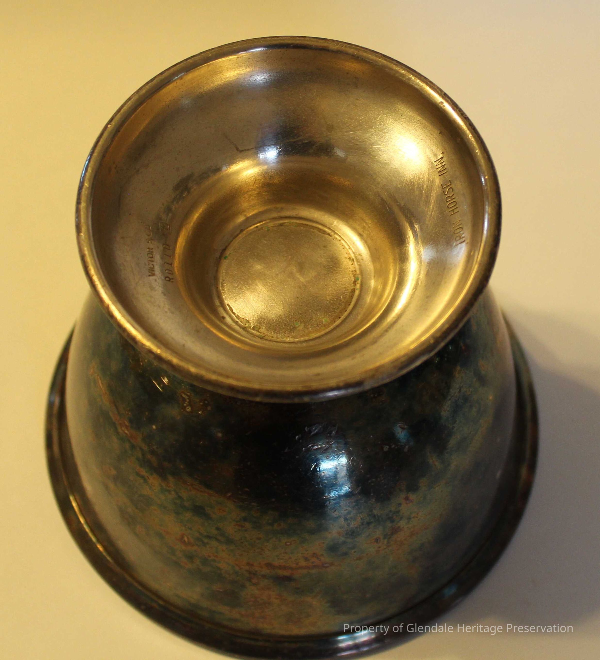 Shrimp Bowl from the original Iron Horse Inn. Imprint on the bottom Victor S Co. R0110 and stamped Iron Horse Inn. Donated by Howard Constable and Sandy and Pete Chronis, 2006.