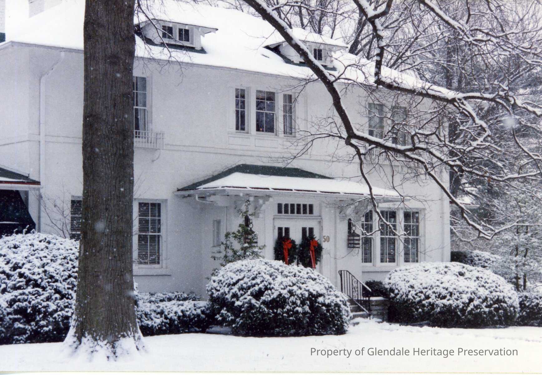 The house at 50 Wood Avenue is a Contributing Structure probably built in 1911. According to Stephen Burton, in an interview with Doreen Gove in 1968, the current structure was built for J.M. Sears in 1911 on the site of an old farmhouse which had burned. This farmhouse may be the structure that appears on the 1869 Titus map, Additions were added along with other renovations in 1926 and 1968.