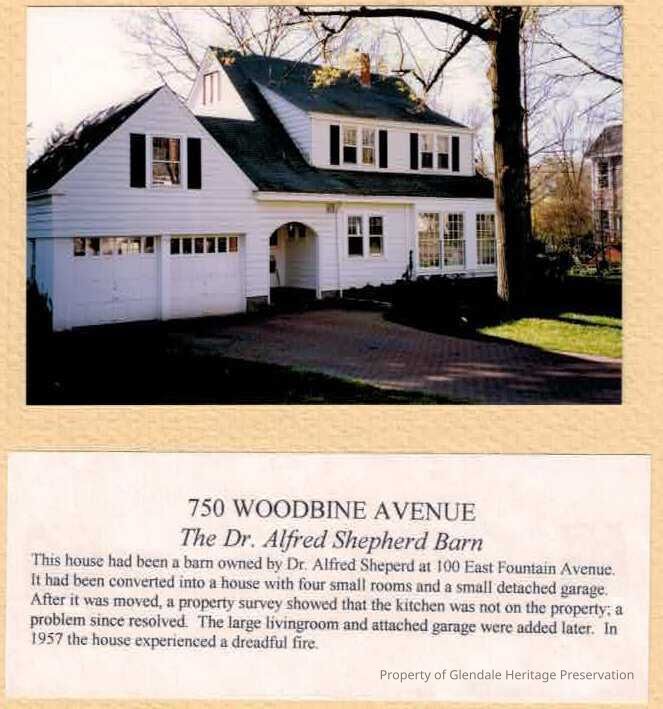 The house, located at 750 Woodbine Avenue, is a Contributing Structure. It was originally a barn owned by Dr. Alfred Shepherd at 100 East Fountain Avenue. It was converted into a house with four small rooms. Later a large living room and attached garage were added. In 1957 there was a fire.Lexicon