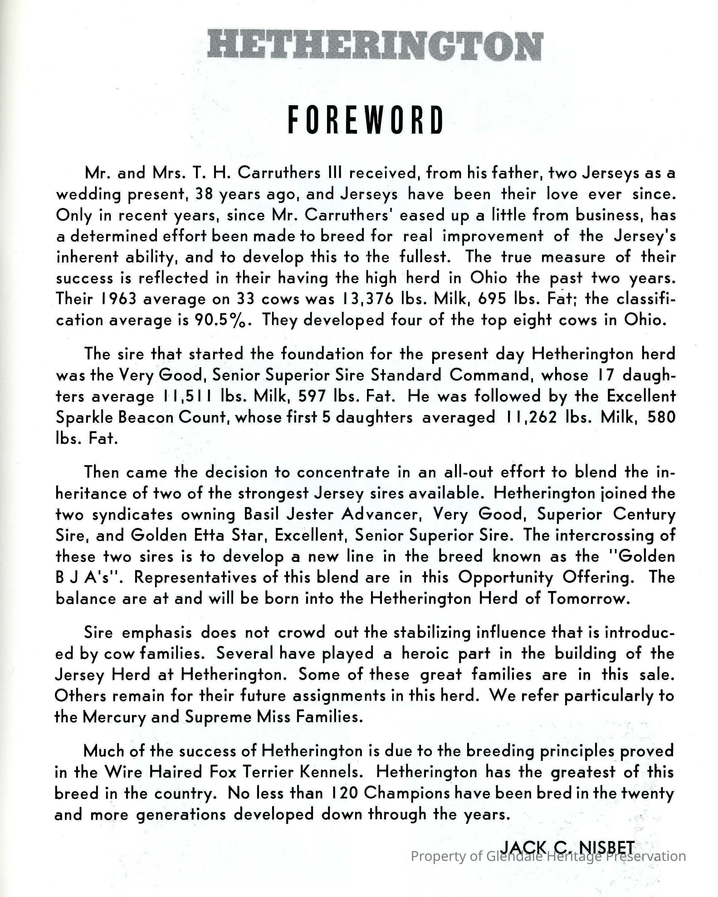 Booklet advertising a Hetherington Farm cow saleEntry/Object ID