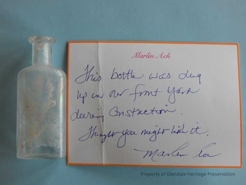 Glass pharmacy bottle labeled E.A. Sayre Apothecary, Glendale Ohio Found in the donor's front yard - 45 East Fountain Avenue