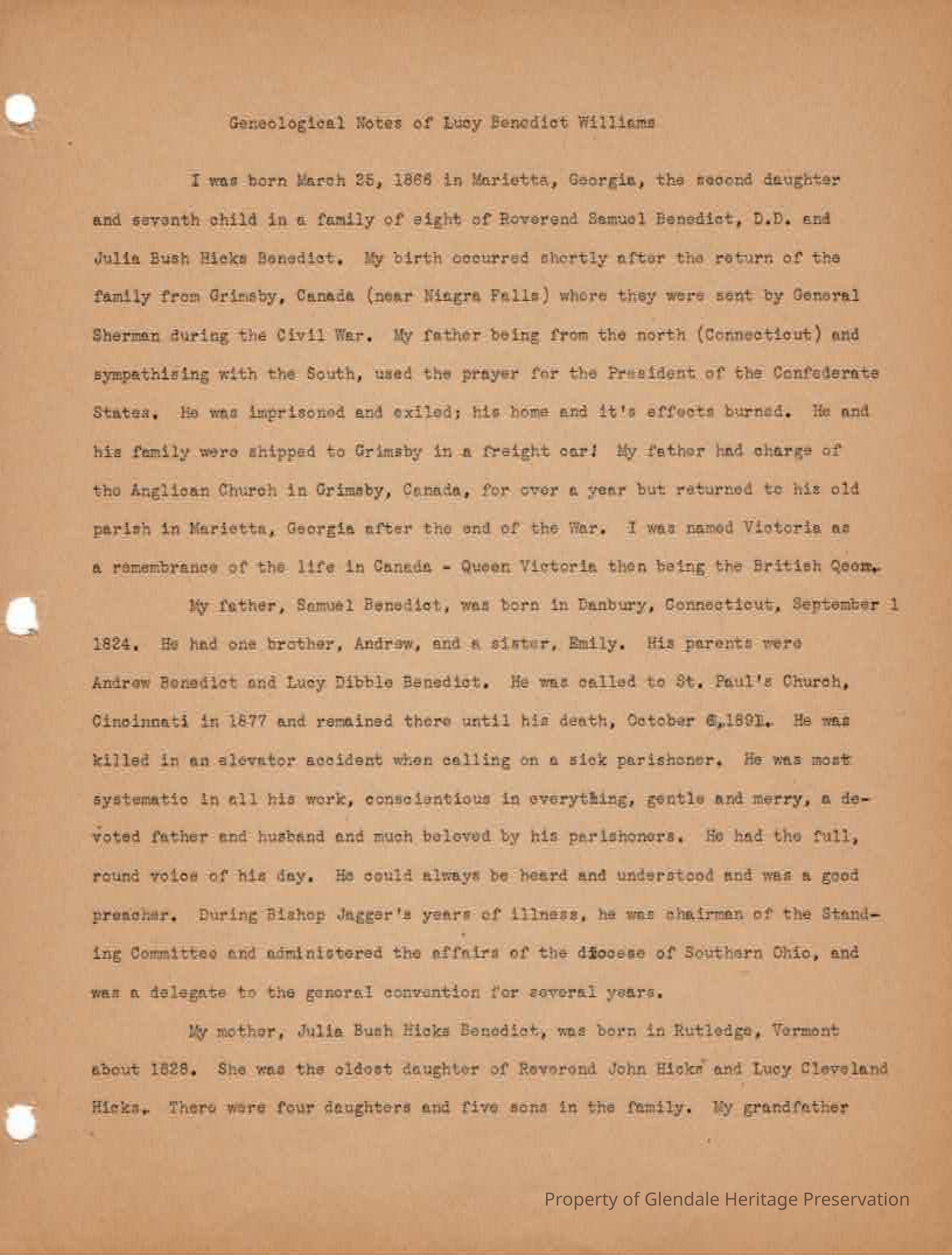Geneological Notes of Lucy Benedict WilliamsEntry/Object ID