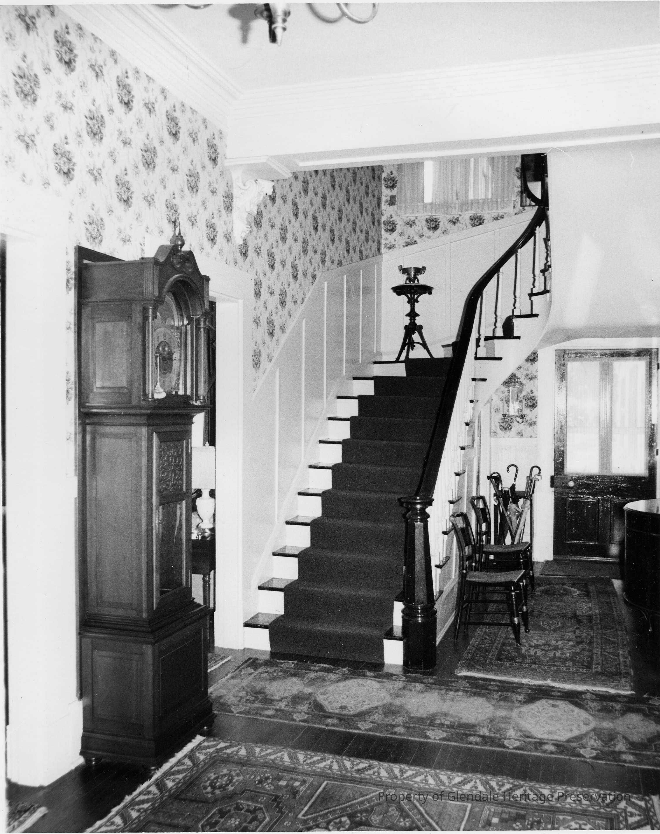Anthony Harkness, a member of the Glendale Association and second mayor of the village, purchased a large tract of land which extended from Laurel to Forest Avenue. His American Farmhouse style house, started in 1852, was first occupied in the spring of the following year.
