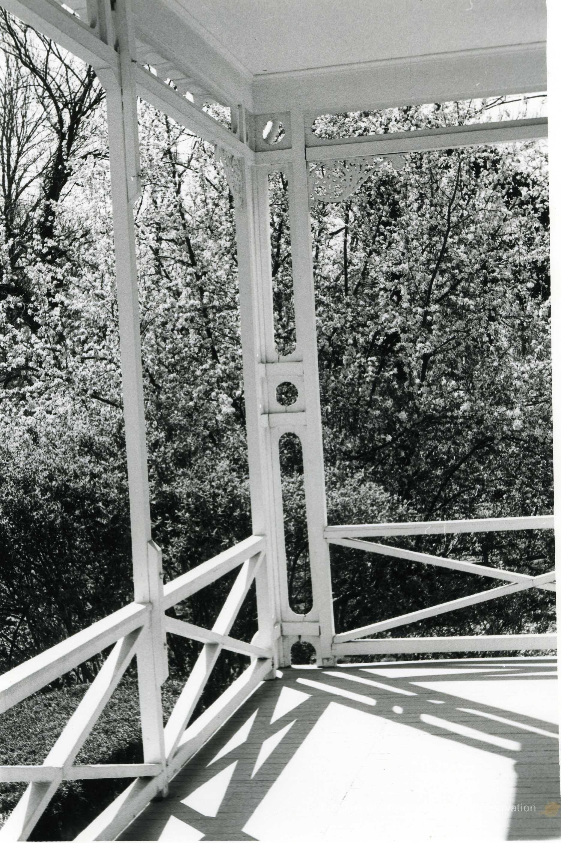 A roof over the second floor porch was added for protection from the sun. Mr. Harkness allowed only one window per room. As he said, "There was not any use of more because the women just used them to put curtains over". His grandaughter had more windows added and the 2nd floor porch roof was removed later on.