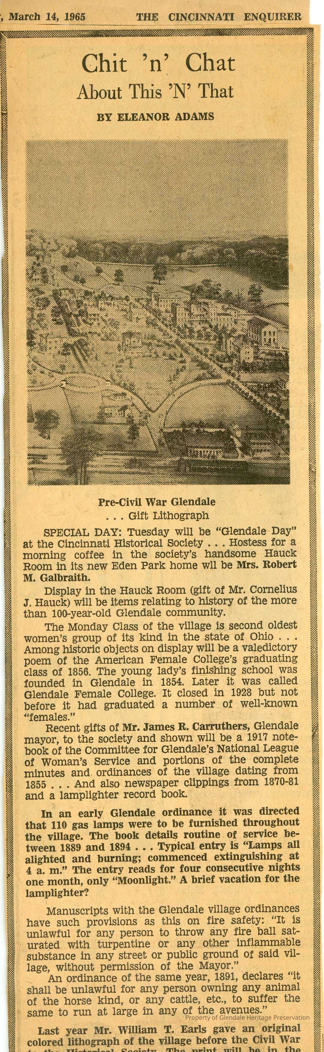 Article appeared in the Cincinnati Enquirer March 14, 1965.