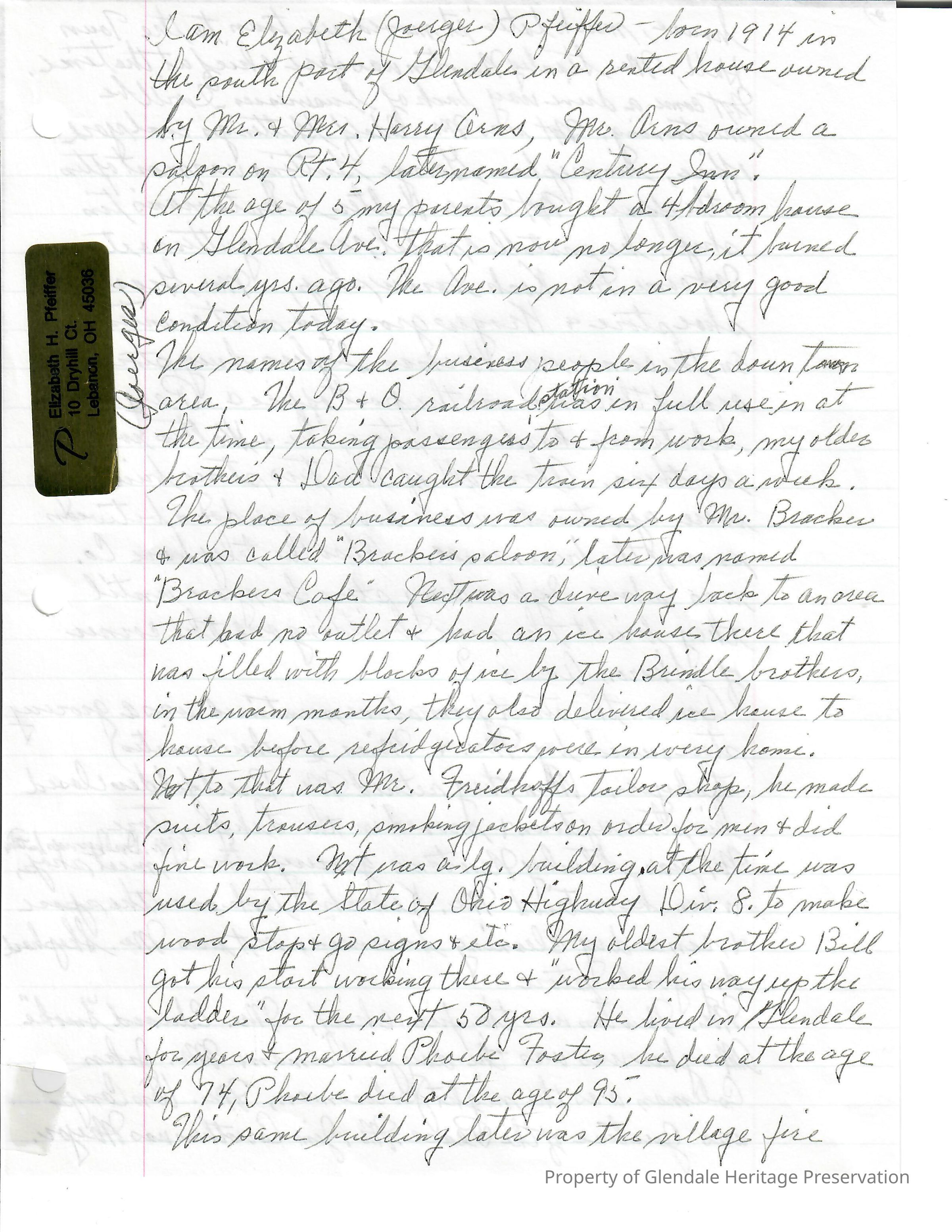 Eight Page Paper written by Elizabeth H. Pfeiffer nee Jouger c. 2005.