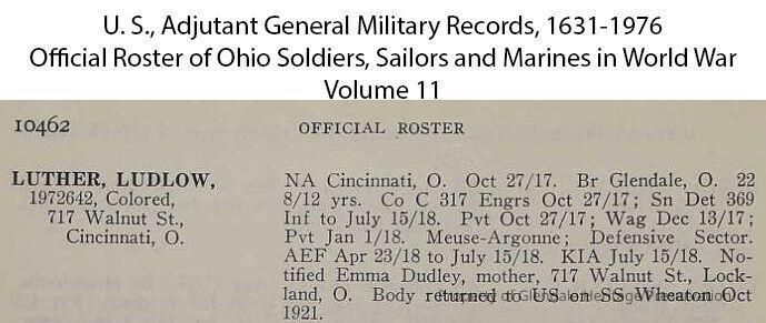 Private Ludlow Luther - World War IEntry/Object ID