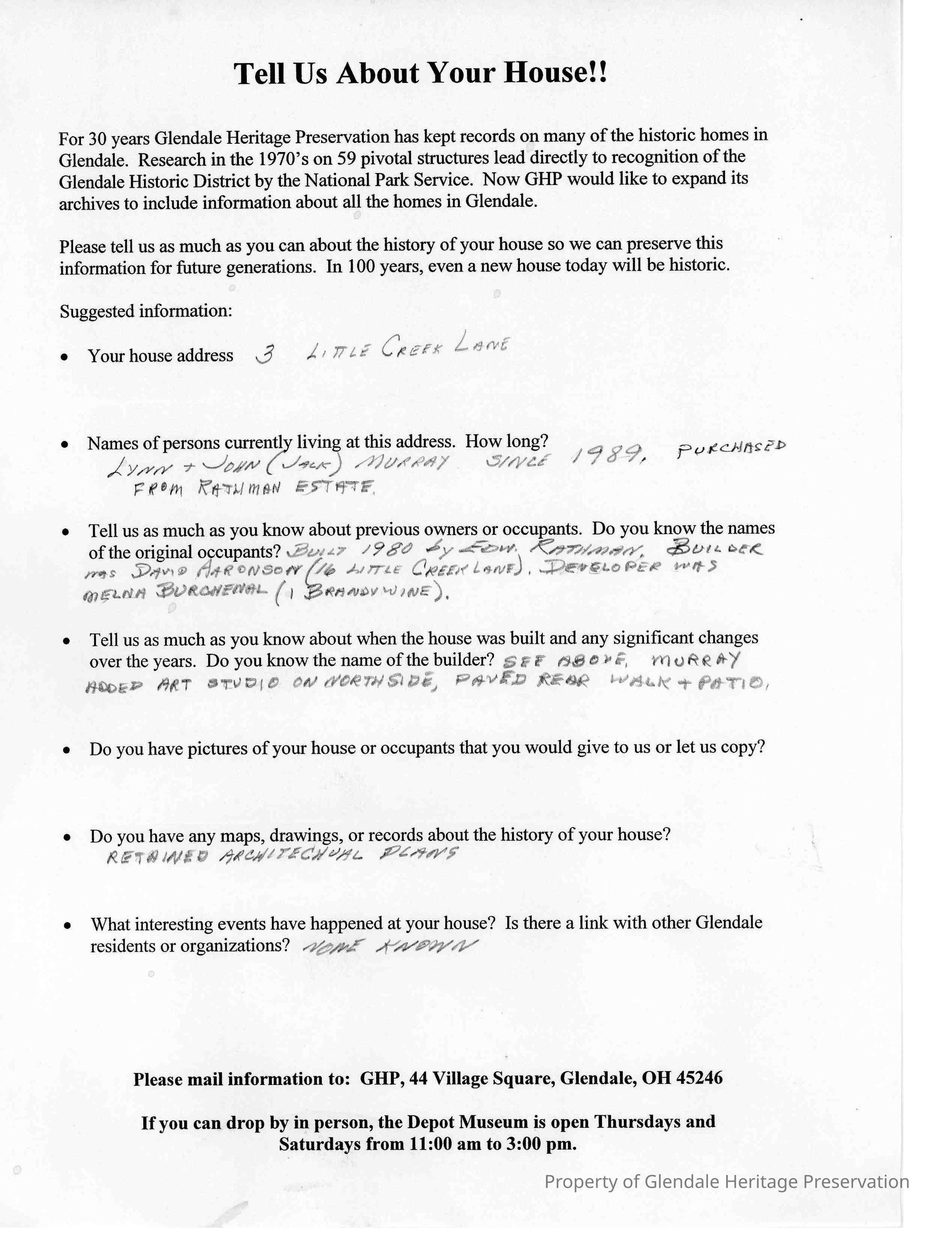 This house, located at 3 Little Creek Lane, was built in 1980 for Edward Rathman. The builder was David Aaronson.
