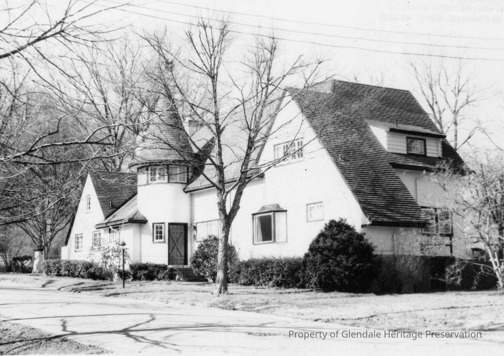 This house, a Contributing Structure, located at 140 Magnolia Drive is one of only two houses in the Village built in the Norman Revival style. It was originally part of the property of N. Goldsmith who lived on Fountain Avenue. Magnolia Avenue was known as Pine Street at that time.