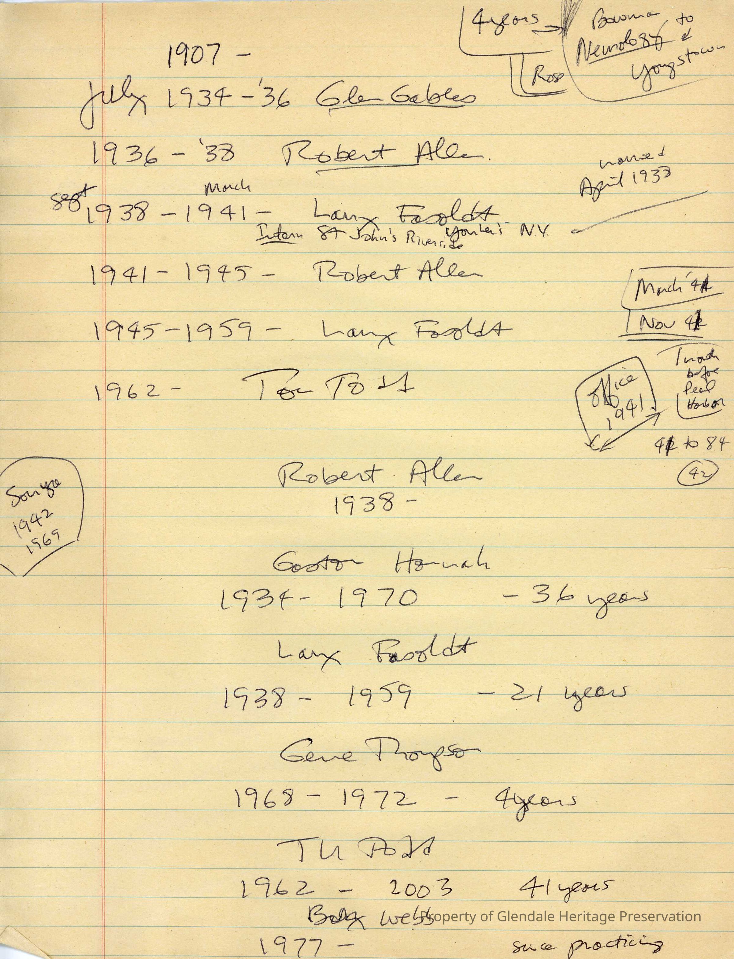 Timeline of Some of the Doctors in Glendale 1934- prepared by Dr. Thomas Todd