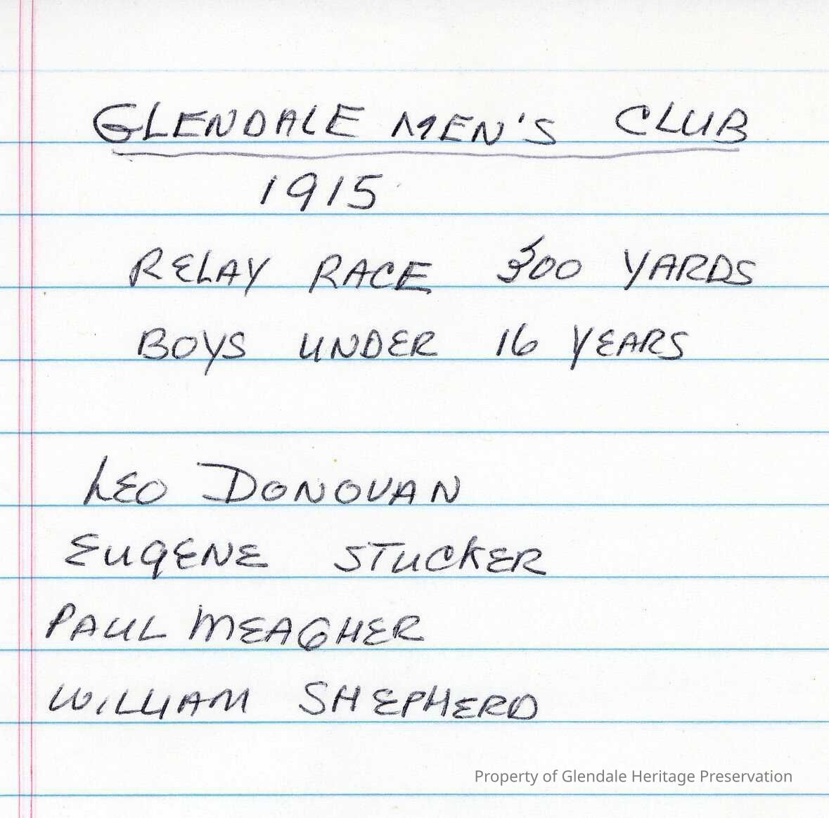Trophy Cup, Glendale Men's Club. Presented to the winners of the "Boys Under 16" 300 yard relay race, Decoration Day, 1915.